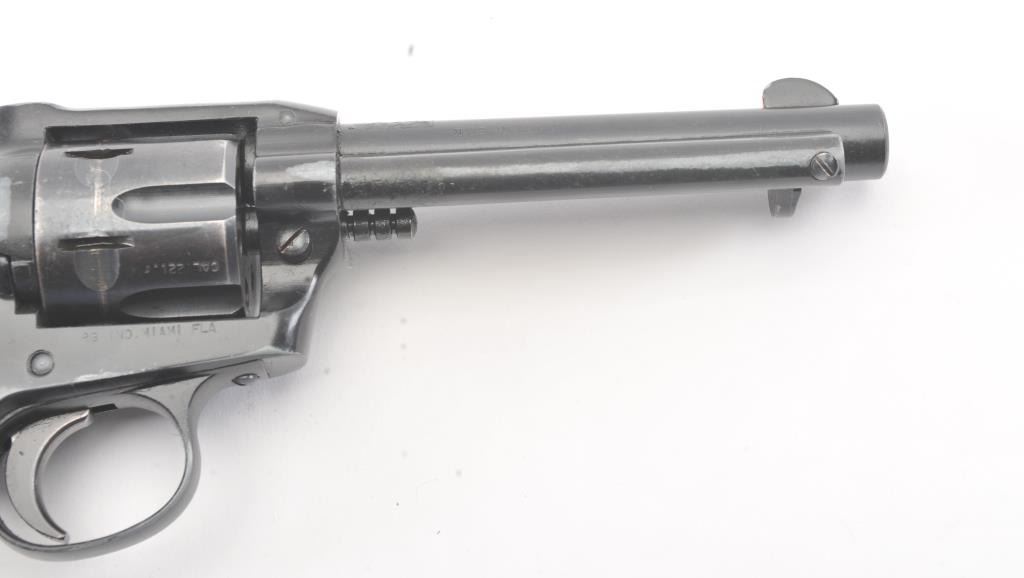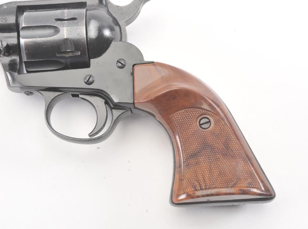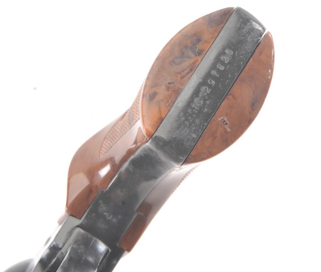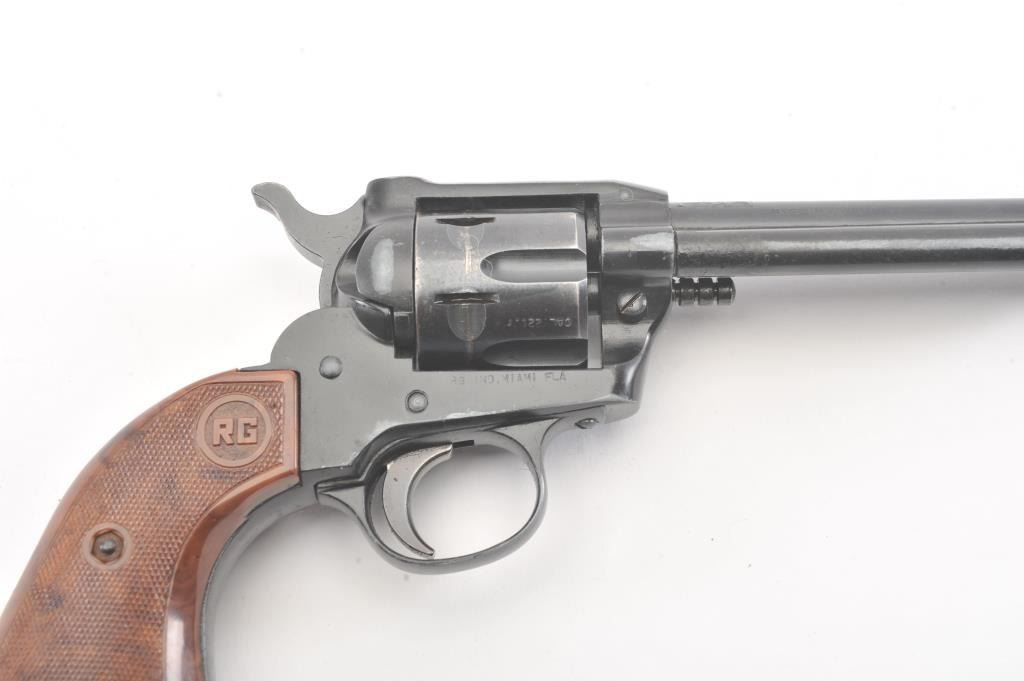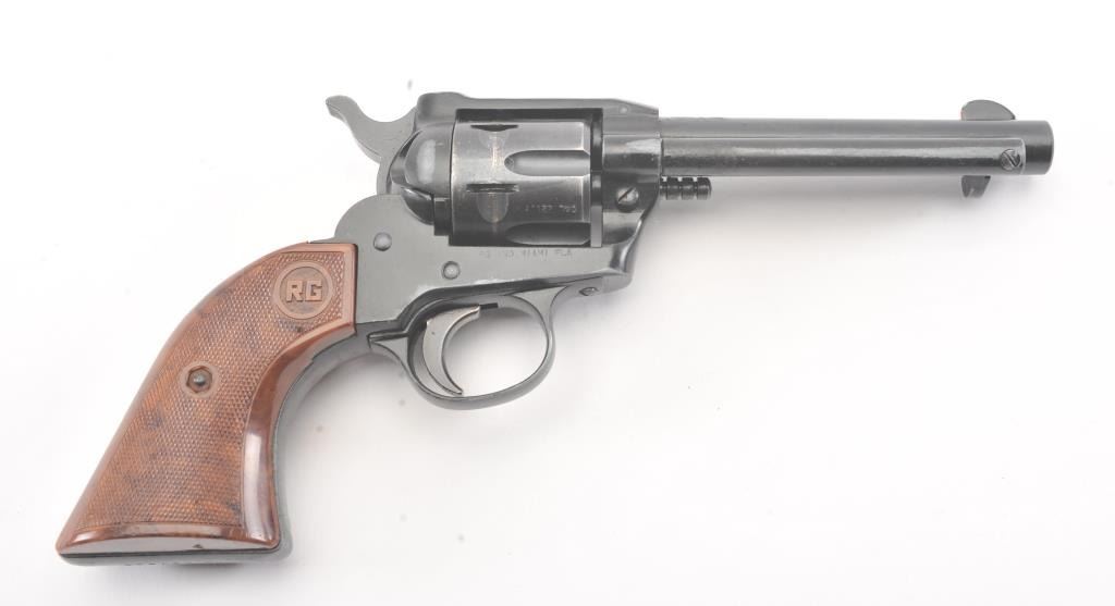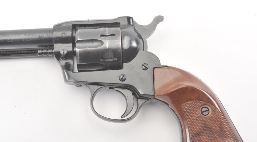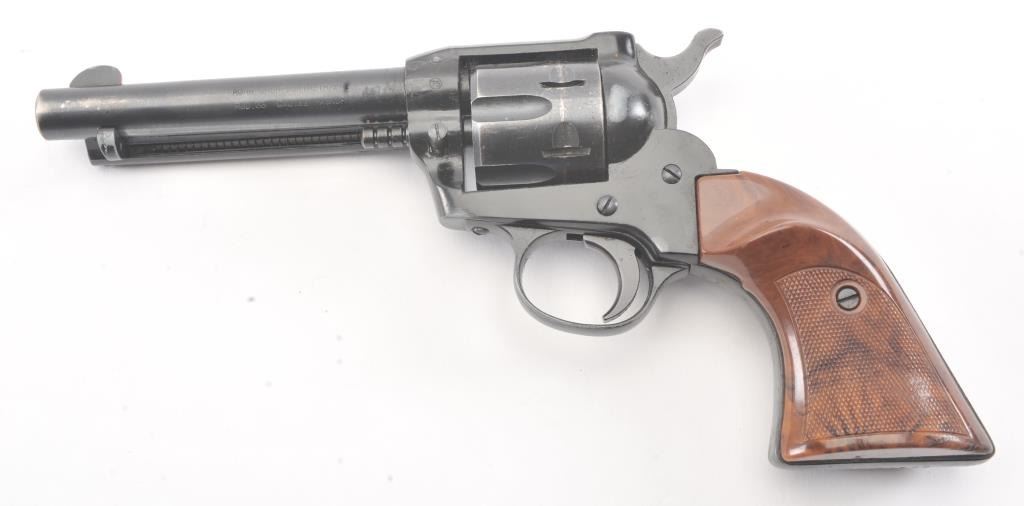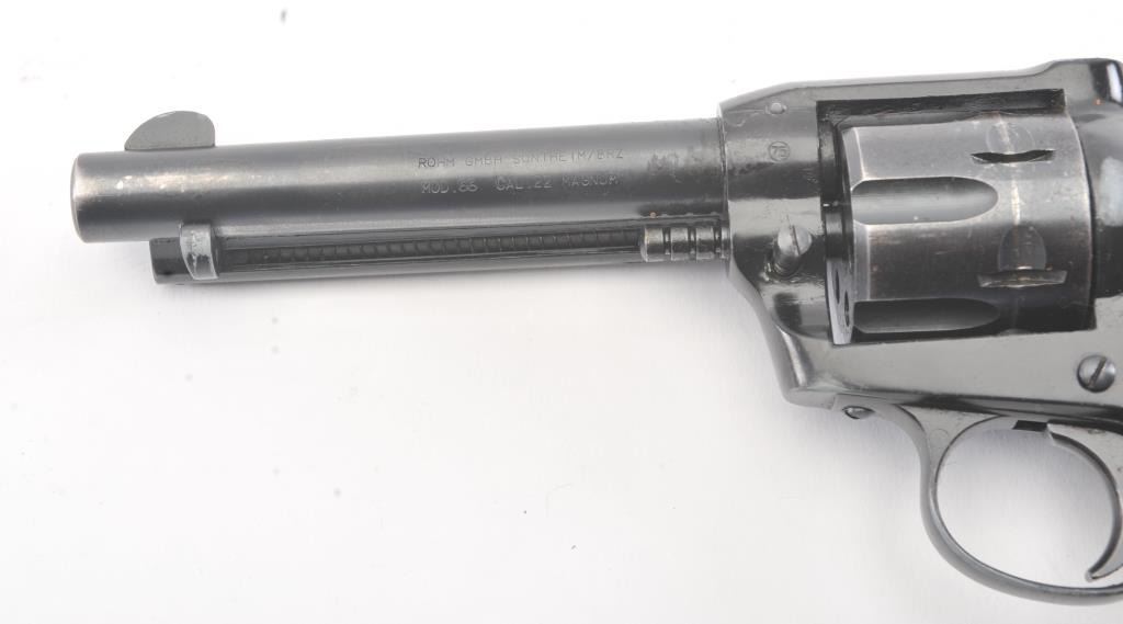 Rohm GBH Model 66 SA revolver, .22 Magnum caliber, Serial #IC297820. The pistol is in very good overall condition with a 4 5/8” barrel. The pistol retains the majority of the thinning blue finish with wear at themuzzle and an index line on the cylinder. The checkered plastic grips are in very good condition with small mars. The bore is fair, the action is crisp and the markings are legible. Est.: $75-$150. (Modern/PPT).