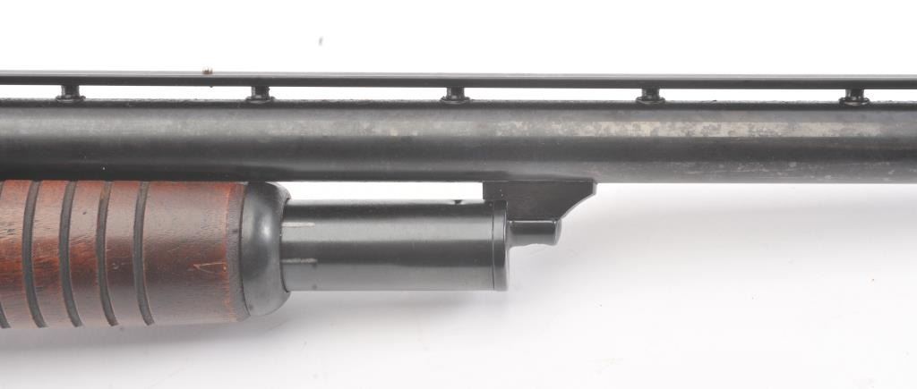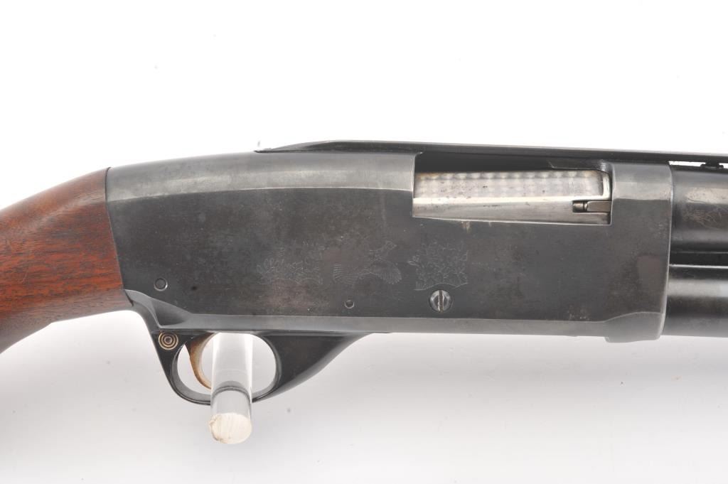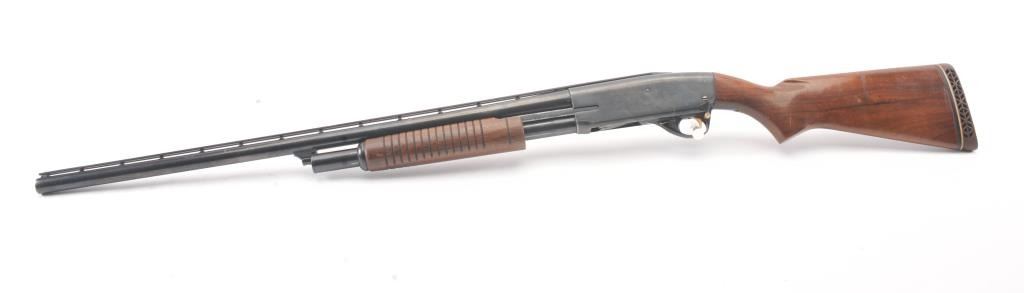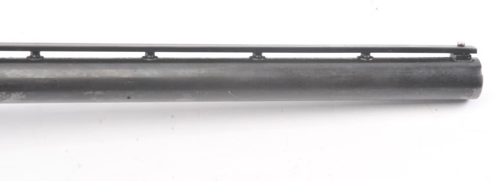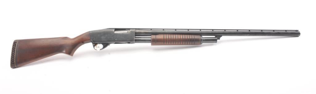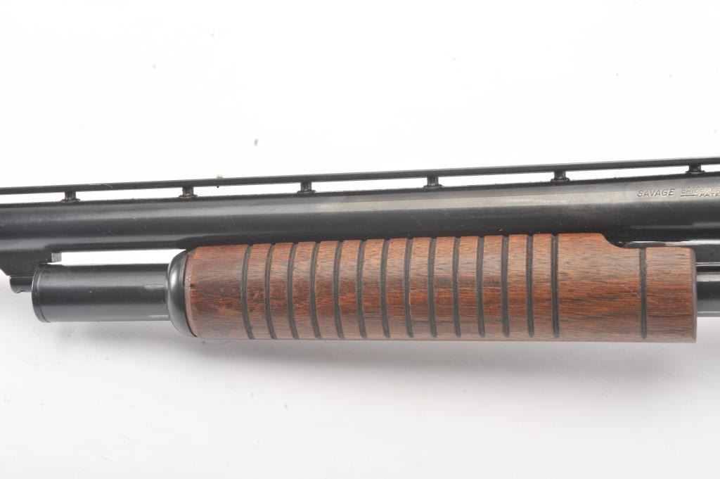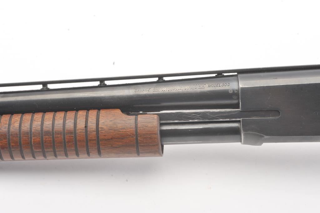 Savage Model 30D pump shotgun, 12 gauge, Serial #NSNV. The shotgun is in good overall condition with a 28” barrel with a full-length ventilated rib with a steel bead front sight. The shotgun retains asignificant amount of toning original blue finish with areas of light surface erosion and thinning of finish. The smooth wood stocks are in good condition with mars and compressions consistent with field use. Thebutt stock ends with a ventilated rubber recoil pad providing a 14 ¼” LOP. The bore is fair, the action functions and the markings are legible. Est.: $125-$250. (C+R).