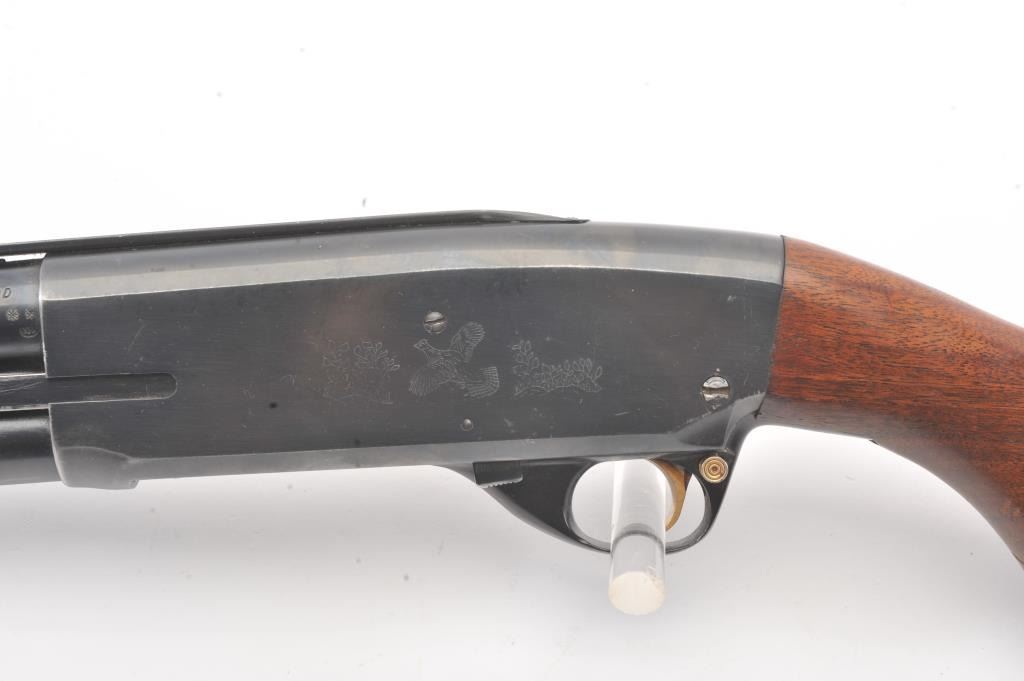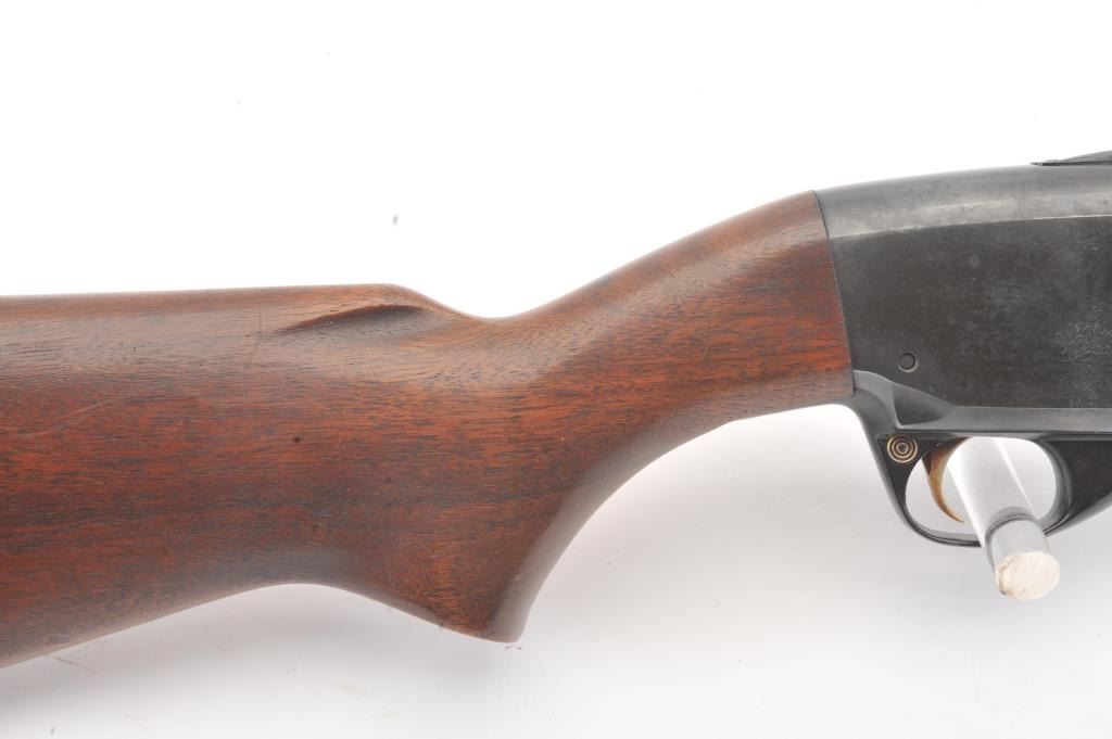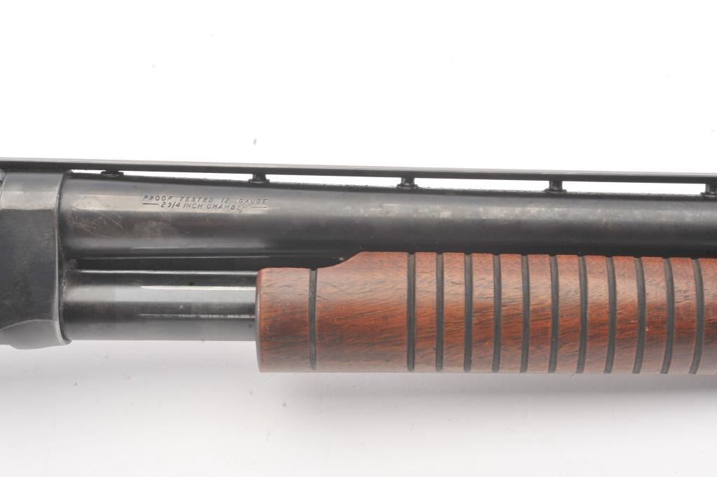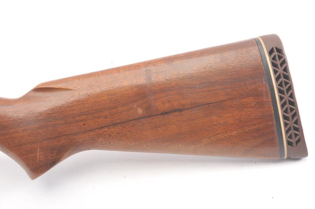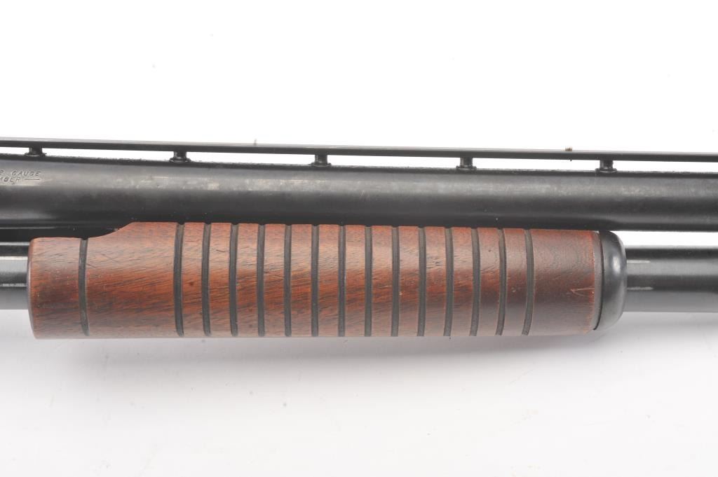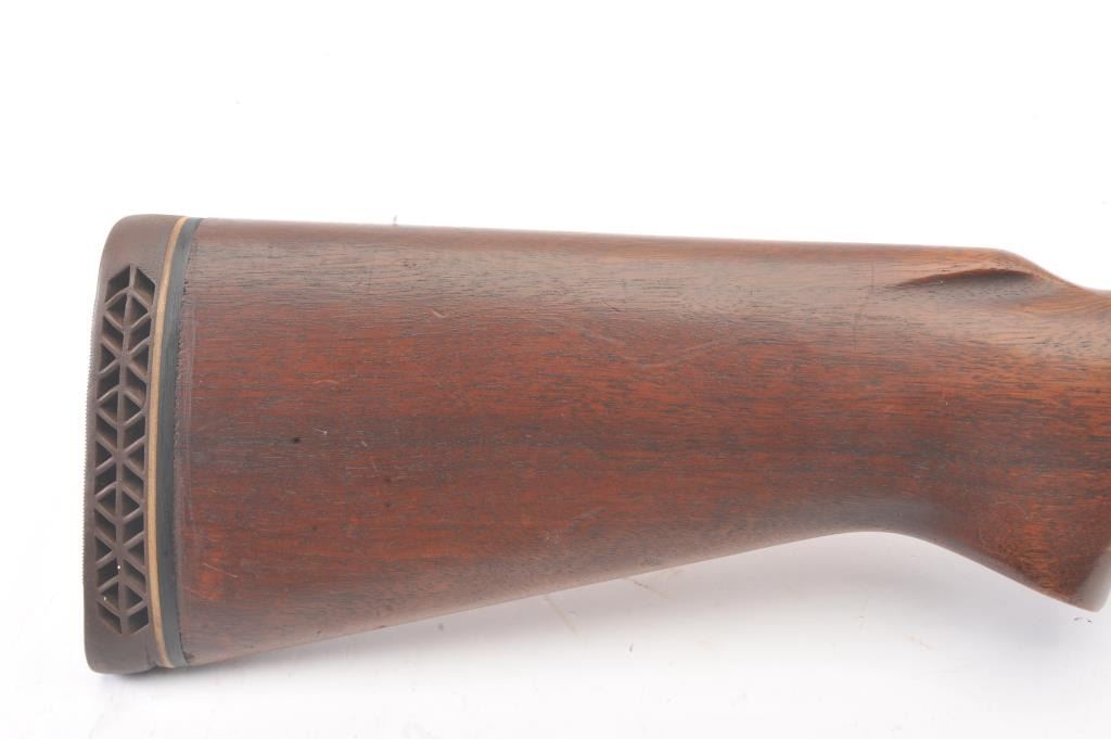 Savage Model 30D pump shotgun, 12 gauge, Serial #NSNV. The shotgun is in good overall condition with a 28” barrel with a full-length ventilated rib with a steel bead front sight. The shotgun retains asignificant amount of toning original blue finish with areas of light surface erosion and thinning of finish. The smooth wood stocks are in good condition with mars and compressions consistent with field use. Thebutt stock ends with a ventilated rubber recoil pad providing a 14 ¼” LOP. The bore is fair, the action functions and the markings are legible. Est.: $125-$250. (C+R).