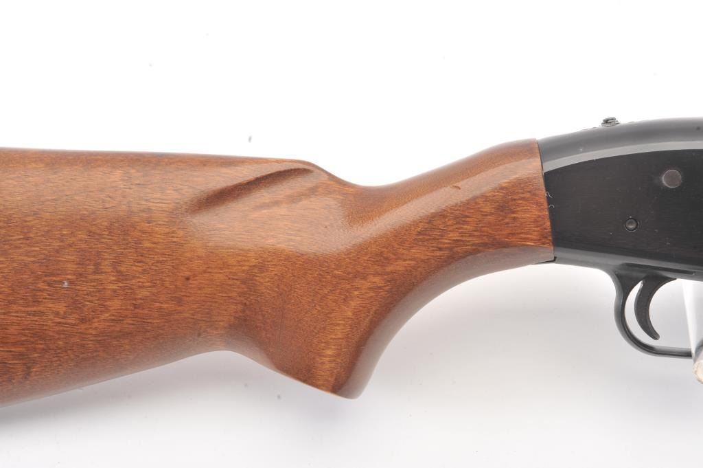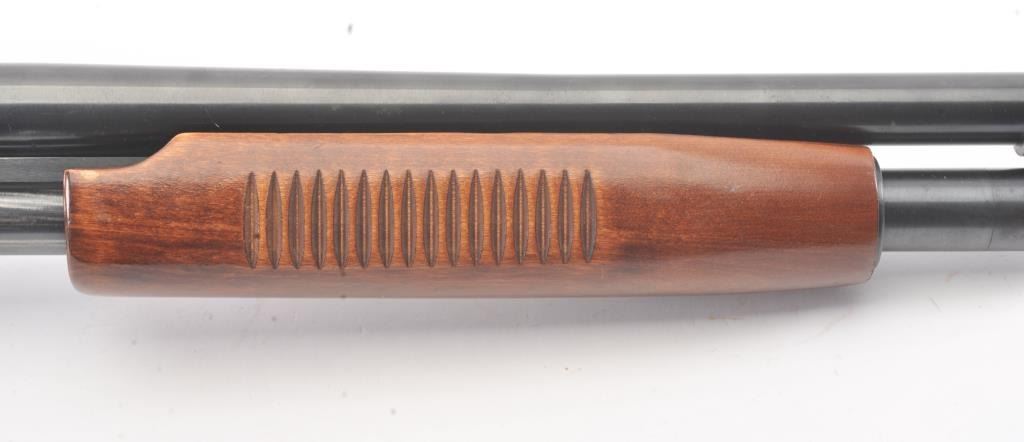 Western Field by Mossberg Model 550ABD pump shotgun, 12 gauge, Serial #H046082. The shotgun is in fine overall condition with a 28” barrel including the adjustable poly choke. The shotgun retains nearly all of the blue finish with scratches and storage marks. The smooth wood stocks are in very good condition with small mars consistent with field use. The butt stock ends with a checkered plastic butt plate providing a 14¼” LOP. The bore is good, the action is crisp and the markings are sharp. Est.: $125-$250. (Modern).