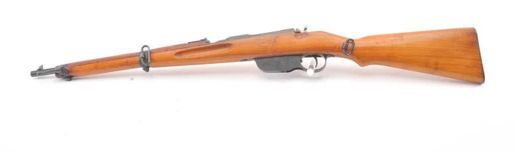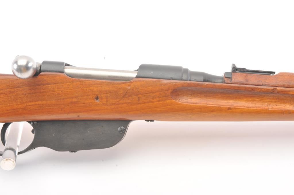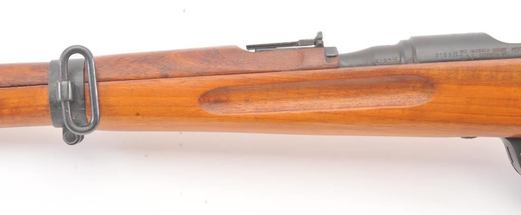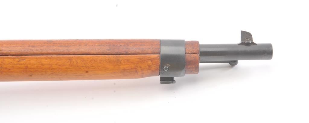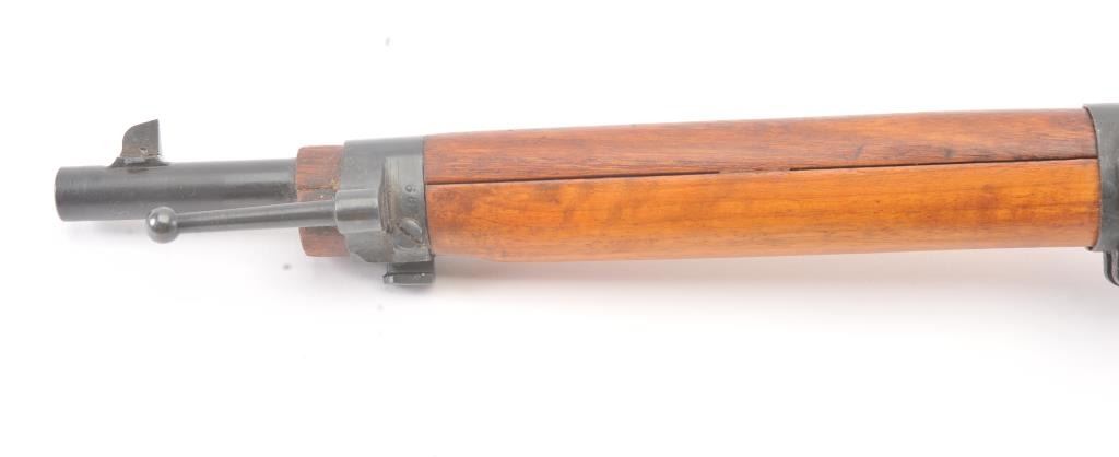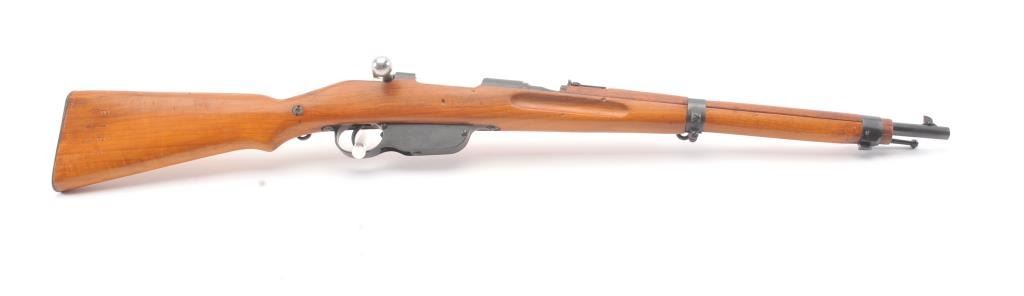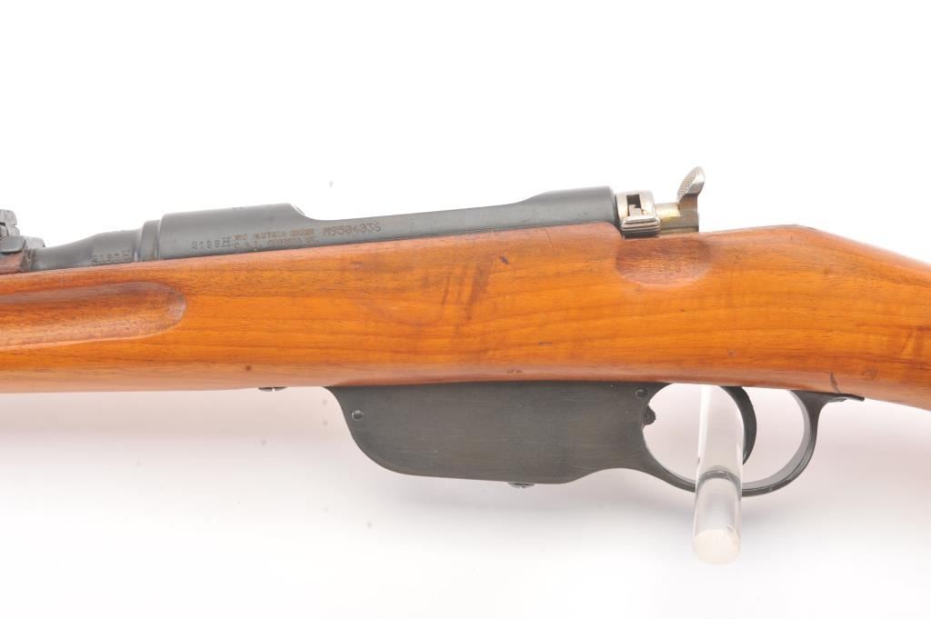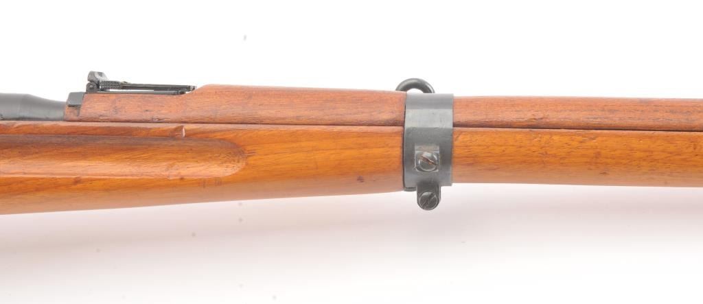 Steyr M95 bolt action carbine, 8 x 50R caliber, Serial #2199H. The carbine is in fine overall condition with a 20” barrel. The metal surfaces retain nearly all of the military finish with a blade front andmilitary tangent style rear sights. The front ring is marked, Steyr and the side wall is import marked. The smooth wood stock is in very good condition showing little use. All visible serial numbers are matchingincluding the stock. The bore is good, the markings are sharp and the action is crisp. Est.: $150-$300. (C+R).