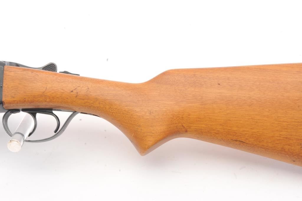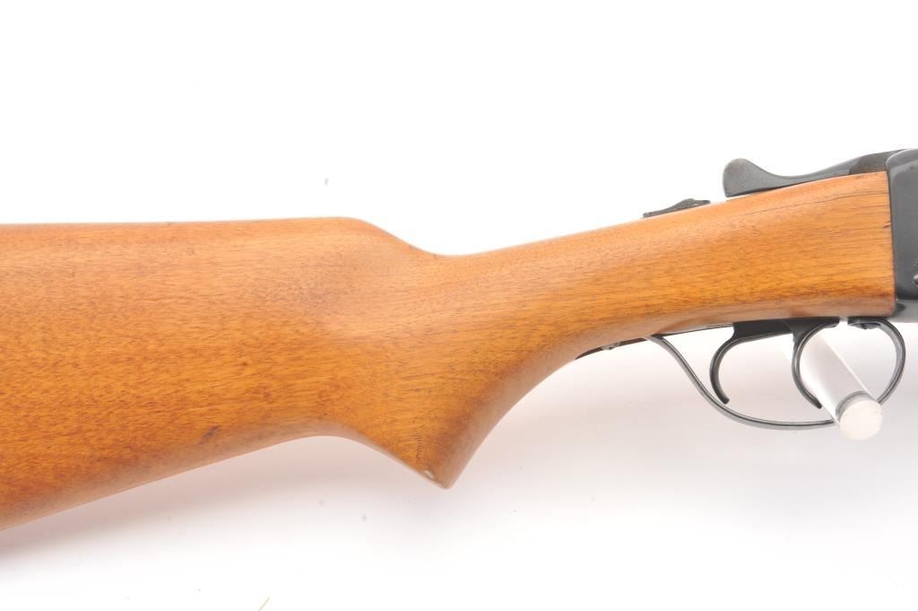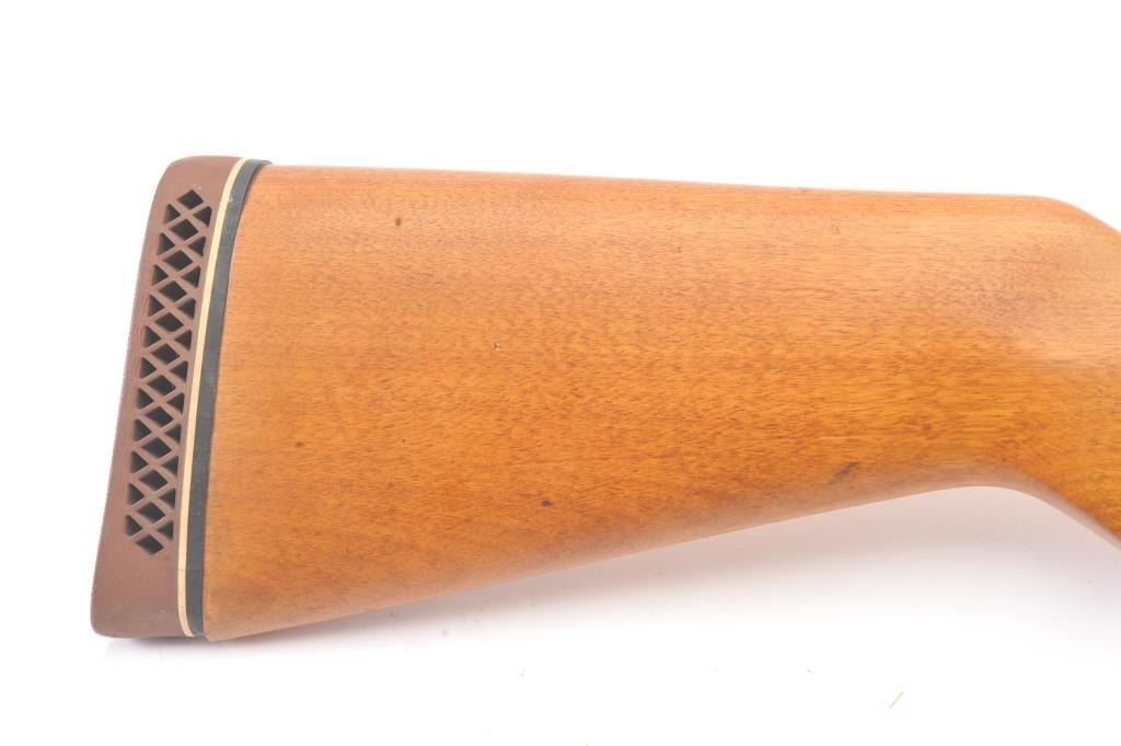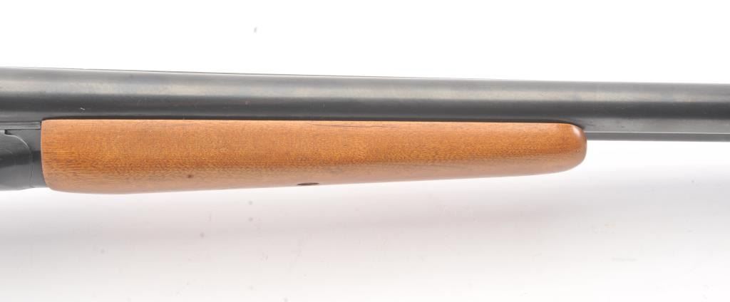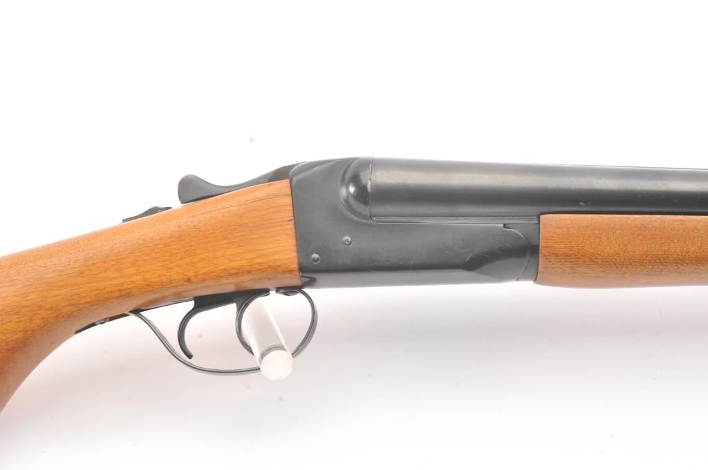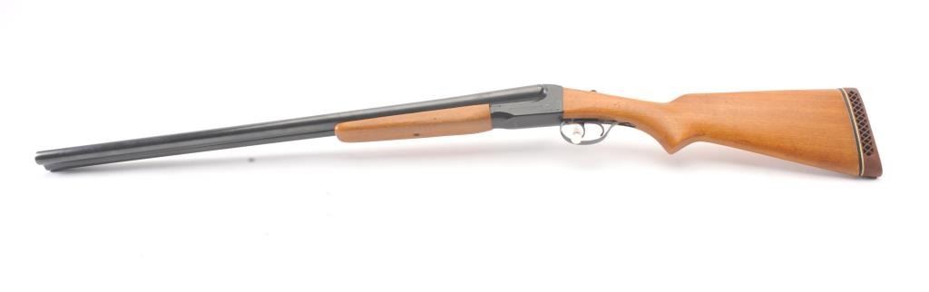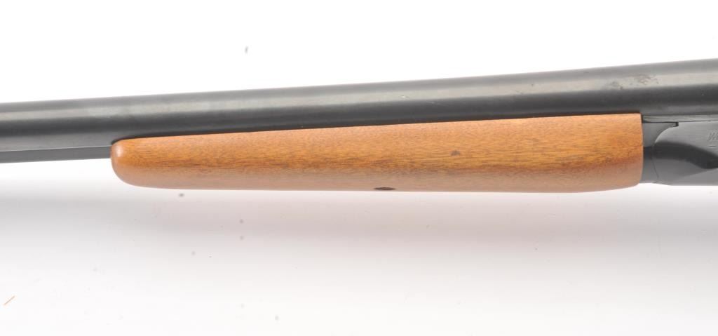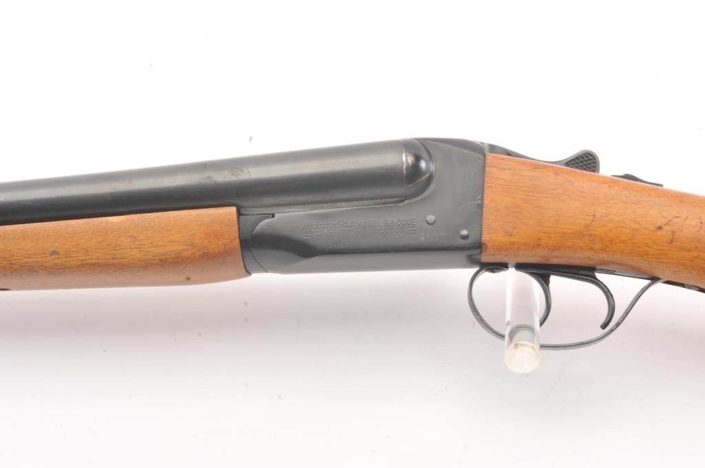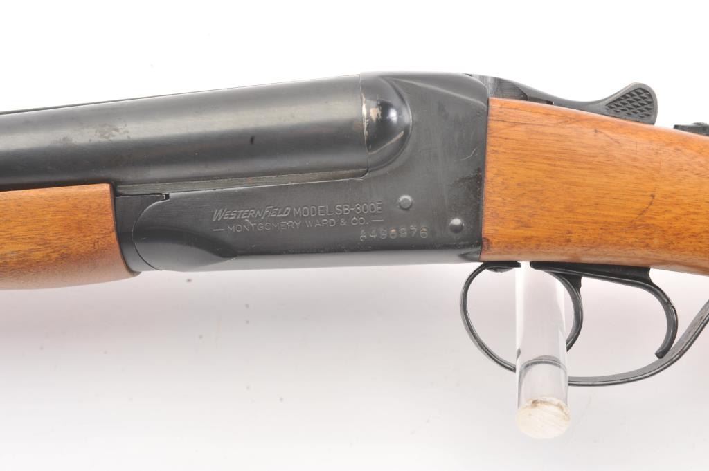 Western Field Model SB-300E Side by Side shotgun, 12 gauge, Serial #A498976. The shotgun is in very good overall condition with 30” barrels with a full-length rib. The shotgun retains the majority of the bluefinish with wear at the muzzle, small mars and areas of light surface rust. The smooth wood stocks are in very good condition with dents and scratches consistent with field use. The butt stock ends with a ventilatedrubber recoil pad providing a 15” LOP to the front trigger. The bores are fair, the action functions and the markings are legible. Est.: $125-$250. (Modern).