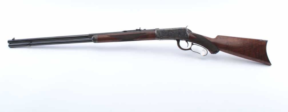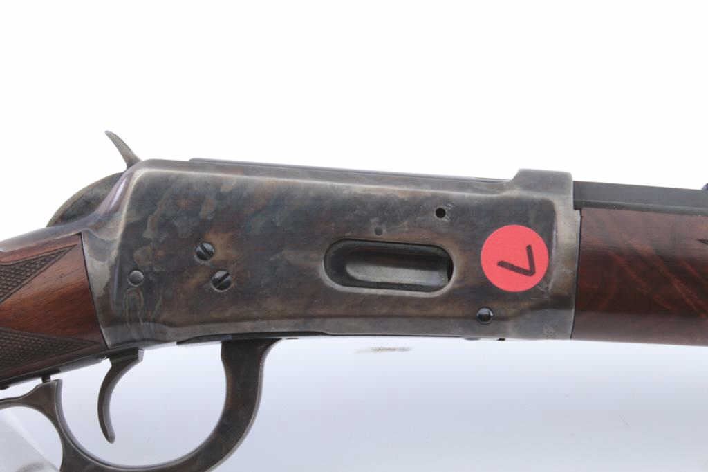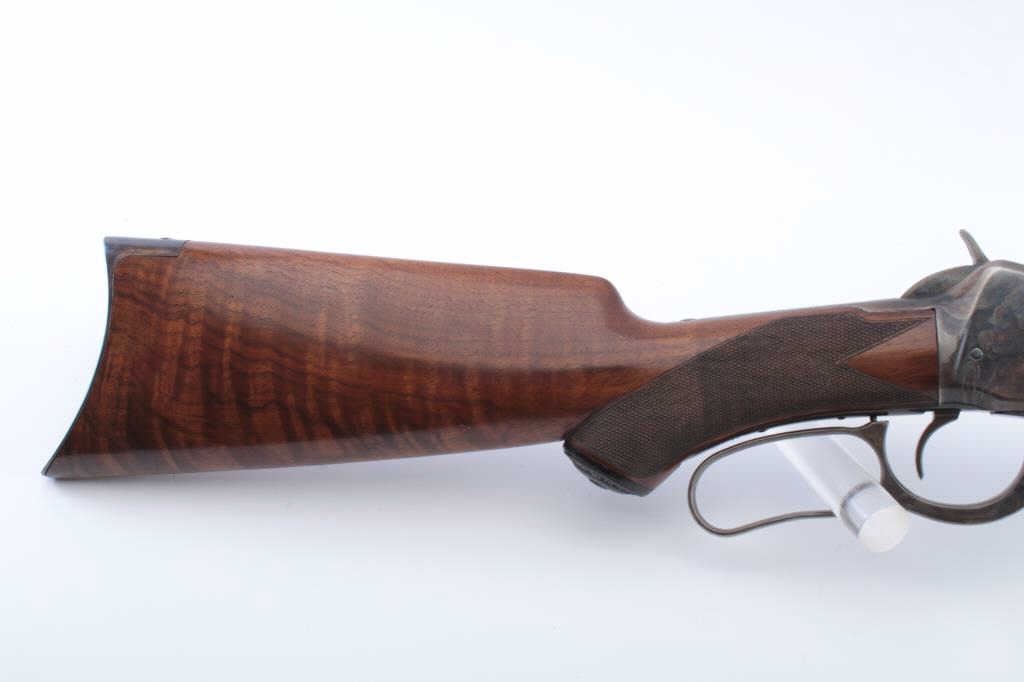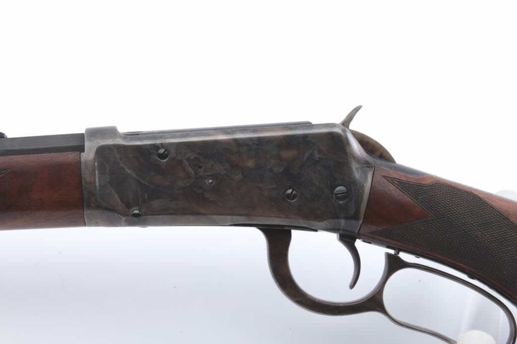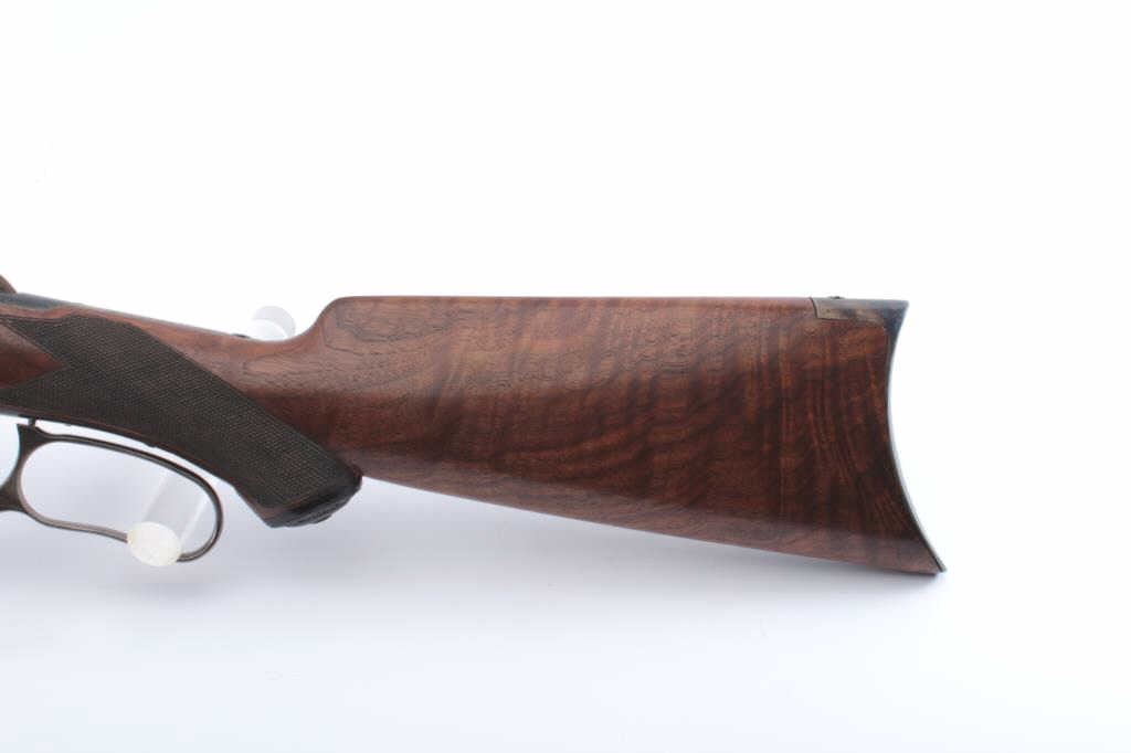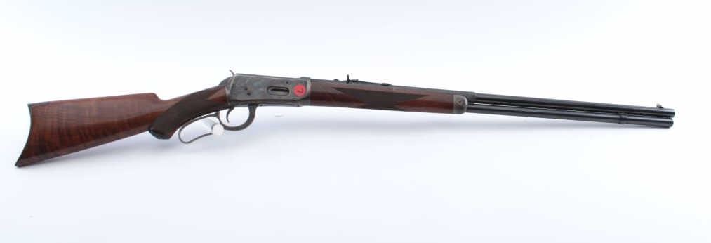 Winchester Model 1894 Rifle in .30-30 caliber with a 26” half round/half octagon barrel, full mag, checkered deluxe stocks with Winchester pistol grip cap, blue and case hardened finish, S/N 382489. The action isgood and the bore is good with minor corrosion. Approximately 95%-98% of an excellent refinish and restocking remain which is expertly accomplished by a master gunsmith but not factory. A really attractive 94 with case coloring. Estimate $4,000 in work alone. (C&R) Est.: $2000-$4000