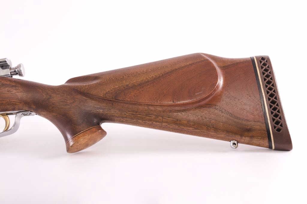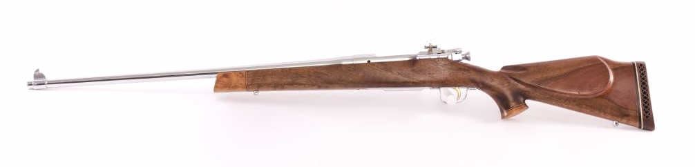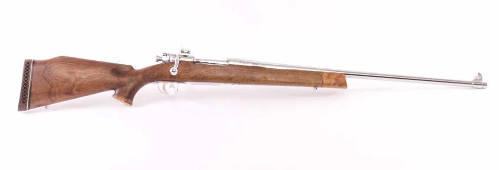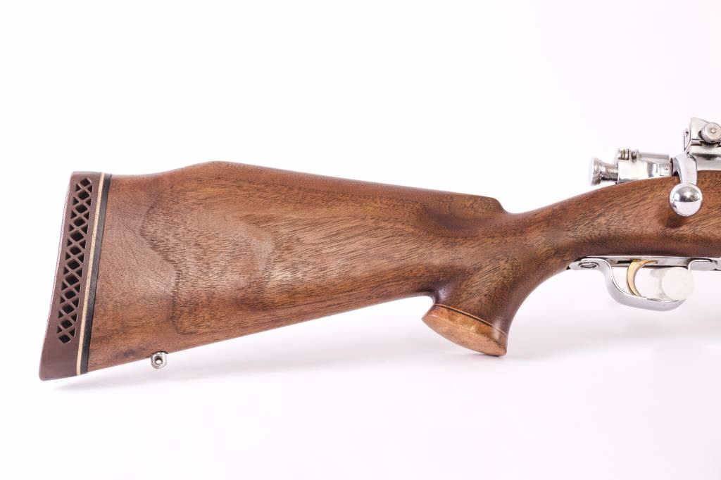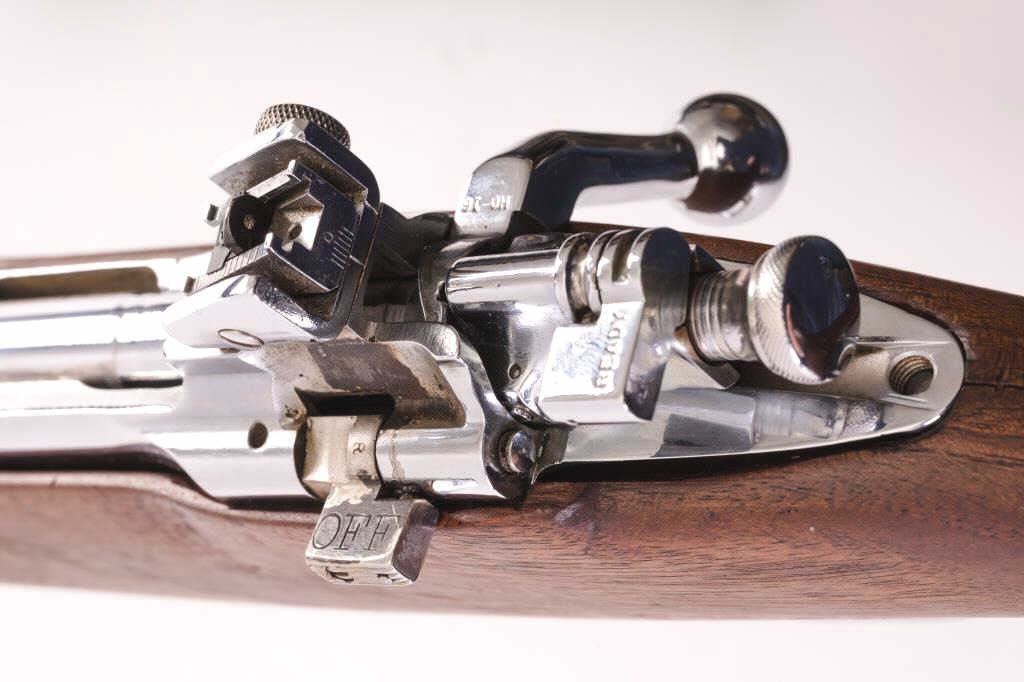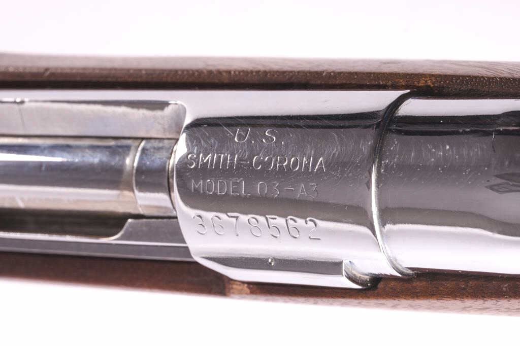 Smith Corona 1903-A3 sporterized and nickel plated, S/N 367856Z. Good custom stock. Vintage 1950-60s. Good bore. “S.C.” marked barrel. Near fine as reconditioned. (C&R) Est.: $500-1000