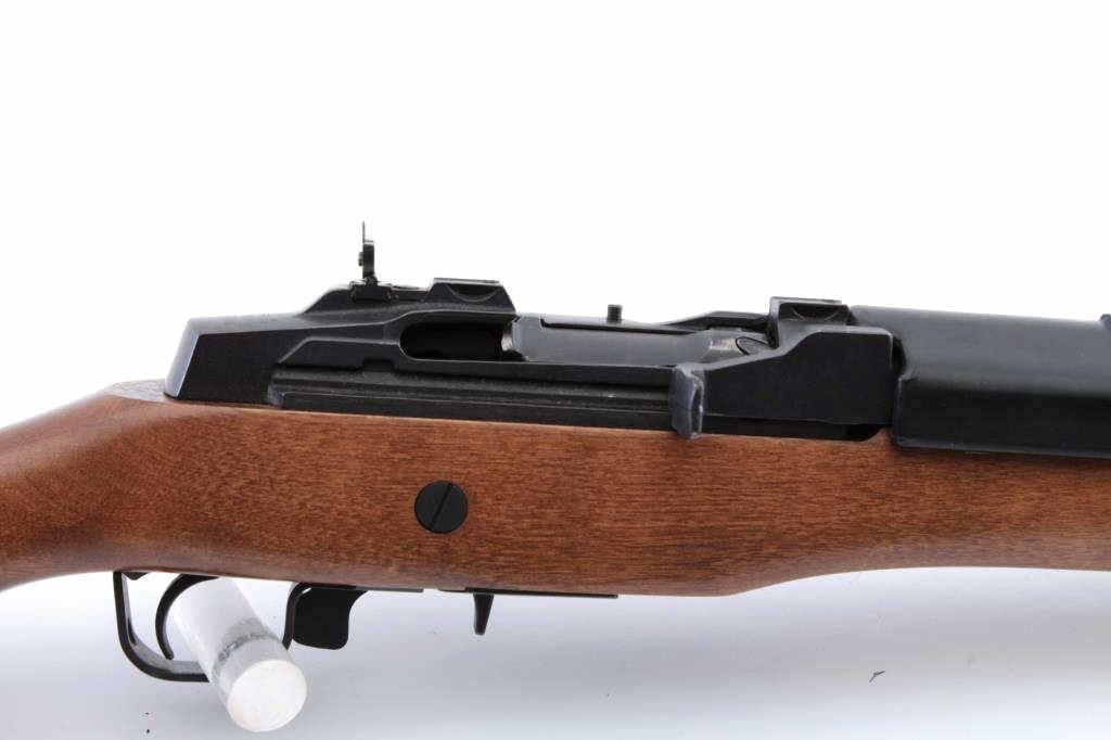 Ruger Ranch rifle Model semi-automatic, .223 caliber, 19” barrel, blued finish, wood stock, S/N 196-65474; overall fine condition with majority of blued finish on metal surfaces, fine bore, crisp action, sharpmarkings and fine wood stock. (Modern). Est.: $350-$700.