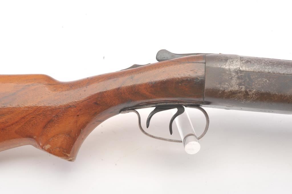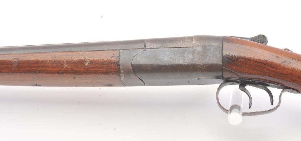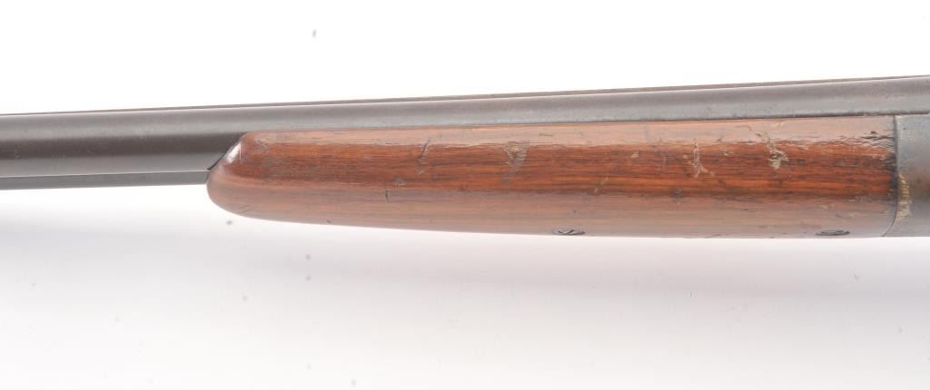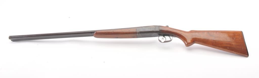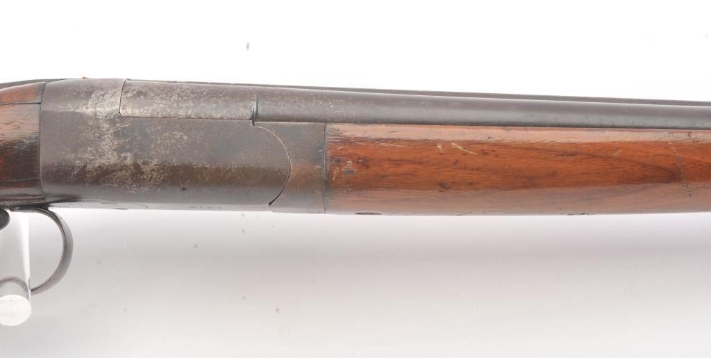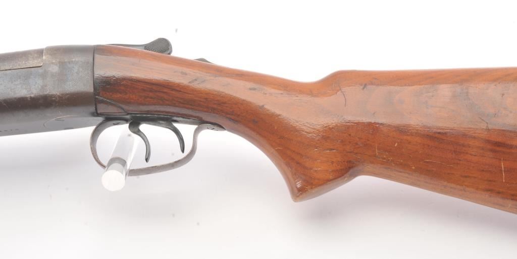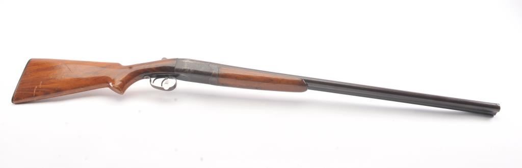 Pre-War Winchester Model 24 SxS Shotgun in 12 GA with a 30” barrel choked full and cylinder, chambered for 2 ¾” shells. Original length with Winchester hard rubber pad, S/N 1478. Hairline crack on the right top of theframe in the stock and above the trigger with coating of clear varnish or shellac. Tight action and good bores. Coating of minor storage rust and erosion needing cleaning. Out of the attic from an estate. The poorman’s 21. (C&R) Est.: $175-$350