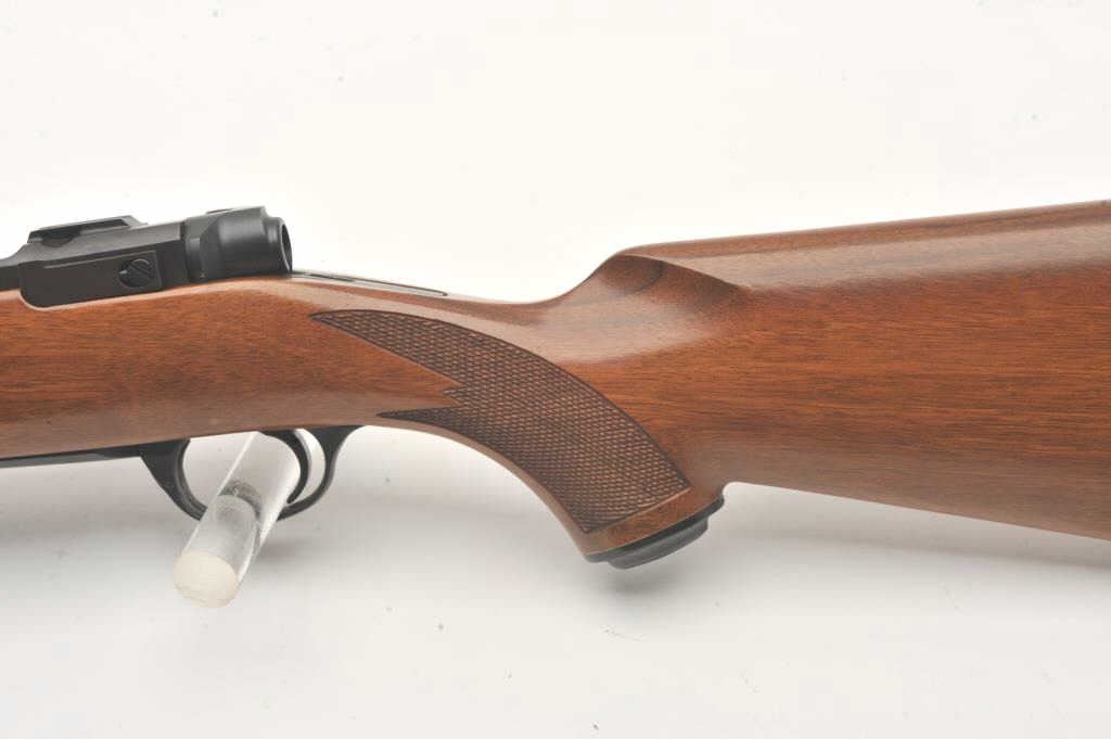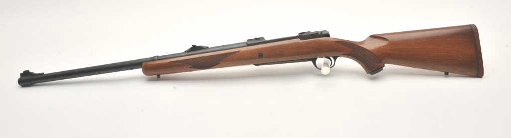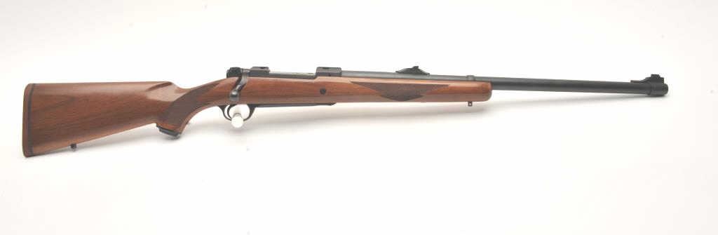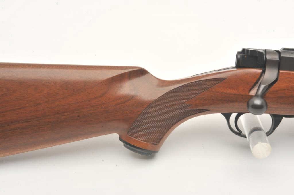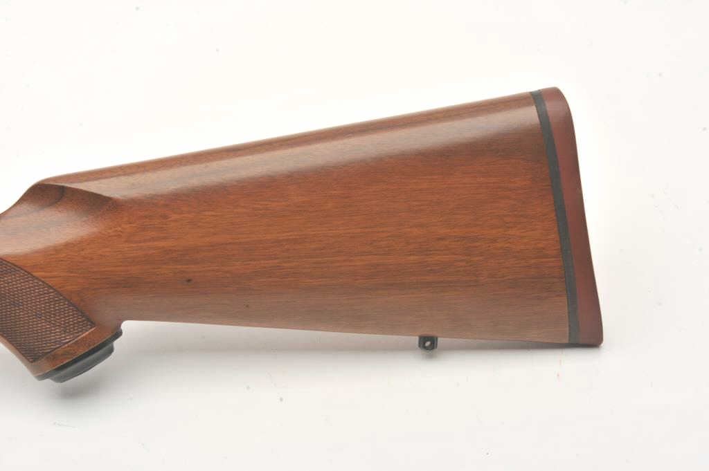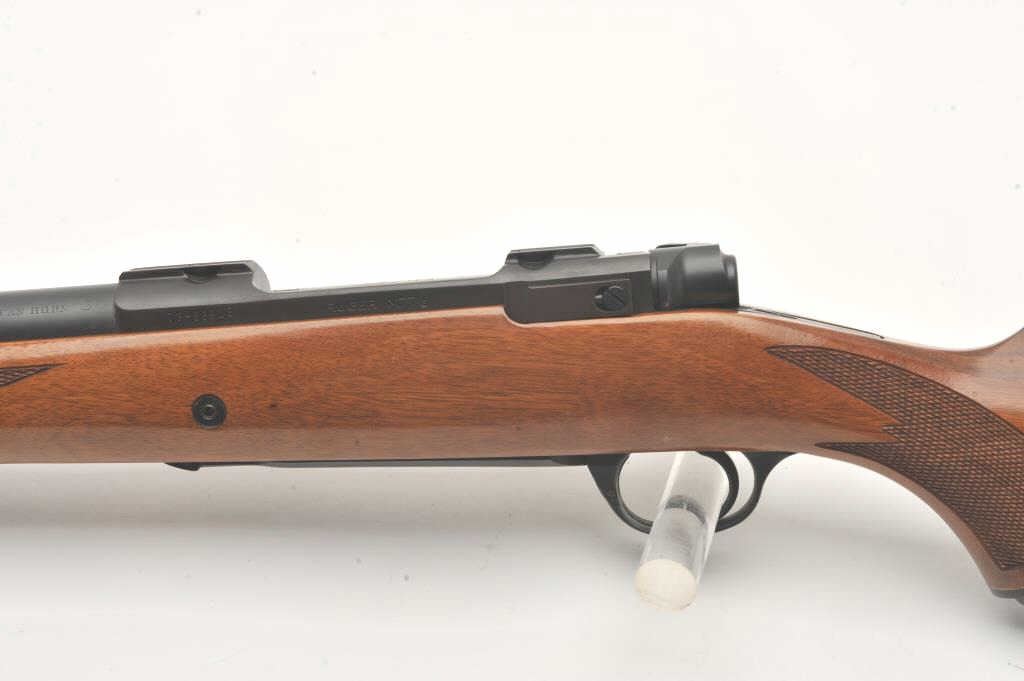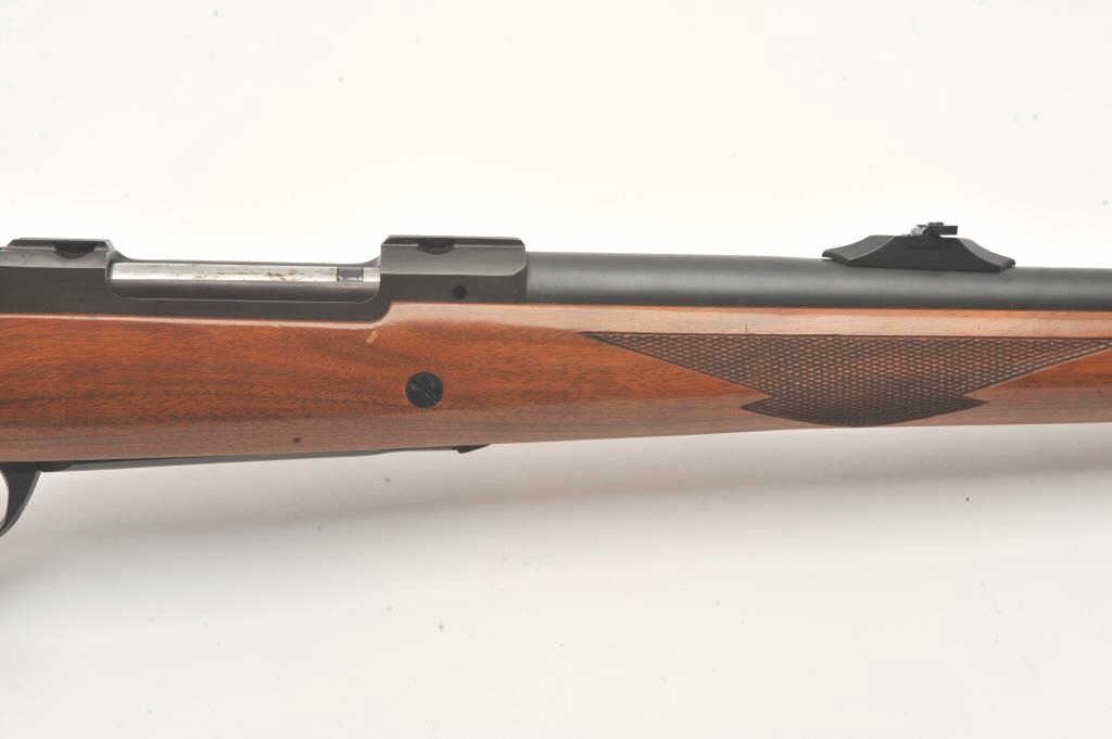 Custom Ruger M77 bolt action rifle, .460 Van Horn caliber, Serial #73-53923. The rifle is in fine overall condition with a 24” barrel with a barrel banded front and folding rear sights. The metal surfaces retain nearly all of their matte blue finish with light surface rust around the front sight. The checkered wood stock is in very good condition and ends with a solid red rubber recoil pad providing a 13 ¾” LOP. The boreis good, the action crisp and markings are sharp on this custom big bore. The .460 Van Horn cartridge is based on a shortened .460 Weatherby case. The lot includes custom RCBS reloading dies. Est.: $2000-4000(Modern).