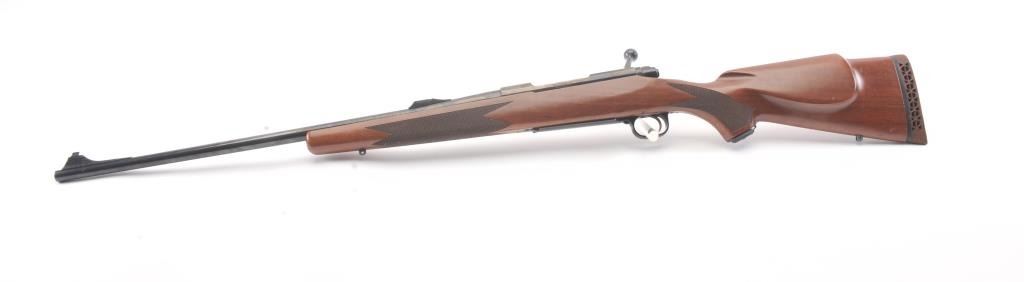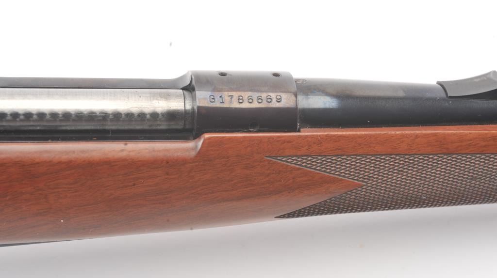 Winchester Model 70XTR Sporter Magnum in .300 Win. Mag caliber with a 24" barrel, S/N G1786669. Near fine used condition showing minor firing and use. Some small marks in the stock. Rear sight removed from base for usewith scope (Factory tap holes are empty). Pachmayr pad added and measures 14 1/8" to the end of the stock. Excellent mechanics and bright interior and bore. (Modern) Est.: $500-$1000