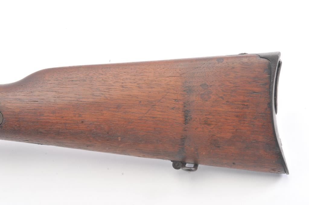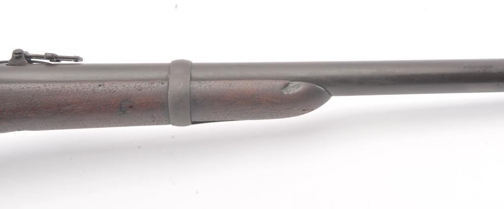 Spencer carbine .56 caliber with the Stabler cut-off and a 22” barrel, Serial #41747. The carbine shows brown patina with scattered light rust and erosion along with minor pitting with a good barrel address. The wood is good showing minor wear and normal aging, complete small parts, good action and good bore. Est.: $1,200-2400. (Antique).