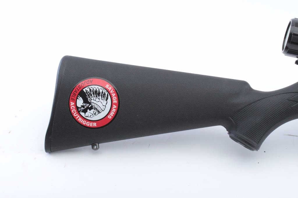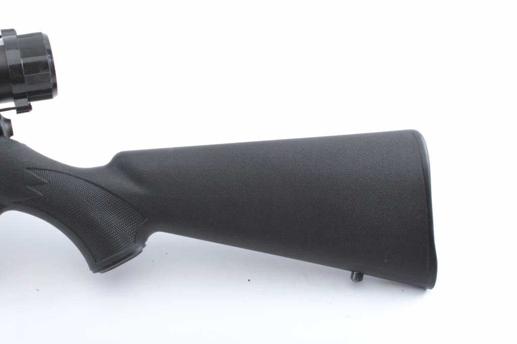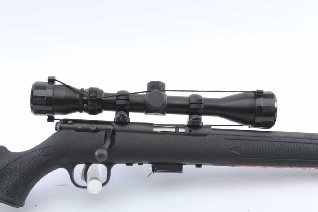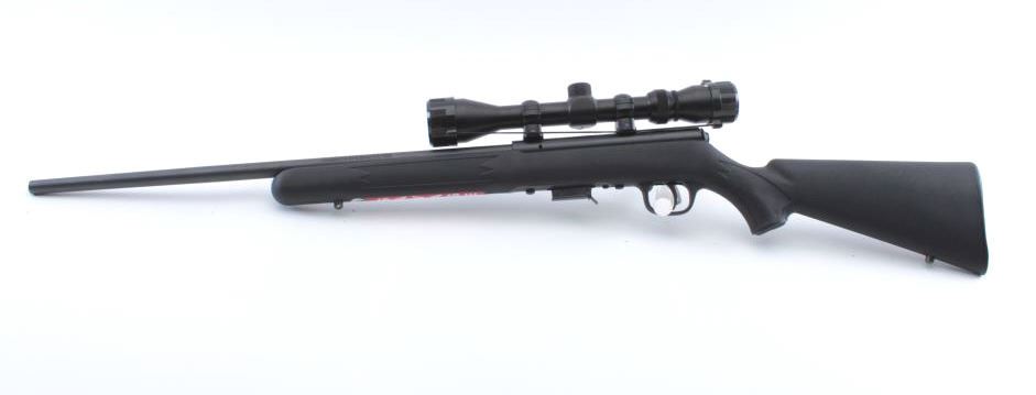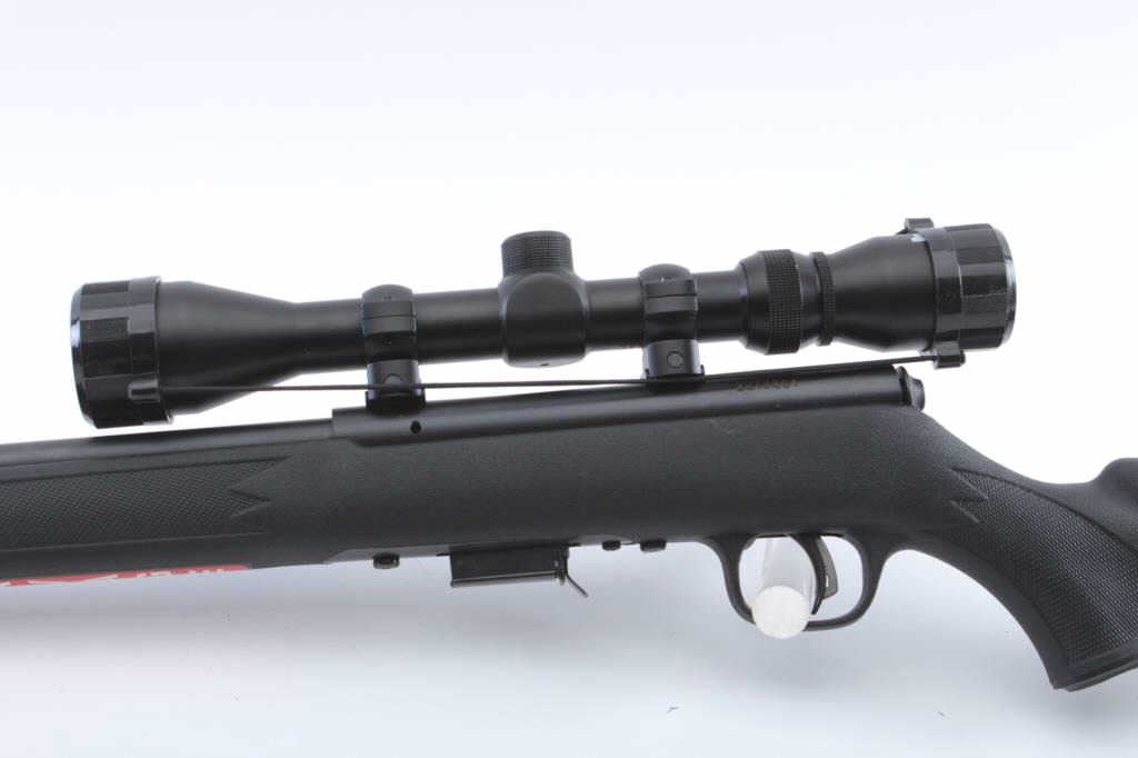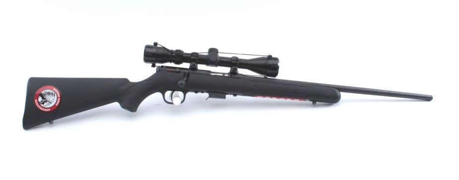 Savage Model 93R17 bolt action rifle, .17 HMR caliber, 21” barrel, mat black finish, checkered composite stock, S/N 2513501; mounted with a Bushnell scope with fine optics; rifle is in overall like newcondition. (Modern/PPT). Est.: $250-$500.