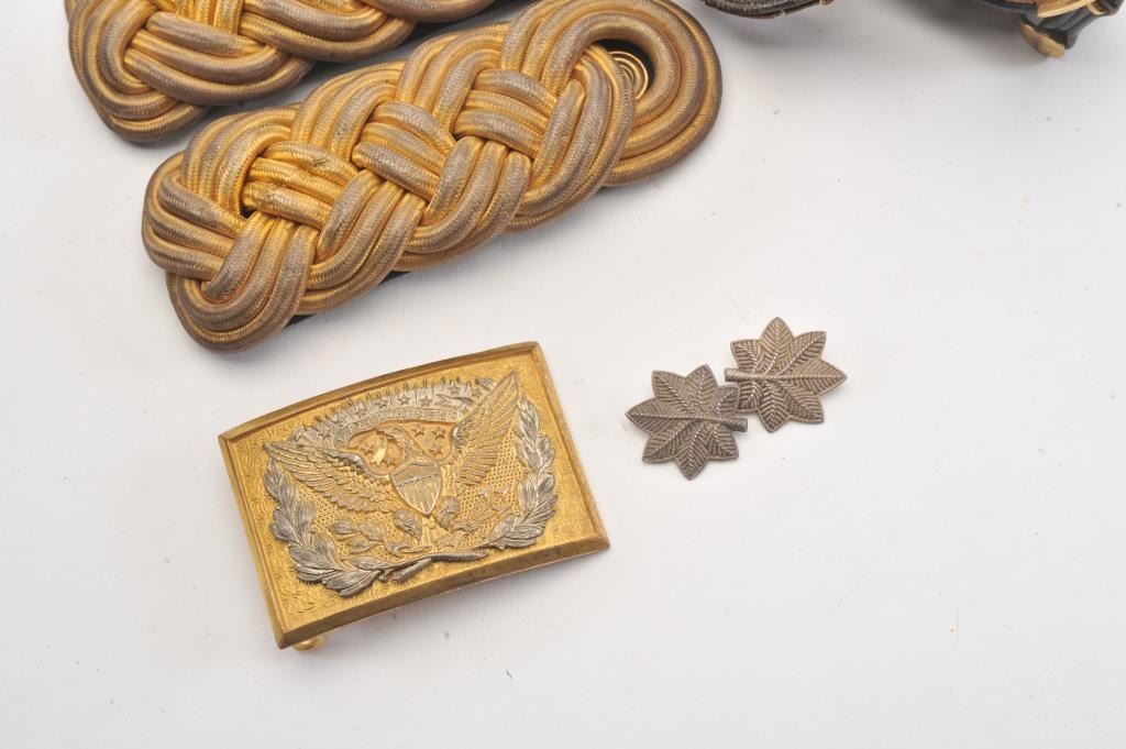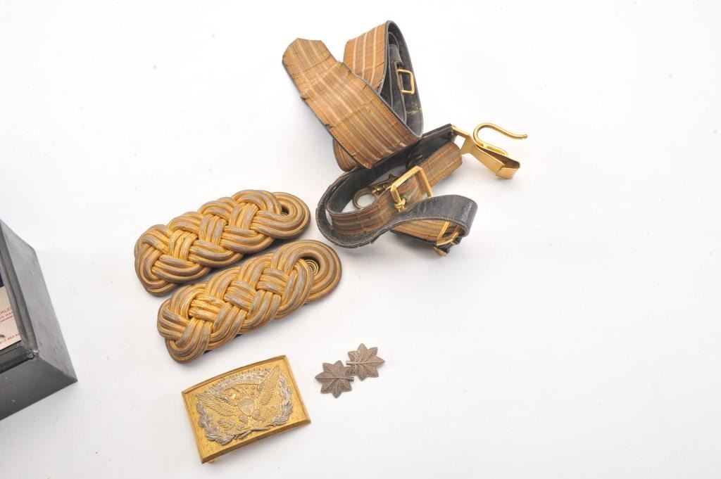 U.S. Officer's Epilets, Belt, Buckle with original tinned box M.C. Lilly Co - Columbus Ohio on lip. Fine to Excellent condition. Est:$150-300