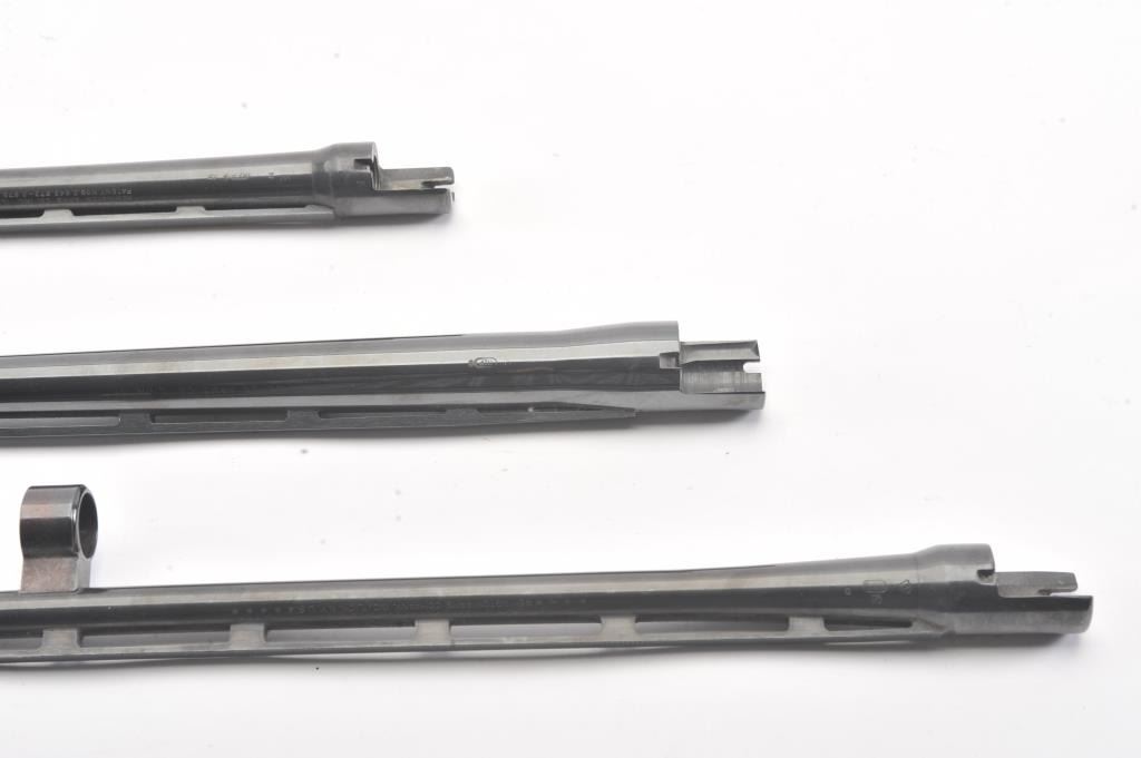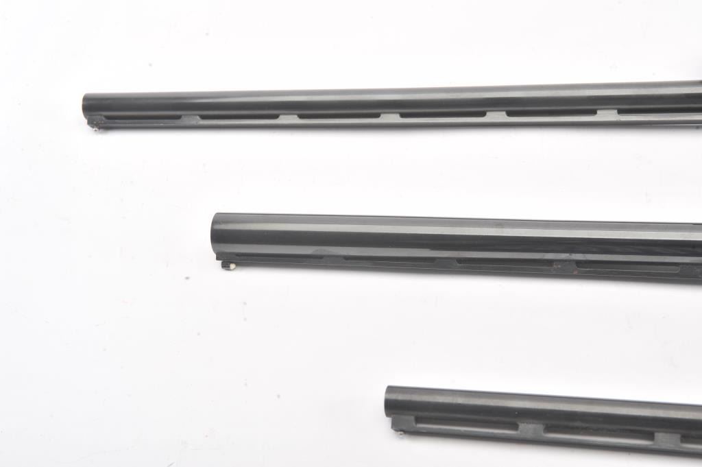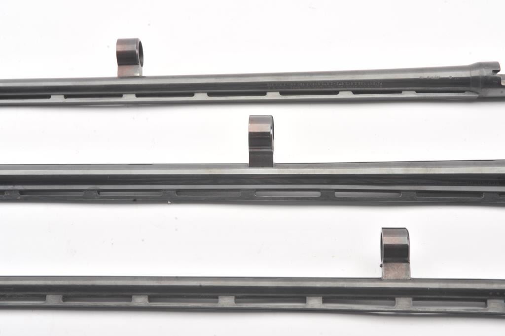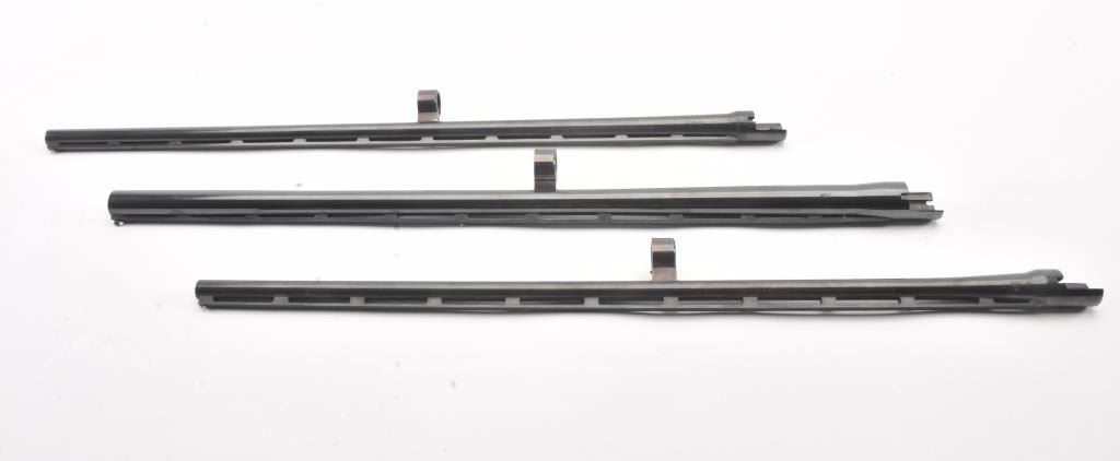 Lot of Remington 870 barrels only: one 16 Ga., 25 1/2" vent rib, modified choke, high polish blue, for 2 3/4" shells, in very good condition overall, with good bore; one 28 Ga., 25" vent rib, modified choke, matteblue, for 2 3/4" shells, in very good condition overall, with good bore; and one 410 Ga., 25" vent rib, modified choke, matte blue, for 2 3/4" shells, in very good condition overall, with good bore. Est.$300-600