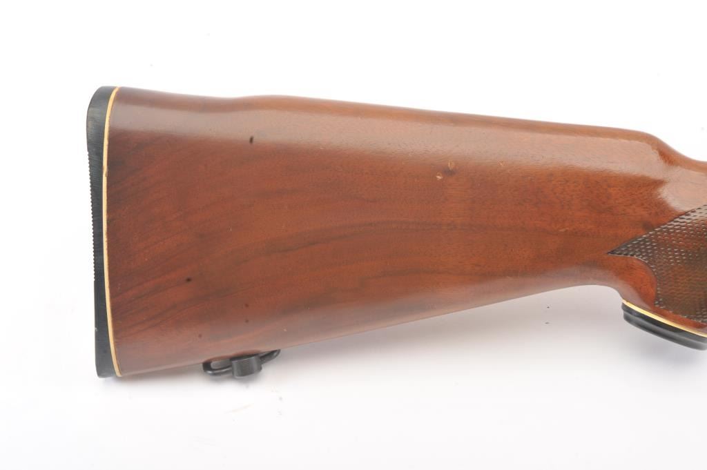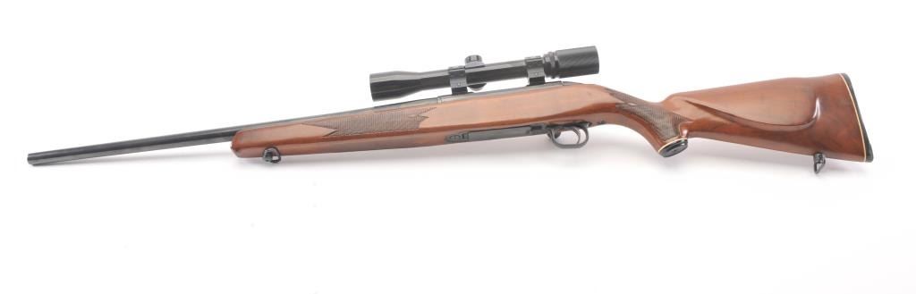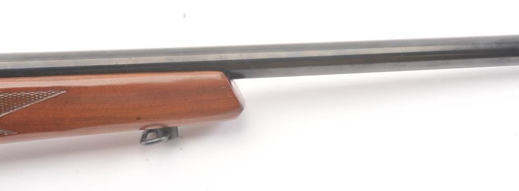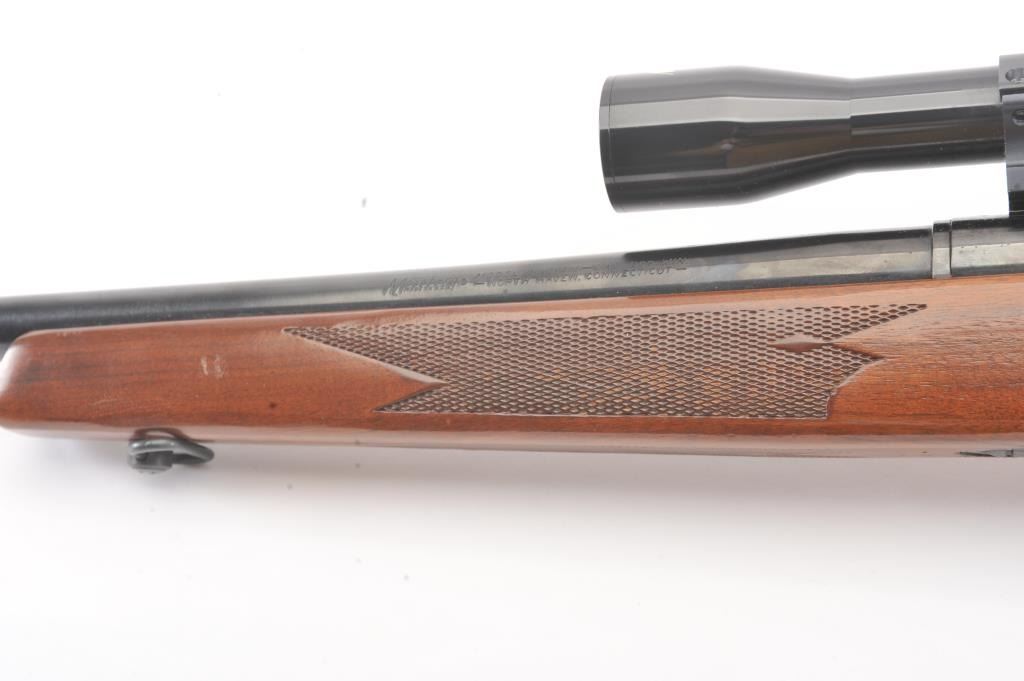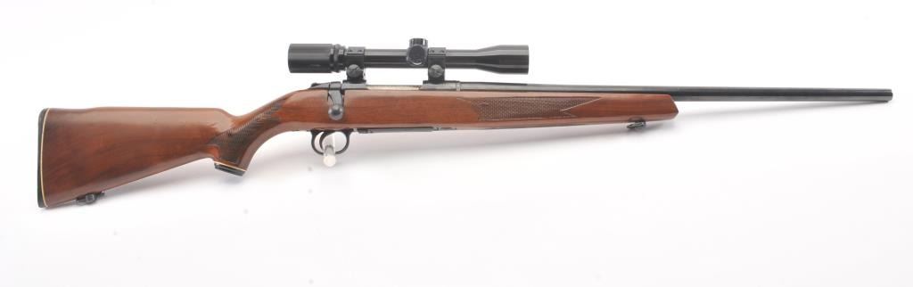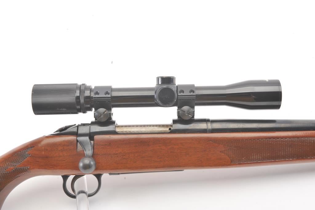 Mossberg 800ASM bolt action rifle, .308 caliber, Serial #859591. The rifle is in nearly excellent overall condition with a 23” barrel. The rifle retains nearly all of the blue finish with wear and light surfaceerosion on the magazine floor plate. The checkered wood stock is in very good condition with sling swivels added. The bore is good, the action is crisp and the markings are sharp. The rifle is topped with a Mossberg brand fixed power scope. Est.: $250-$500. (Modern).
