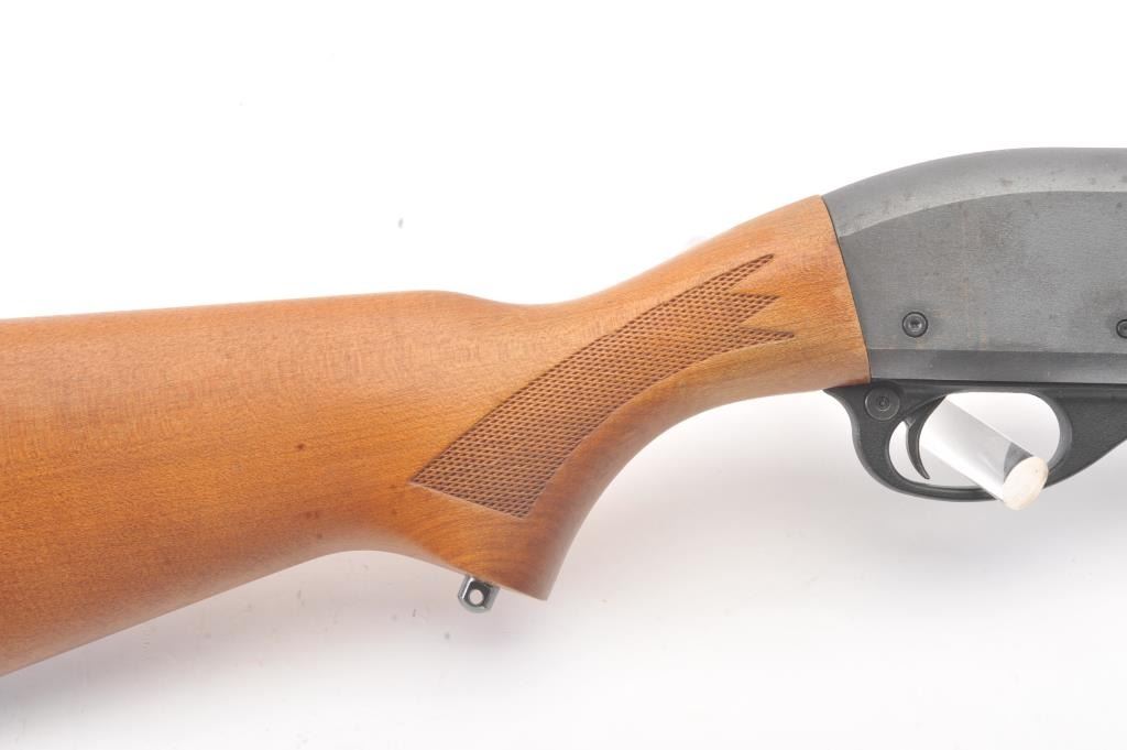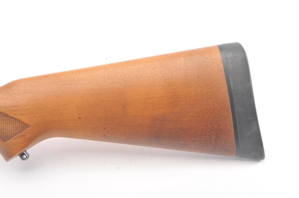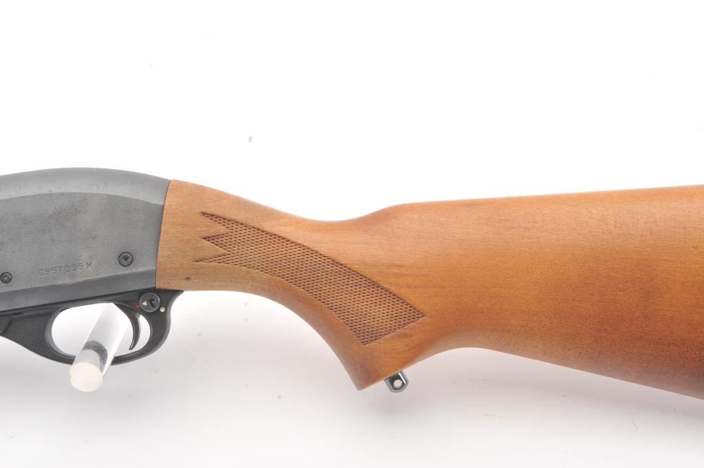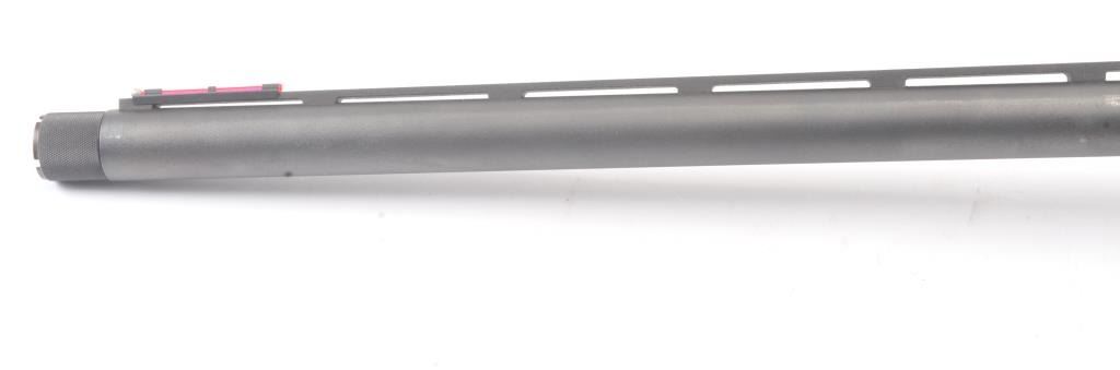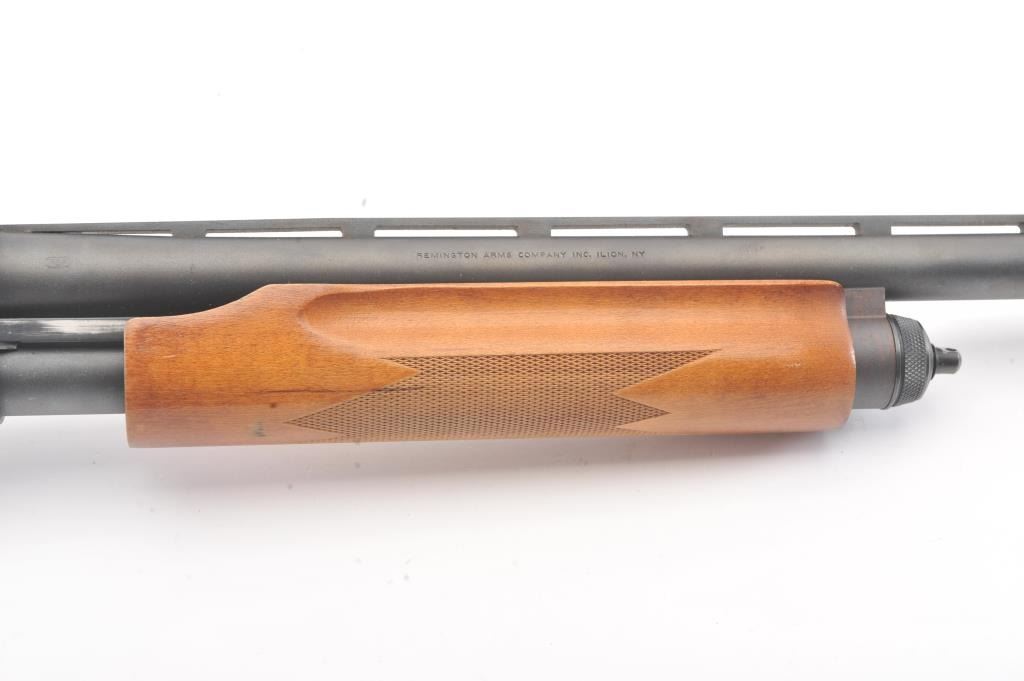 Remington Model 870 Express Magnum pump shotgun, 12 gauge, Serial #C957055M. The shotgun is in fine overall condition with a 28” barrel with a full-length ventilated rib and screw in modified choke tube. Theshotgun retains nearly all of the matte blue finish with a couple spots of light surface rust on the barrel and a Hi-Viz front sight. The magnum receiver is marked for 2 ¾” and 3” shells. The checkered wood stocks are invery good conditions with small mars and scrapes consistent with field use. The butt stock ends with a solid rubber recoil pad providing a 14” LOP. The bore is good, the action is crisp and the markings are sharp.Est.: $175-$350. (Modern).