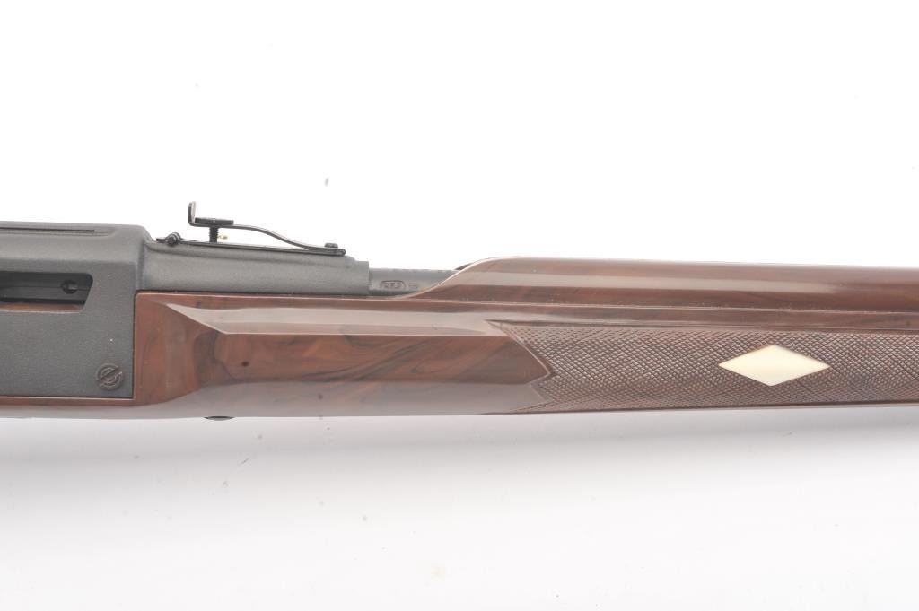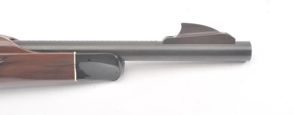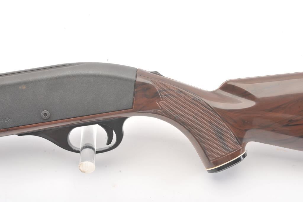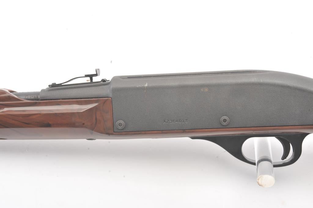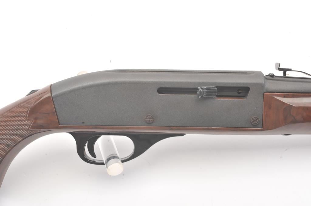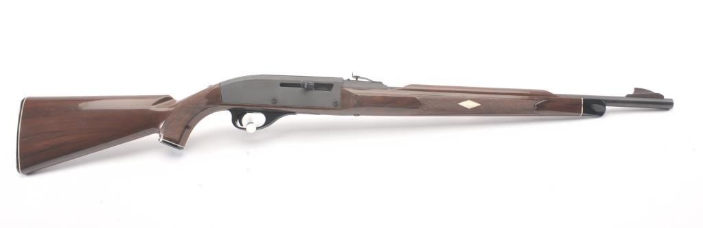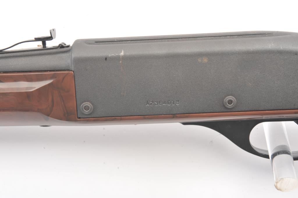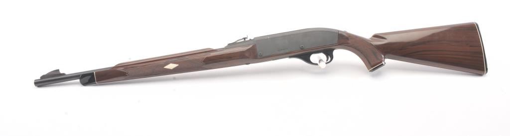 Remington Model Nylon 66 semi-automatic rifle, .22 Long Rifle caliber, Serial #A2364018. The rifle is in fine overall condition with a 19 ½” barrel. The metal surfaces retain the majority of the matteblue finish with some light scratches on the left side of the receiver. The checkered synthetic stock is in very good condition. The bore is good, the action is crisp and the markings are sharp on this desirable Nylon66. Est.: $250-$500. (Modern).