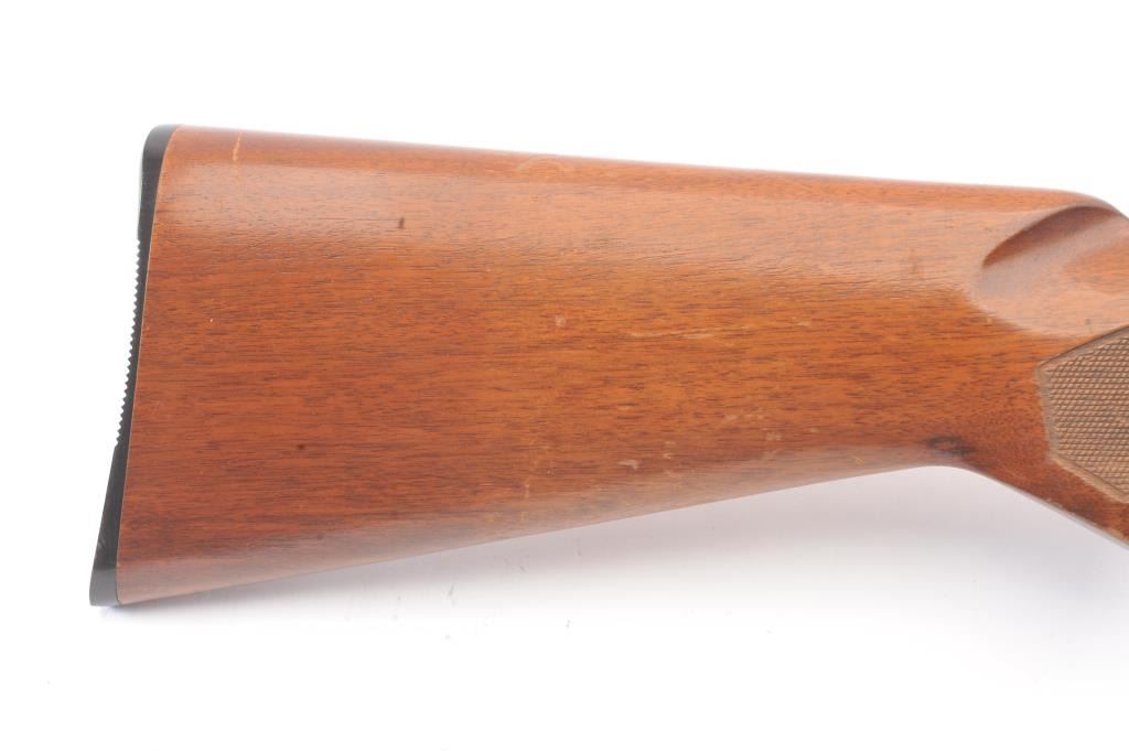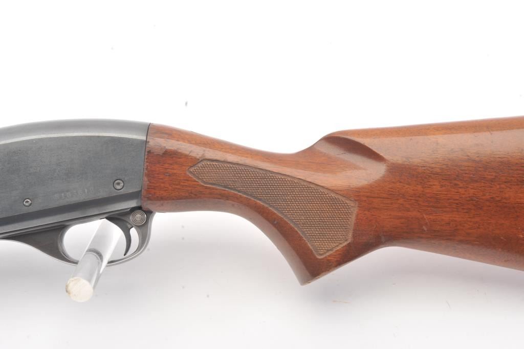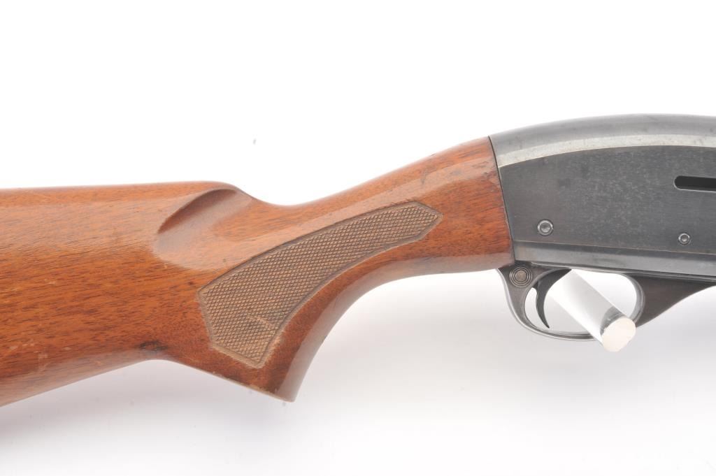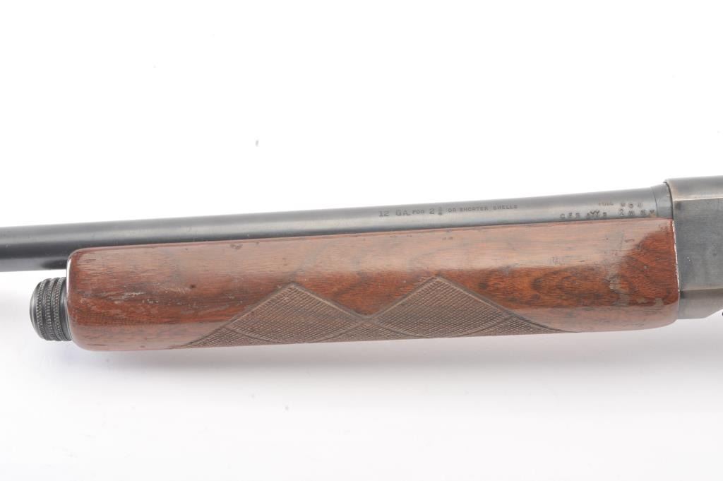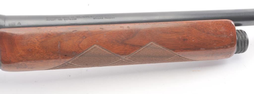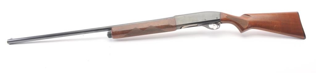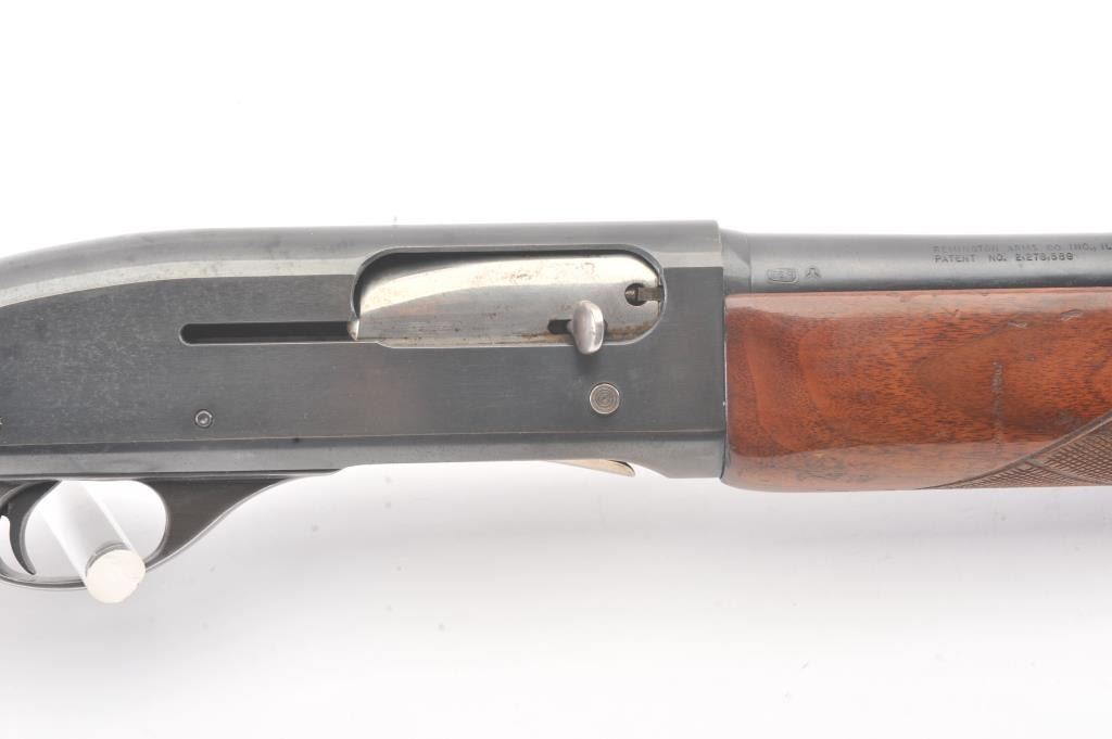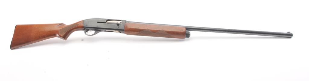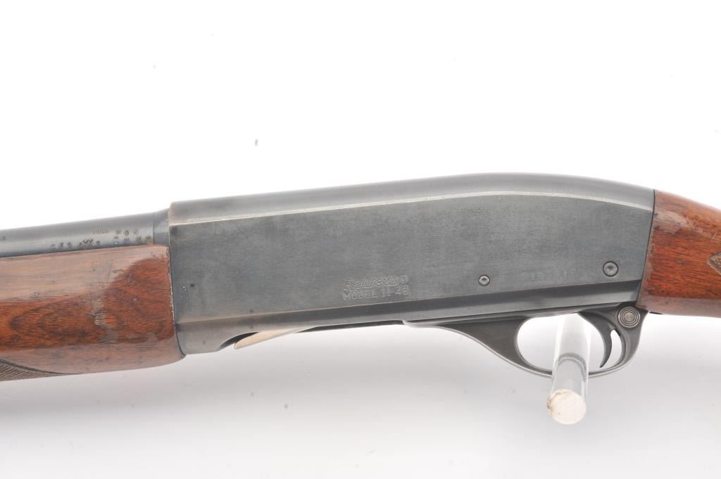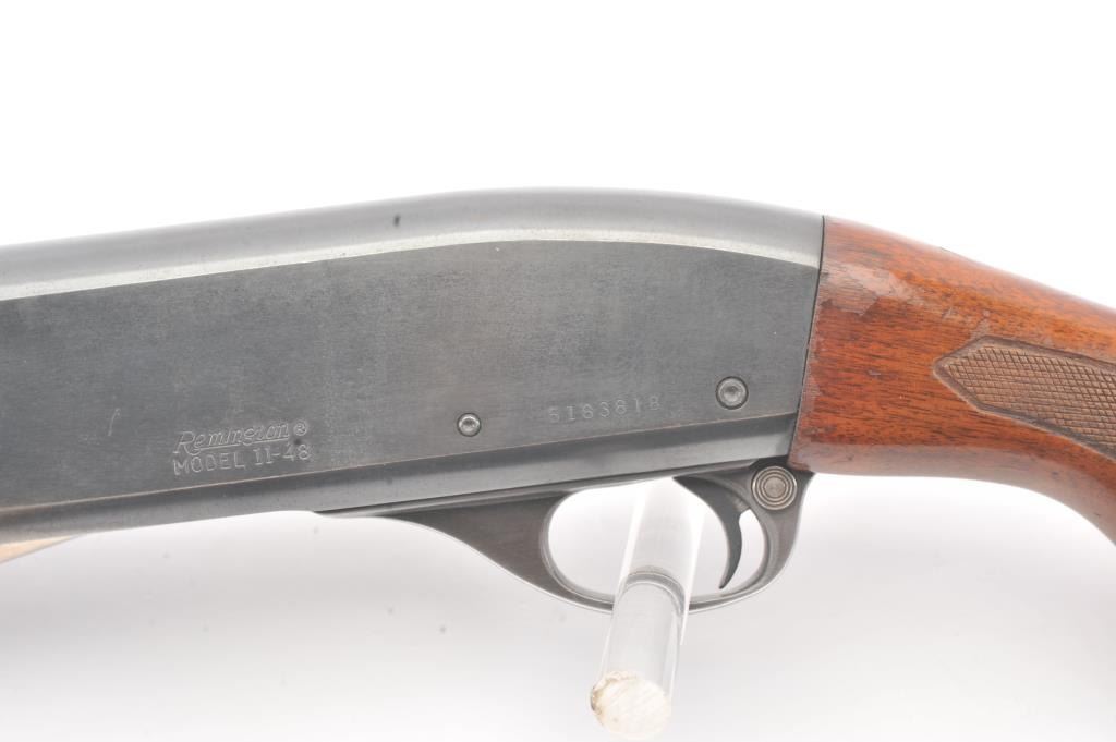 Remington Model 11-48 semi-automatic shotgun, 12 gauge, Serial #5183818. The shotgun is in very good overall condition with a 30” barrel with a steel bead front sight. The shotgun is choked full with a 2 ¾” chamber.The checkered wood stock is in very good condition with mars and scratches consistent with field use. The butt ends with a plastic butt plate providing a 14” LOP. The bore is good, the action is crisp and themarkings are sharp. Est.: $150-$300. (Modern).