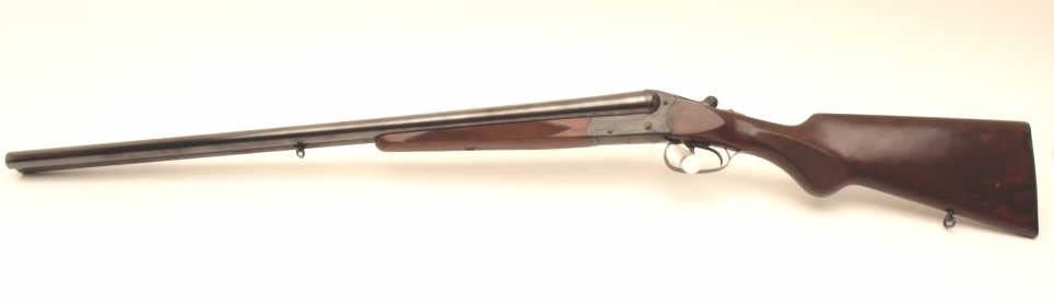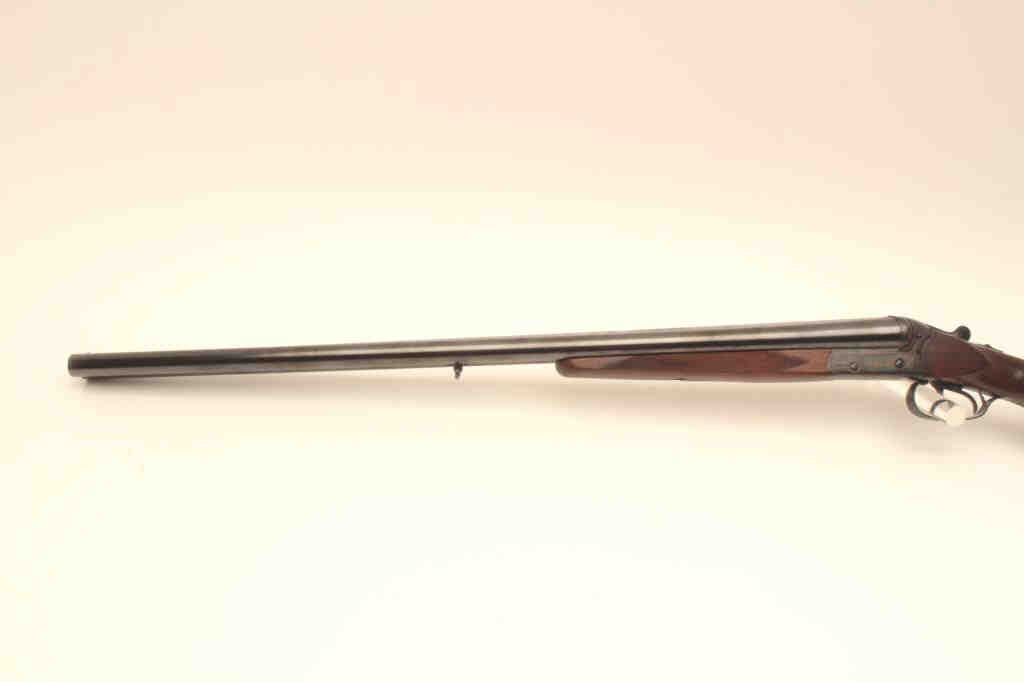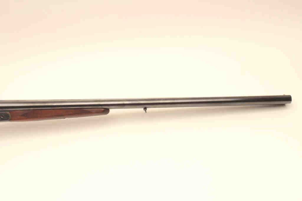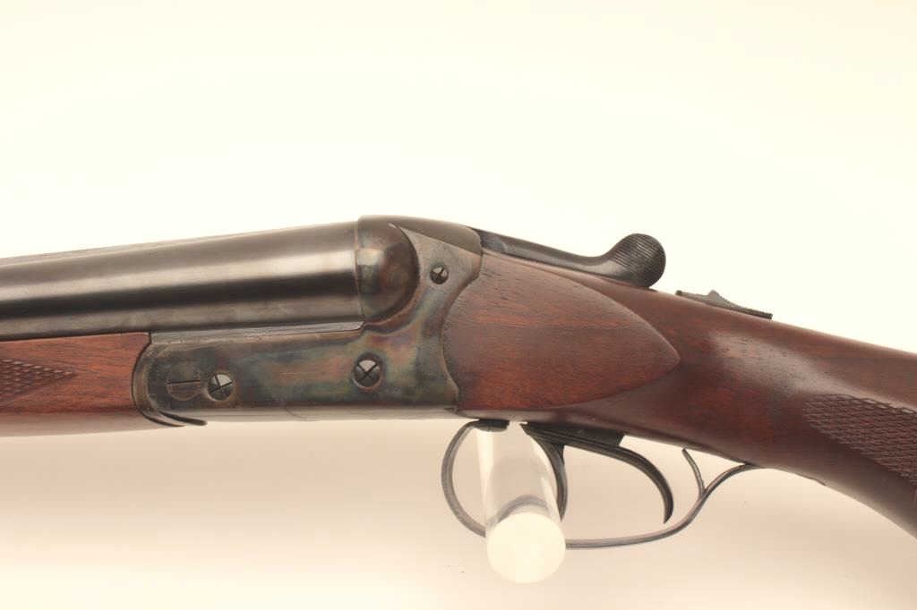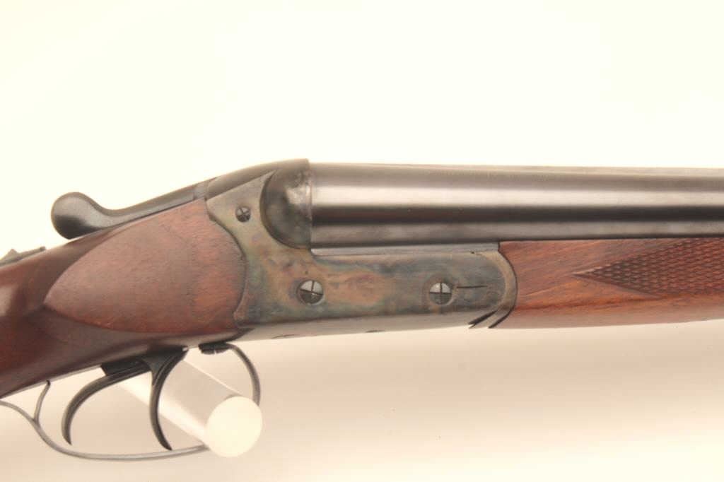 Suhl Germany Post War (GBR) guild gun in 12GA with 28” barrels choked modified right and full left, double triggers, standard extractors, rounded pistol grip European style stock with sling swivels, S/N 879716.Blue and case color finish remain in excellent condition with 98%-99% plus and colors are very brilliant. The stocks are fine to excellent. 2 ¾” chamber and shows very little to almost no use. With Europeanleather carry case. Obtained by an American G.I. in Europe before the wall came down and imported for own use. No import marks. Current replacement for comparable Suhl made gun is $2000-$2500. (Modern) Est.: $500-1000