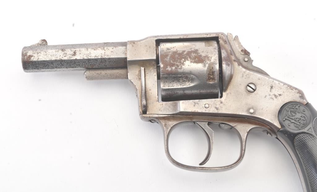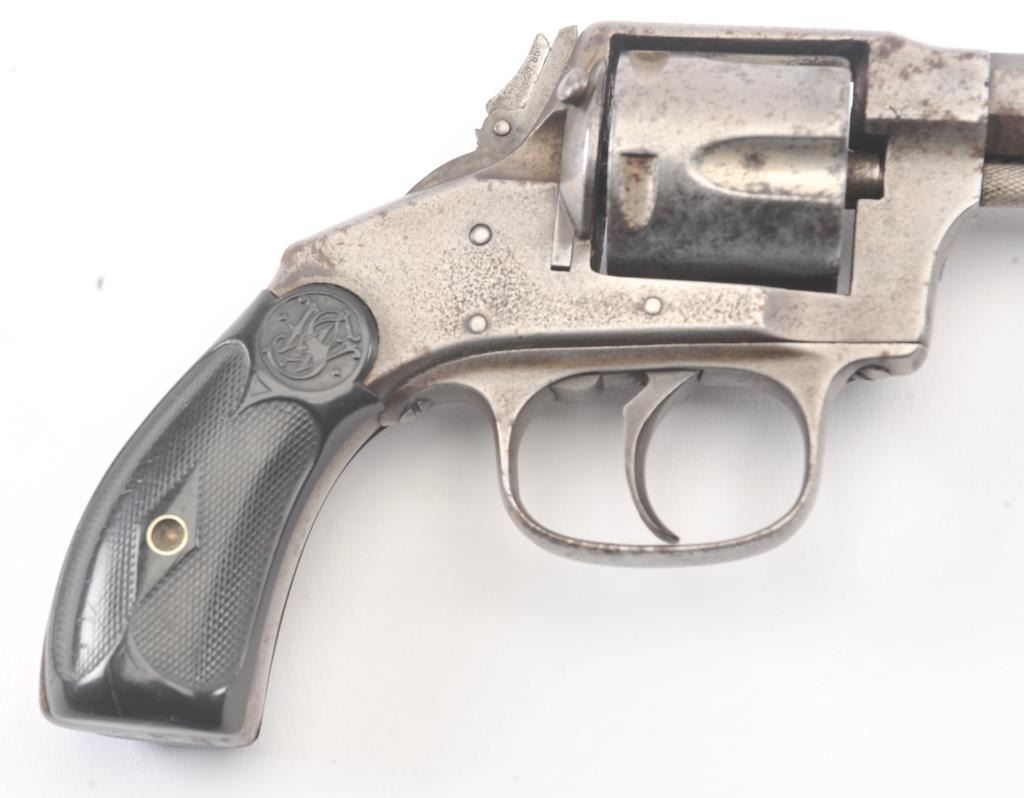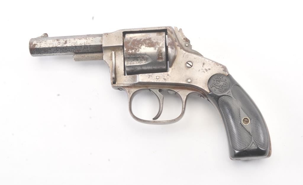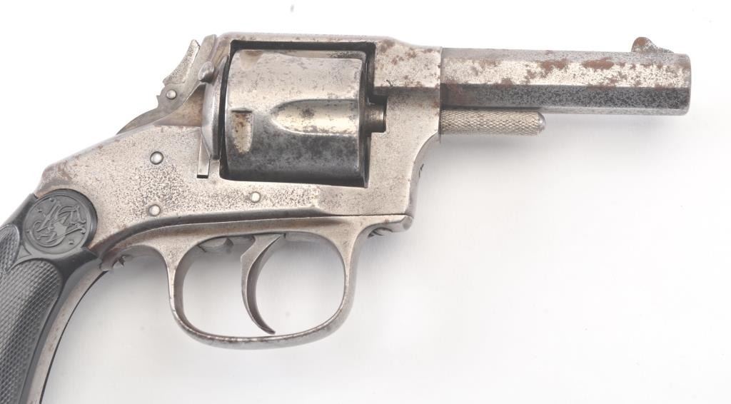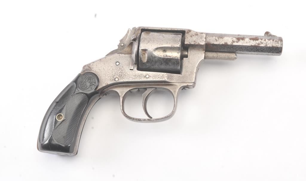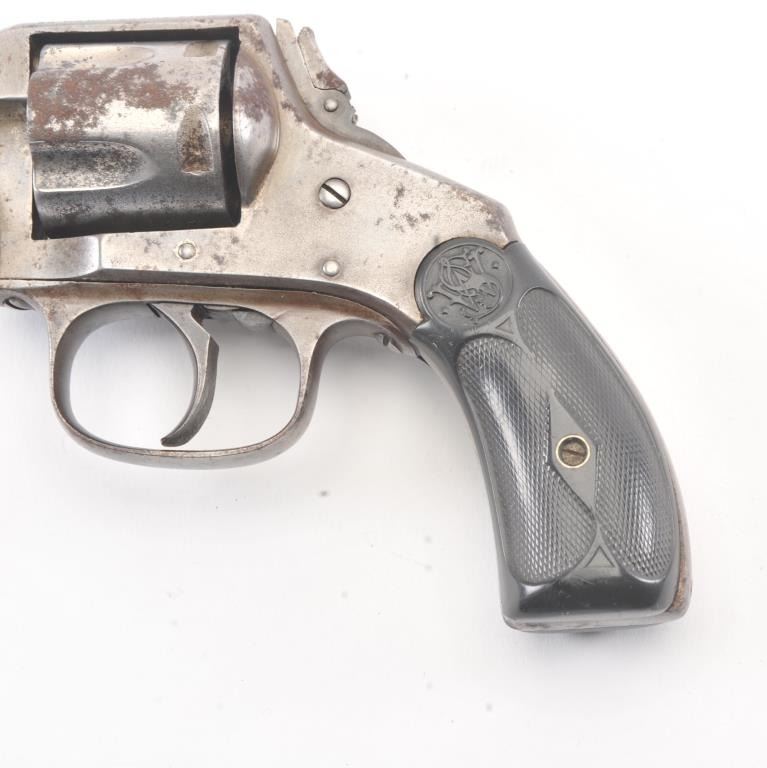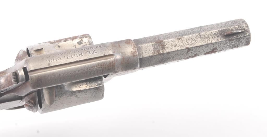 Hopkins & Allen XL Bull Dog DA revolver, .38 caliber, Serial #NSNV. The pistol is in good overall condition with a 3” octagon barrel with a bobbed hammer. The pistol has gone to grey patina with areas of light surface rust evident. The checkered hard rubber grips are marked S&W and are in good condition. The bore is fair, the action functions and the markings are legible. Est.: $125-$250. (Antique).