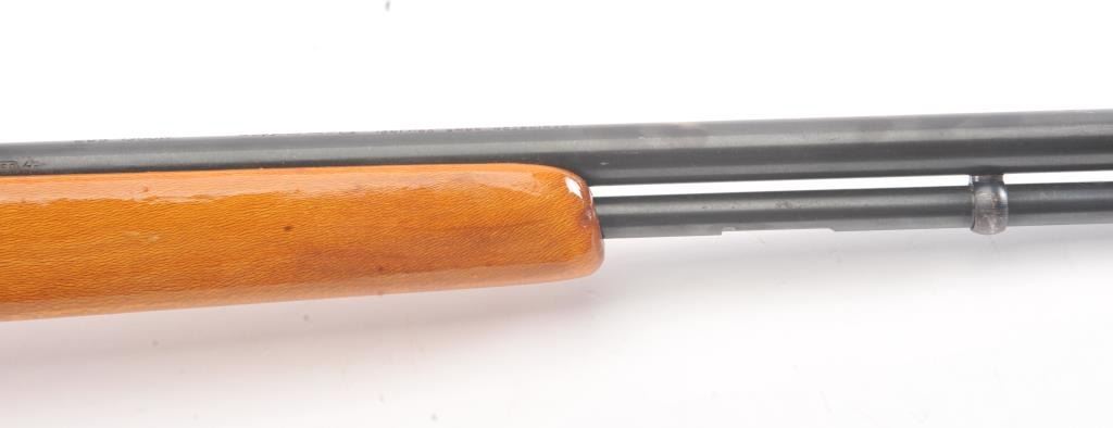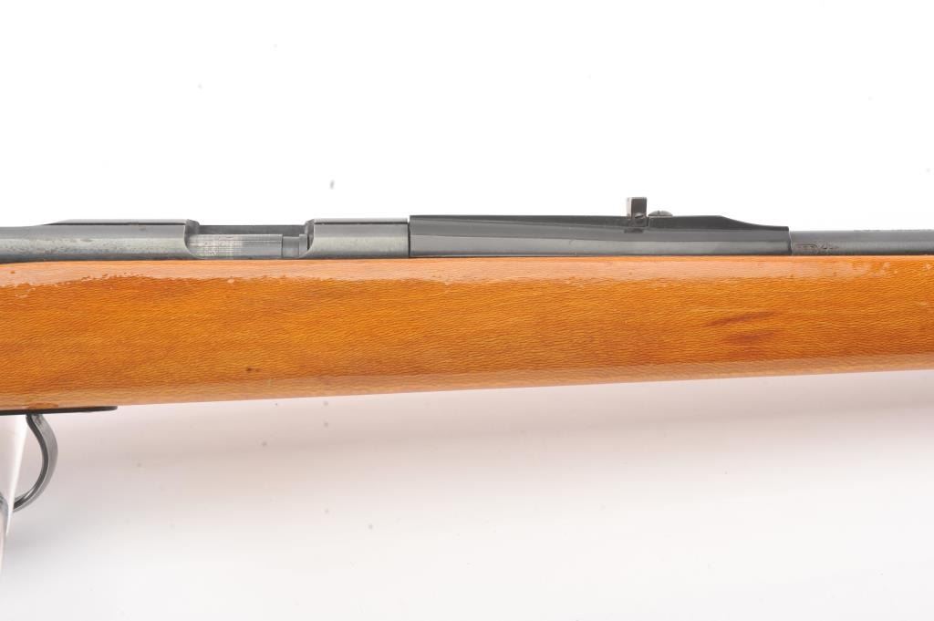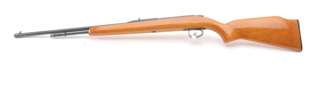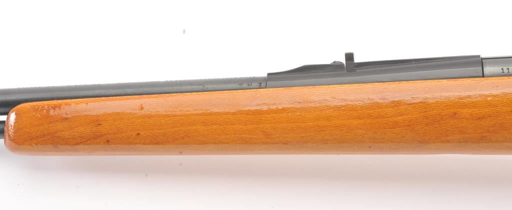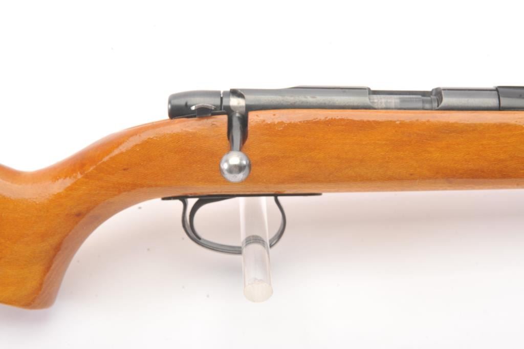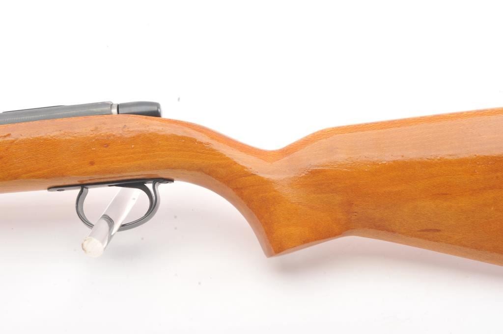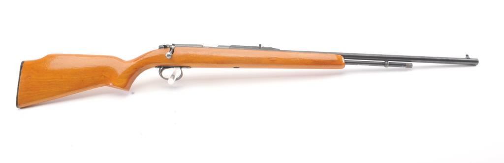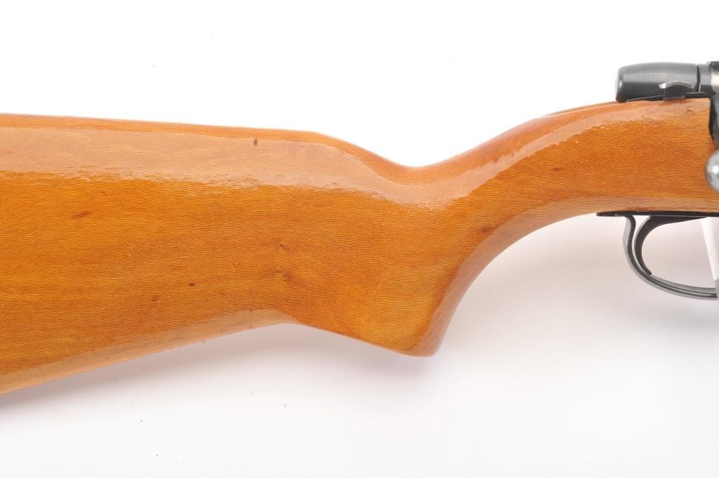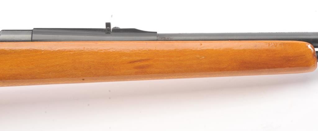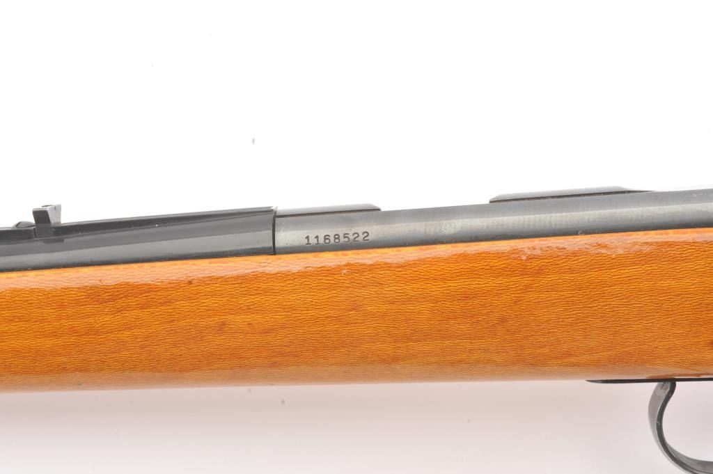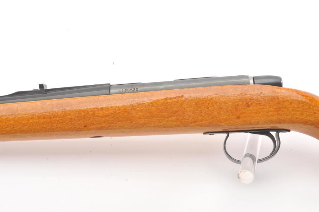 Remington Model 582 bolt action rifle, .22 S., L., or L.R. caliber, Serial #1168522. The rifle is in fine overall condition with a 24” barrel with a ½ magazine. The metal surfaces retains nearly all of the muted blue finish with wear at the muzzle and an area on top of the barrel. The smooth wood stock is in very good condition. The bore is good, the action is crisp and the markings are sharp. Est.: $90-$180. (Modern).