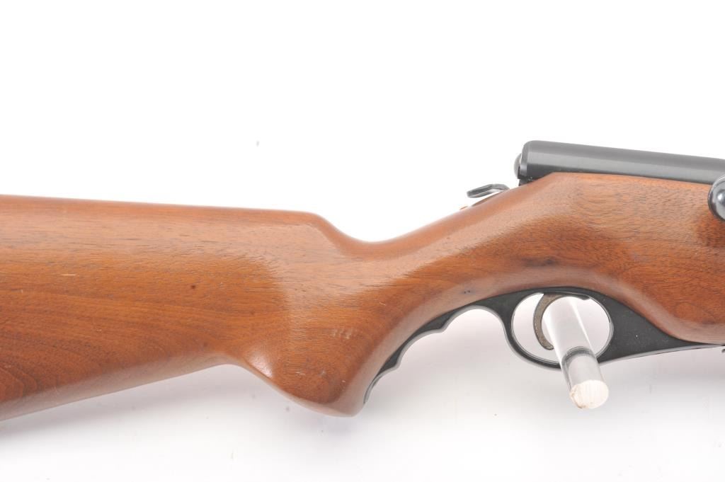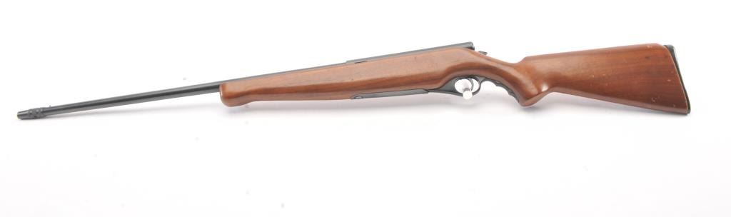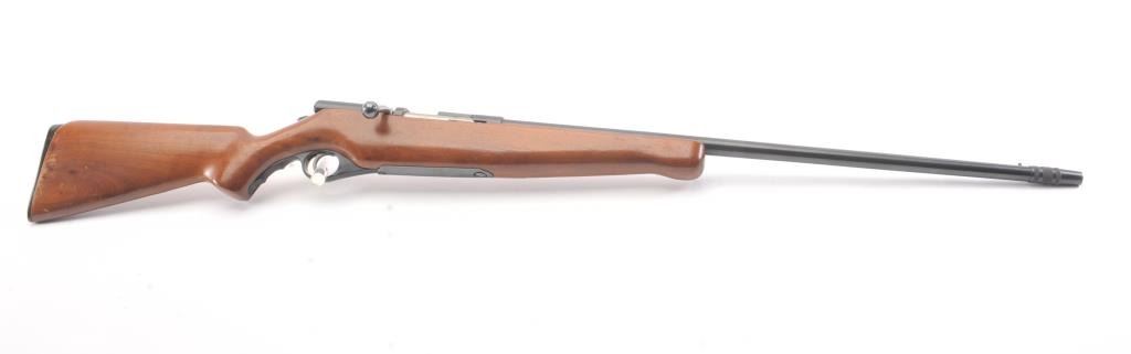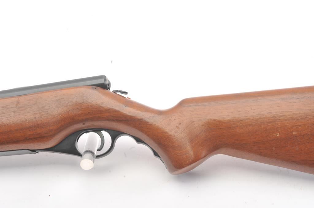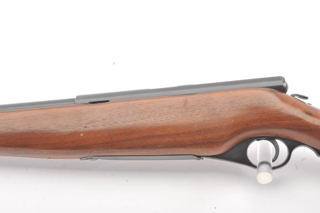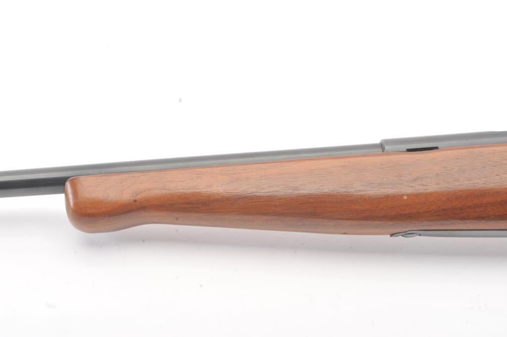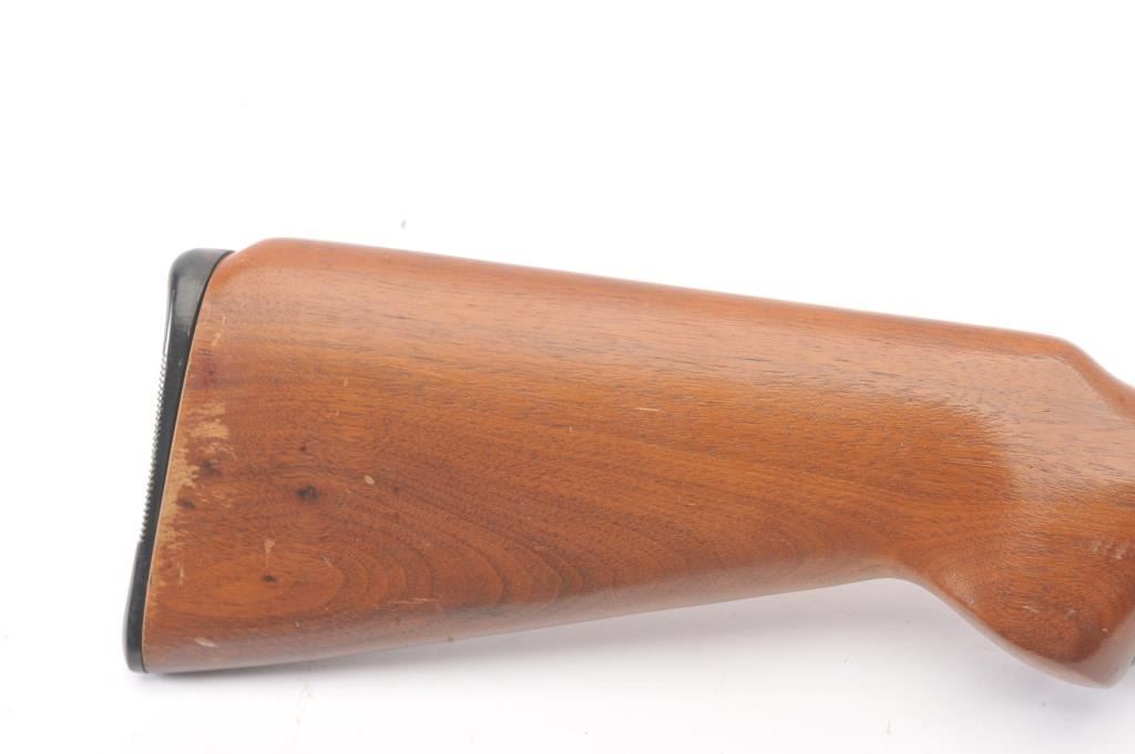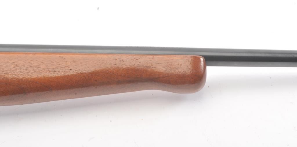Mossberg Model 183D-B bolt action shotgun, .410 gauge, Serial #NSNV. The shotgun is in very good overall condition with a 24” barrel with the Mossberg adjustable choke. The shotgun retains nearly all of the blue finish with handling and storage marks. The smooth wood is in good condition with scrapes and some loss of finish at the butt plate. The butt stock ends with a plastic butt plate providing a 13” LOP. The bore is good andthe action functions. Est.: $90-$180. (C+R).