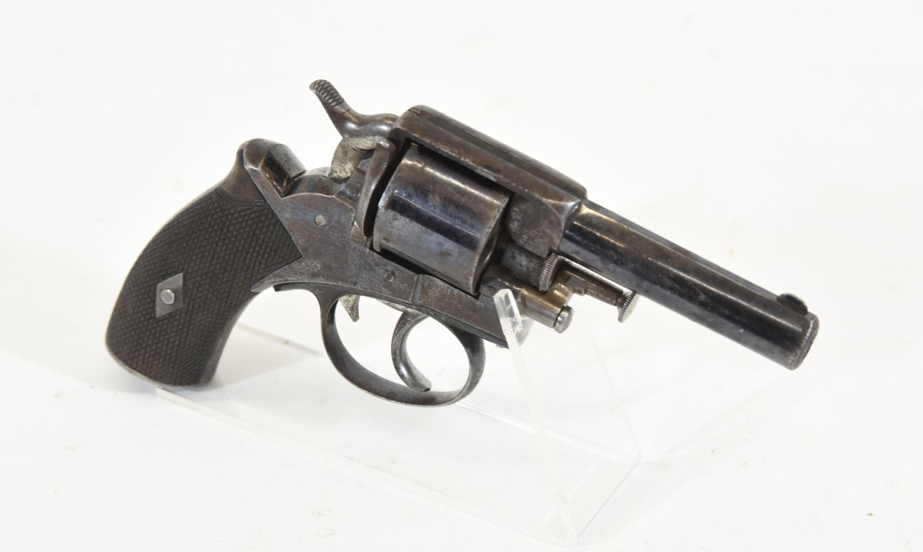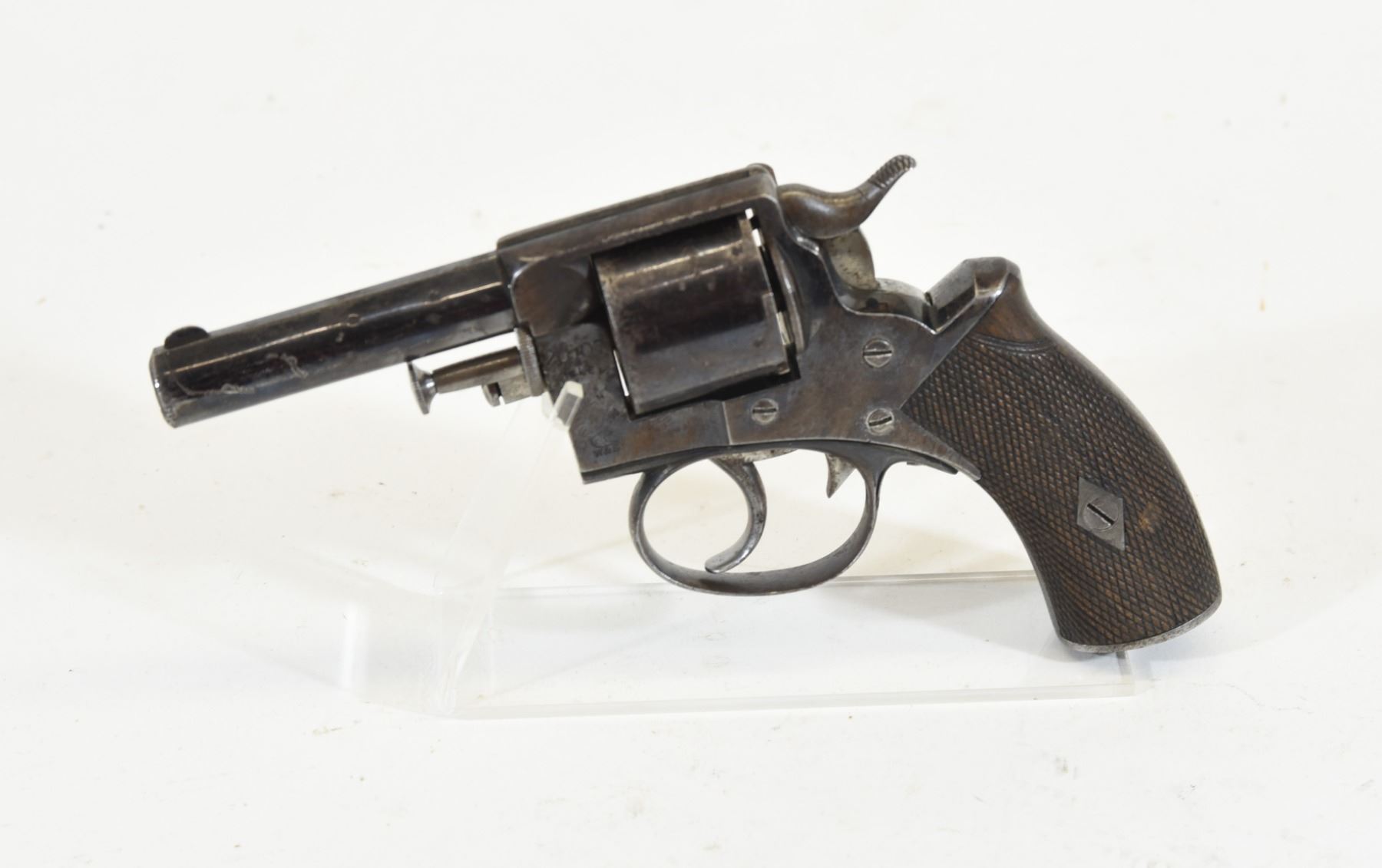 Prohibited, revolver. .32 caliber, 76mm barrel, SN 20107. Bluing is rust pitted and gray. Bore has some pitting but visible rifling. Action is free and locks firmly.