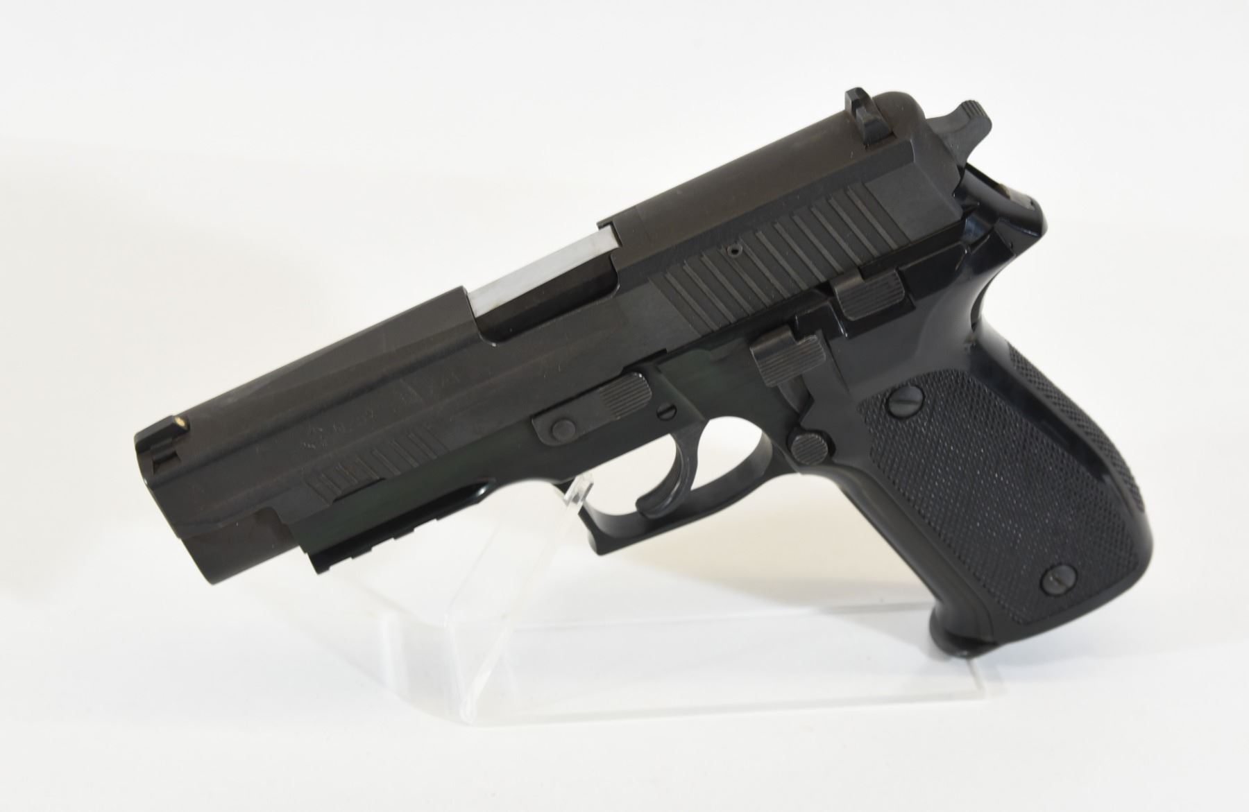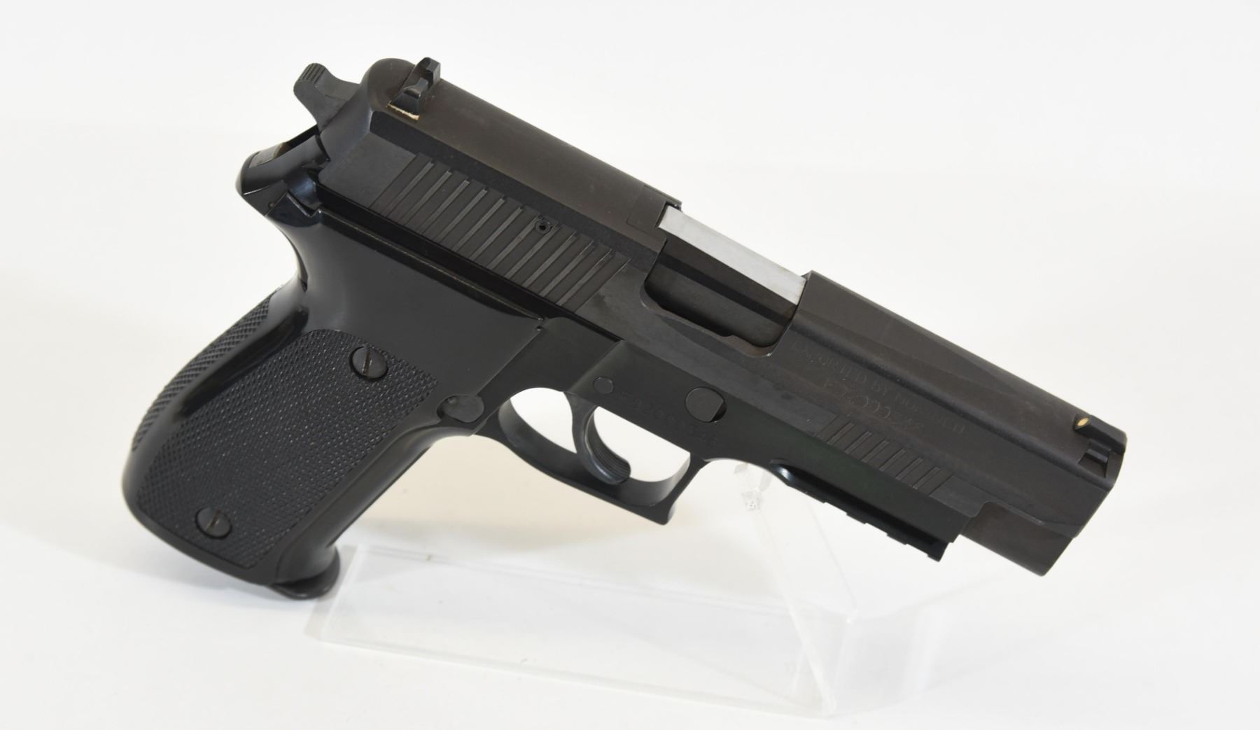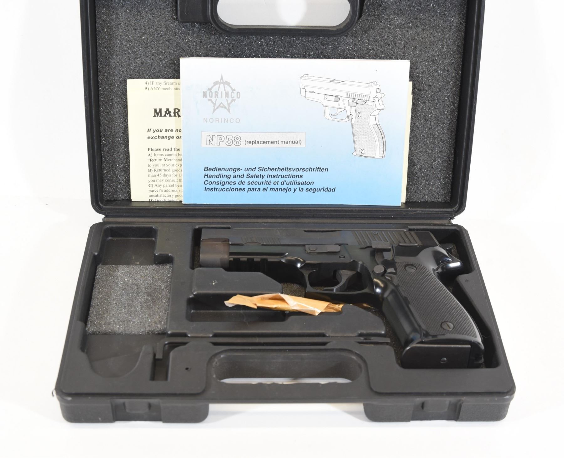 Restricted, semi-auto, 40 S&W, 112mm barrel, SN F02000346. Grips are good. Bluing is good. Bore is excellent. Comes with case, cleaning kit, and instruction manual.
