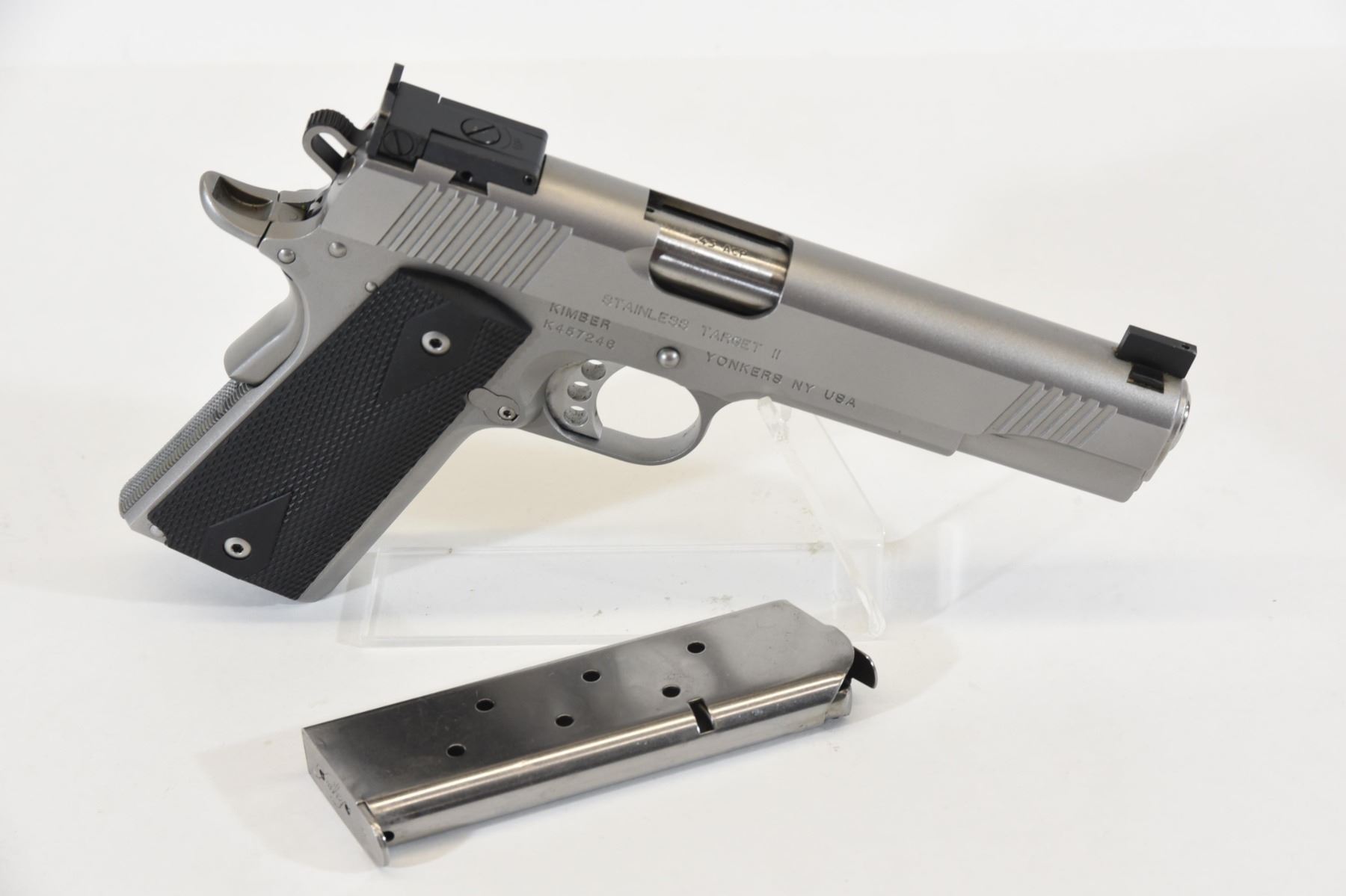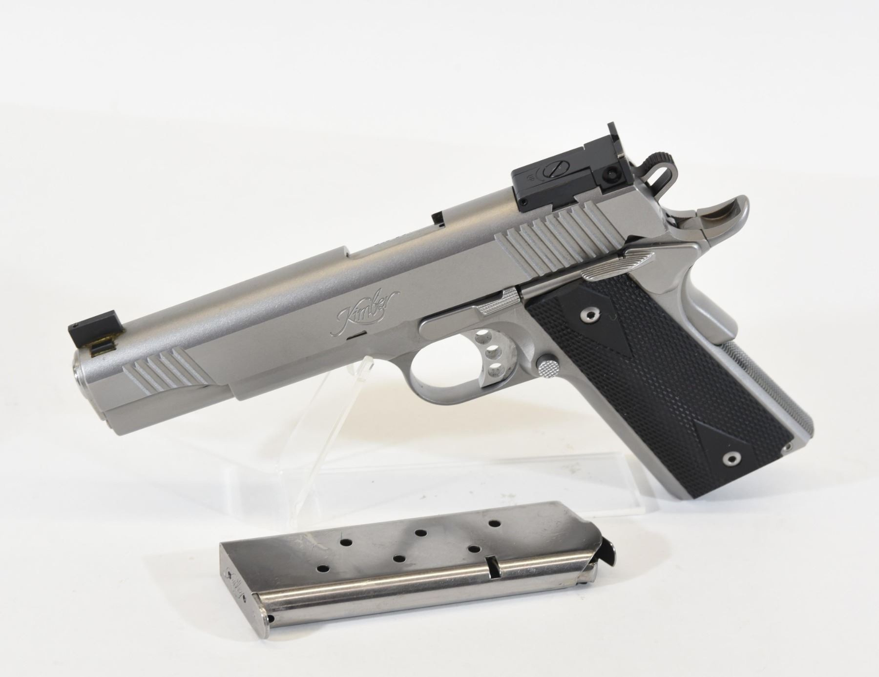 Restricted, semi-auto 45 acp, 127mm barrel, SN K457246. Grips are excellent. Stainless steel satin finish is excellent. Bore is excellent. Comes with a case.