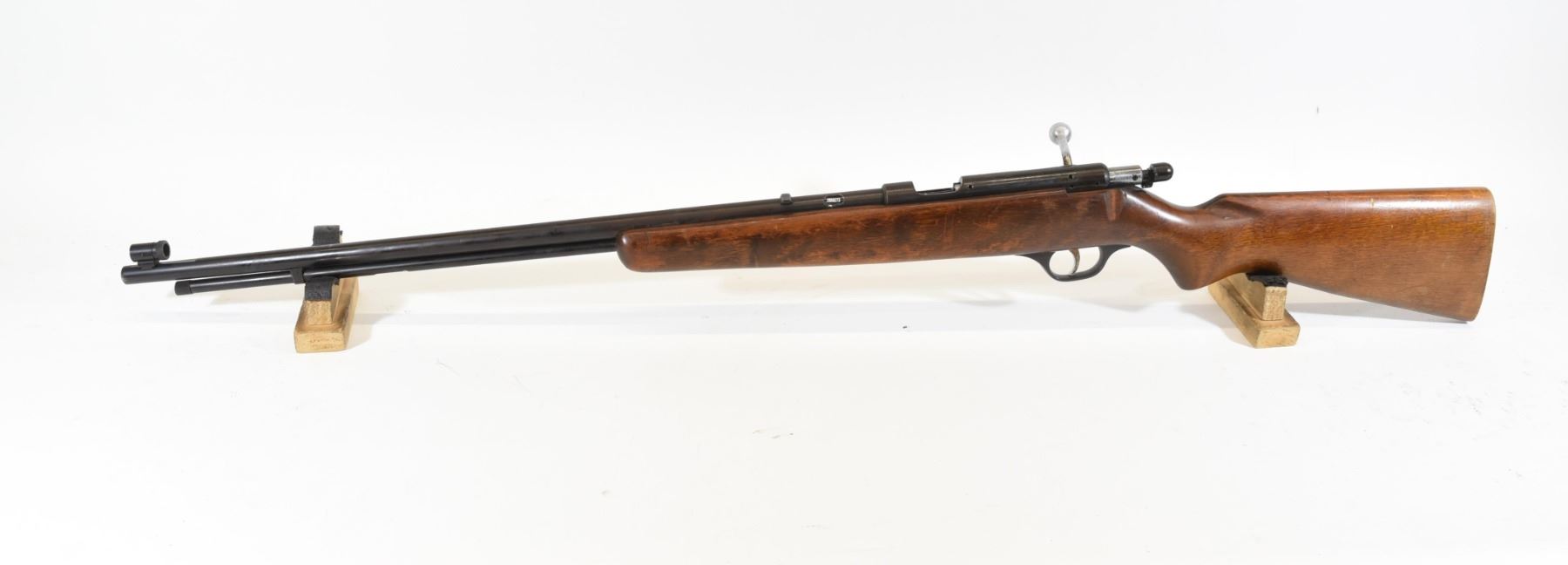 Non-restricted, 22S,L,LR, bolt action, 23" barrel, SN 2869273.Wood stock has many dents and scratches with fading finish and is missing butt plate, bluing going brown with several scratches and bare patches. Bore is excellent.