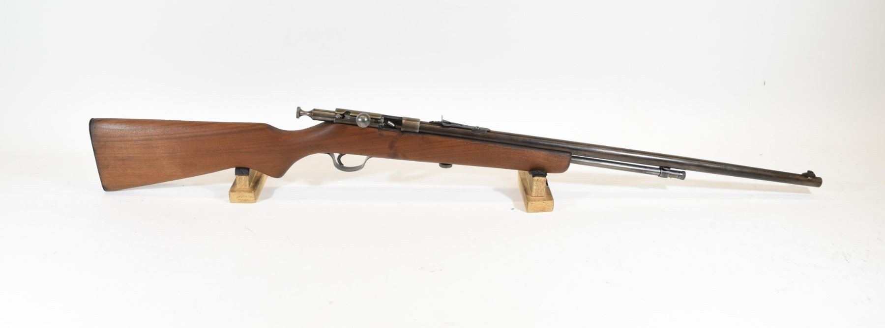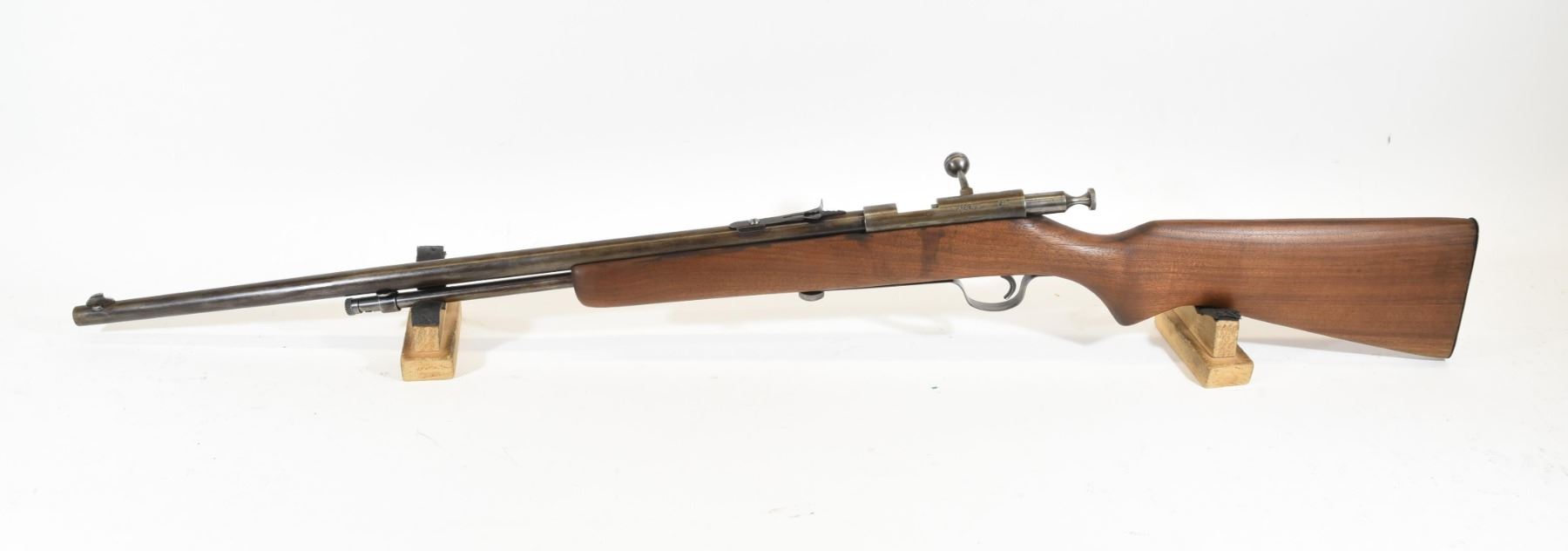 Non-restricted, 22cal, bolt action, SN N/A. Wood stock has several minor scratches and dents but is good overall, bluing has gone brown and is going grey with a few light scratches. Bore is excellent.