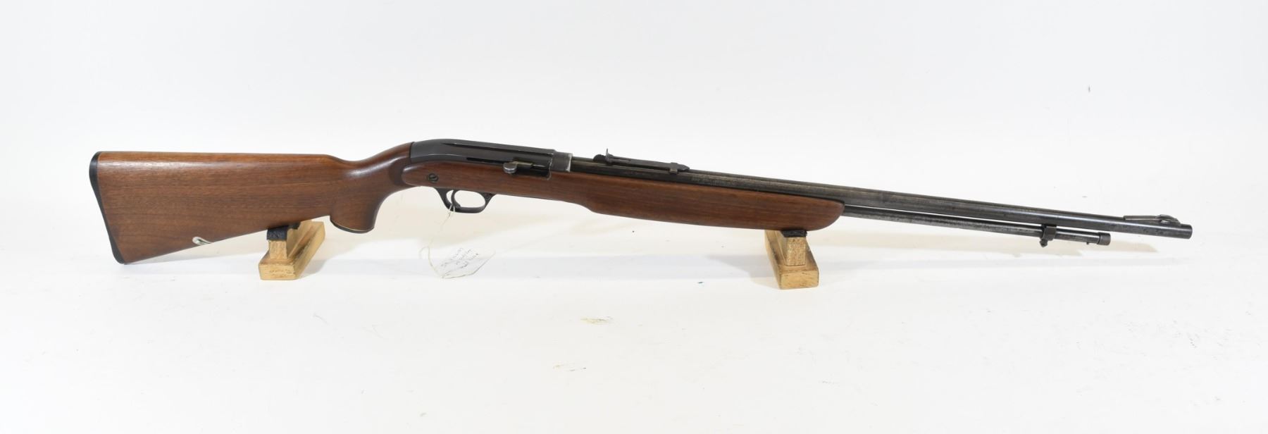 Non-restricted, 22S,L,LR, semi-auto, SN N/A. Wood stock has many scratches and dents with a chip on the right side behind the trigger guard, bluing going grey with some light scratches on the action. Bore is good. Extendable shoulder sling is intact and functioning.