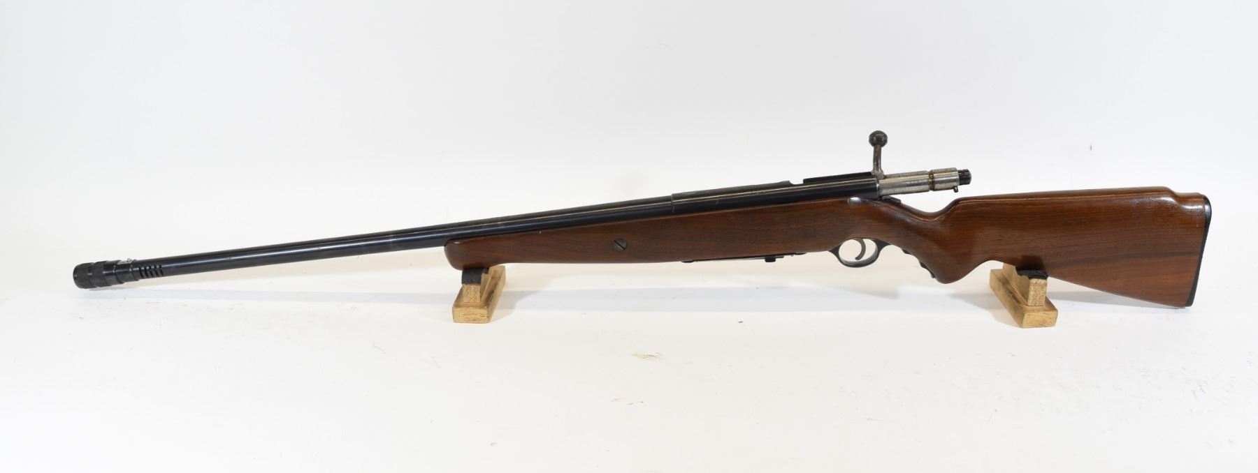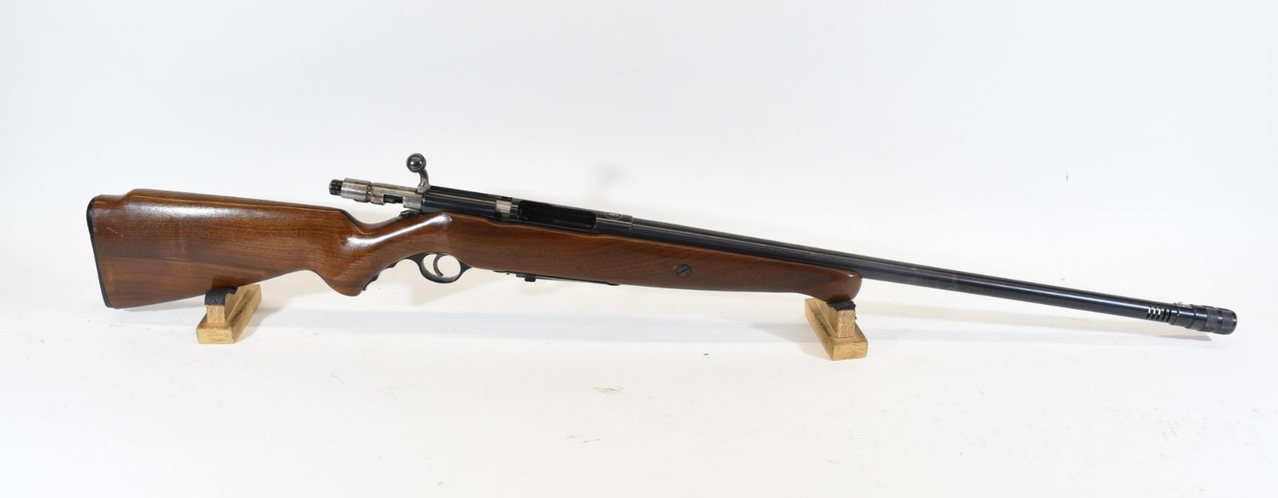 Non-restricted, 16ga 2 3/4", bolt action, 23" ported barrel, SN 5320770. Wood stock has many light scratches but is good overall. Bluing has many light scratches and some small speckles of rust. Bore is lightly scratches throughout but shiny. Gun has an adjustable choke.