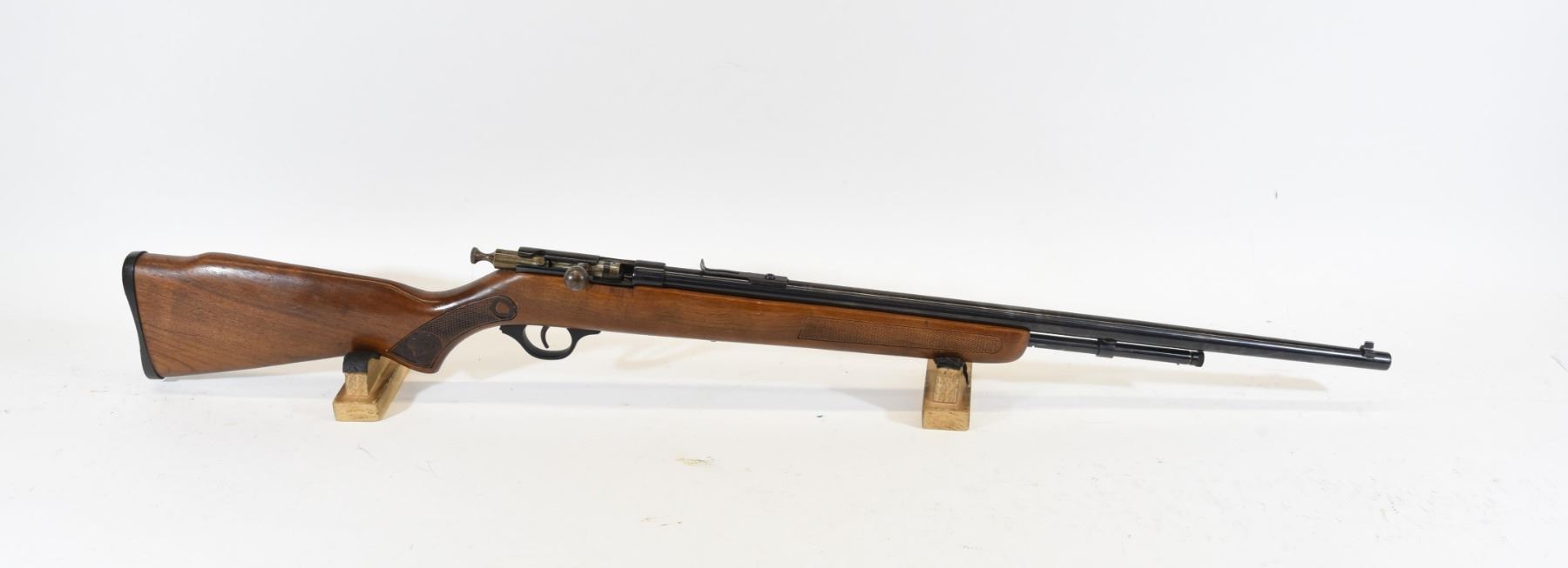 Non-restricted, 22S,L,LR, bolt action, SN N/A.Wood stock has many scratches, but is in good condition overall. Bluing has several small scratches and is lightly speckled with rust on the bottom of the barrel as well as on the action in front of the bolt. Bore has one patch of pitting near the muzzle, but is good otherwise.