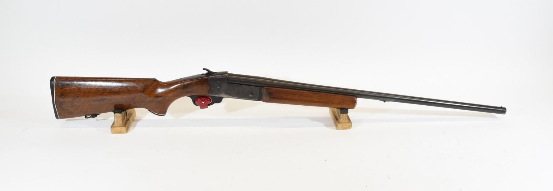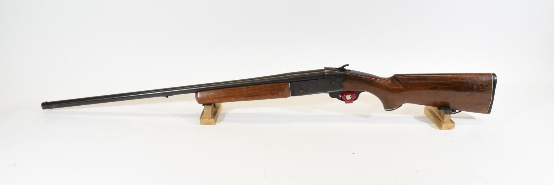 Non-restricted, 20ga 2 3/4", single shot, 28" fixed full choke barrel, SN C71239. Wood stock has many dents and scratches, but no cracks. Bluing has many scratches and bare patches. Bore is good, but lightly pitted near the muzzle.