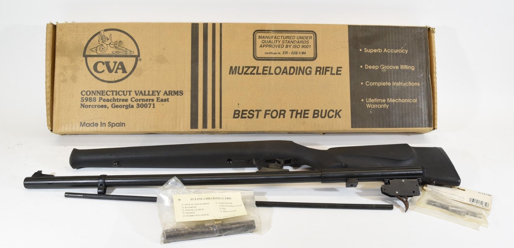 Non-restricted, 50cal, black powder muzzle loader, SN 61-13-005433-99. Synthetic stock is good. Bluing is good aside from two small and light scratches. Bore is good. Rifle is not assembled and comes with original box.