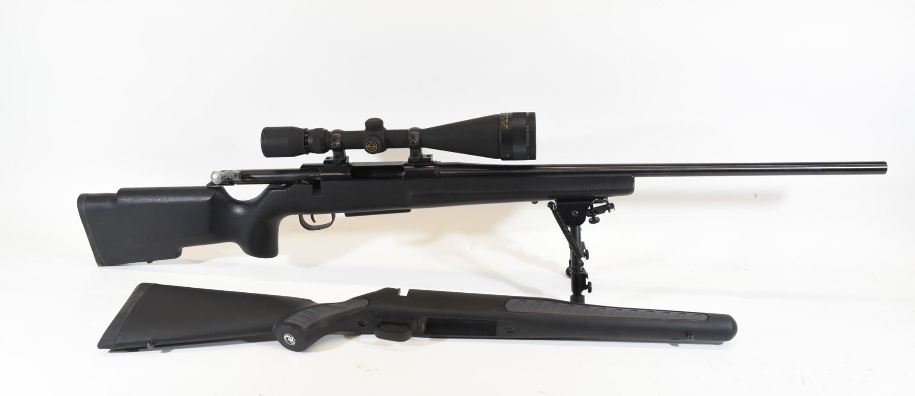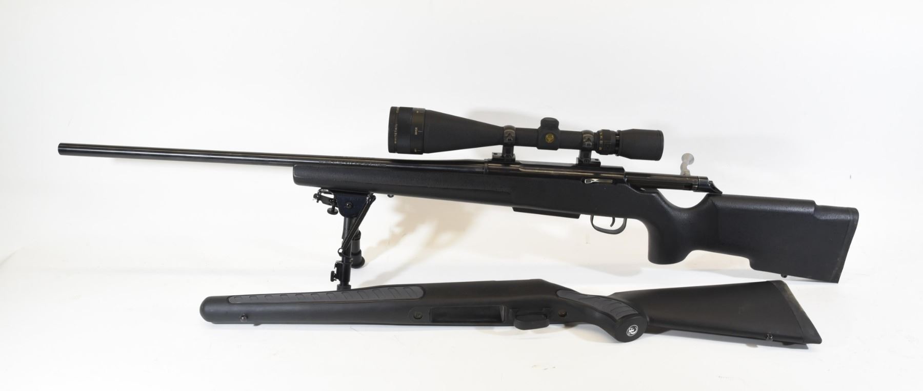 Non-restricted, 300Win Mag, bolt action, SN U010865. Synthetic stock is in good condition, bluing is in good condition. Bore is good. Has Simmons Whitetail 6.5-20x50 scope and unknown bipod with 8" legs. Comes with original stock (after market stock is installed).