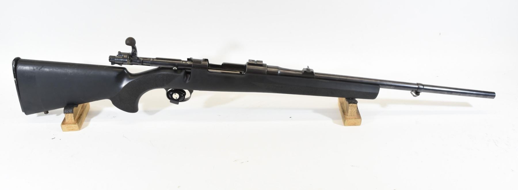 Non-restricted, 9.3x57, bolt action, SN 27828 Synthetic stock has several marks but is good overall, bluing is good. Bore is good.