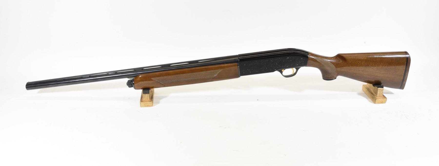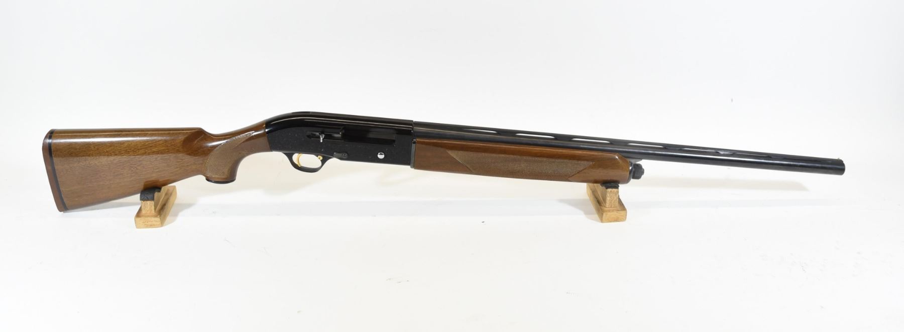 Non-restricted, semi-auto. 12ga 2 3/4", fixed skeet choke, 25.5" barrel, SN G20818E. Wood stock has a few surface scratches, bluing on barrel is slightly grey, bluing on receiver is good. Receiver has scroll work. Bore is good.