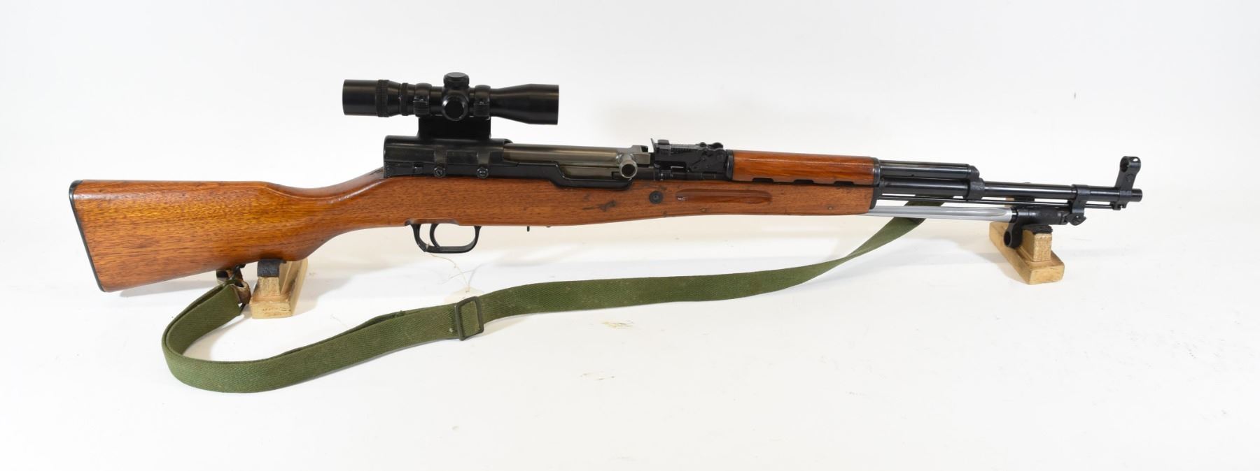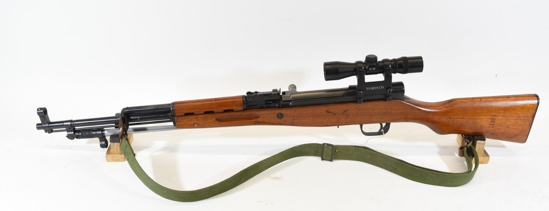 Non-restricted, 7.62x39, semi-auto, SN 23011006. Wood stock has several large scratches and dents, bluing is good. Bore is good. Comes with fabric shoulder sling and 4x28 scope on Norinco mount. No magazine.