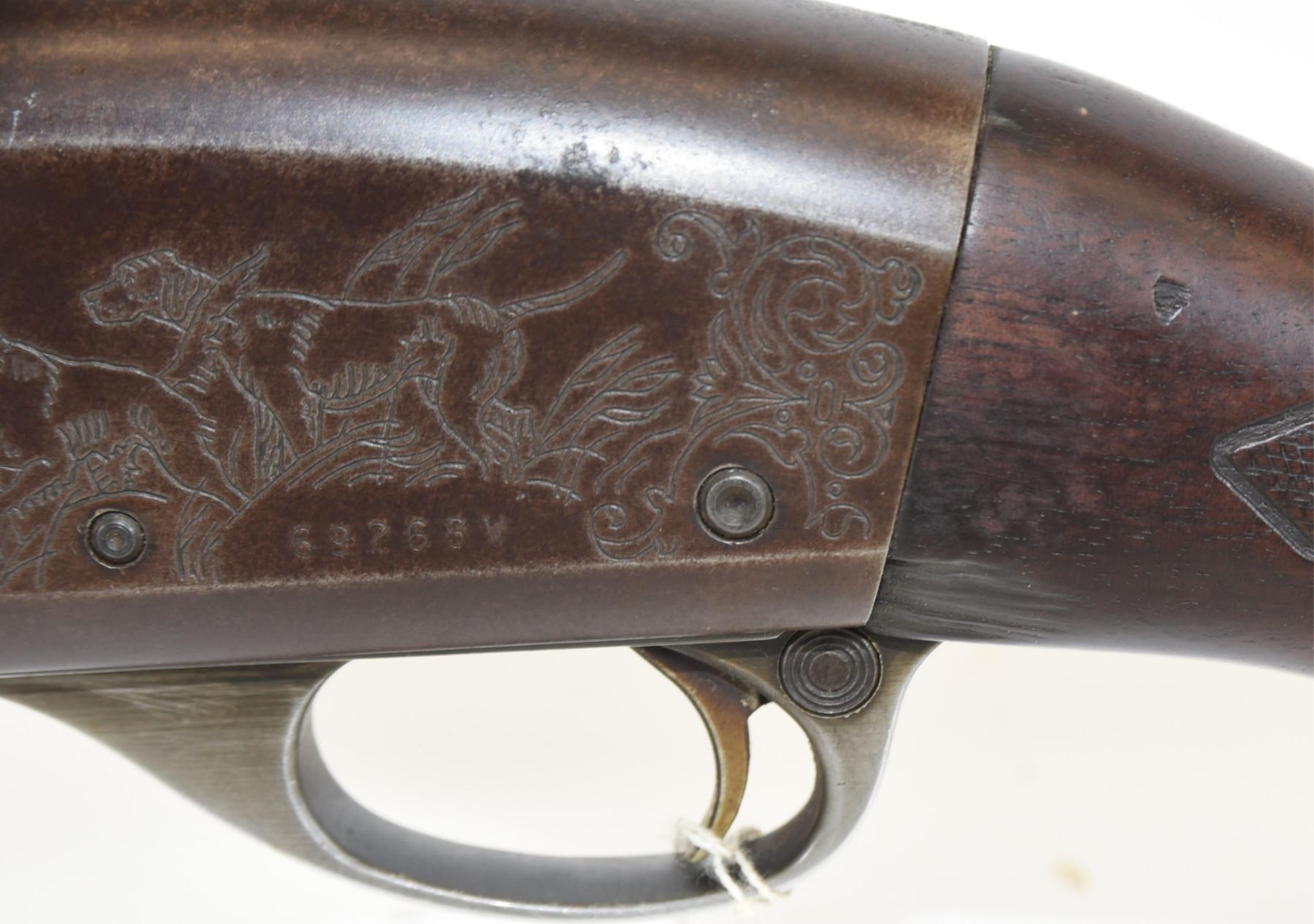 Non-restricted, 12ga 2 3/4", 27.5" fixed full choke, SN 69268V. Wood stock has several dents and scratches with one chip near the trigger guard but no cracks. Bluing has gone brown but is good otherwise. Bore is good.