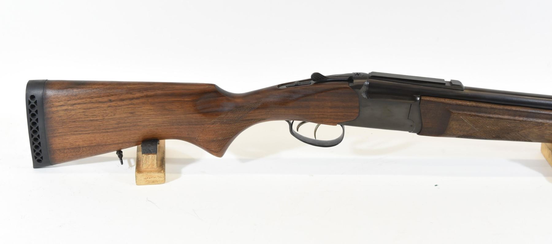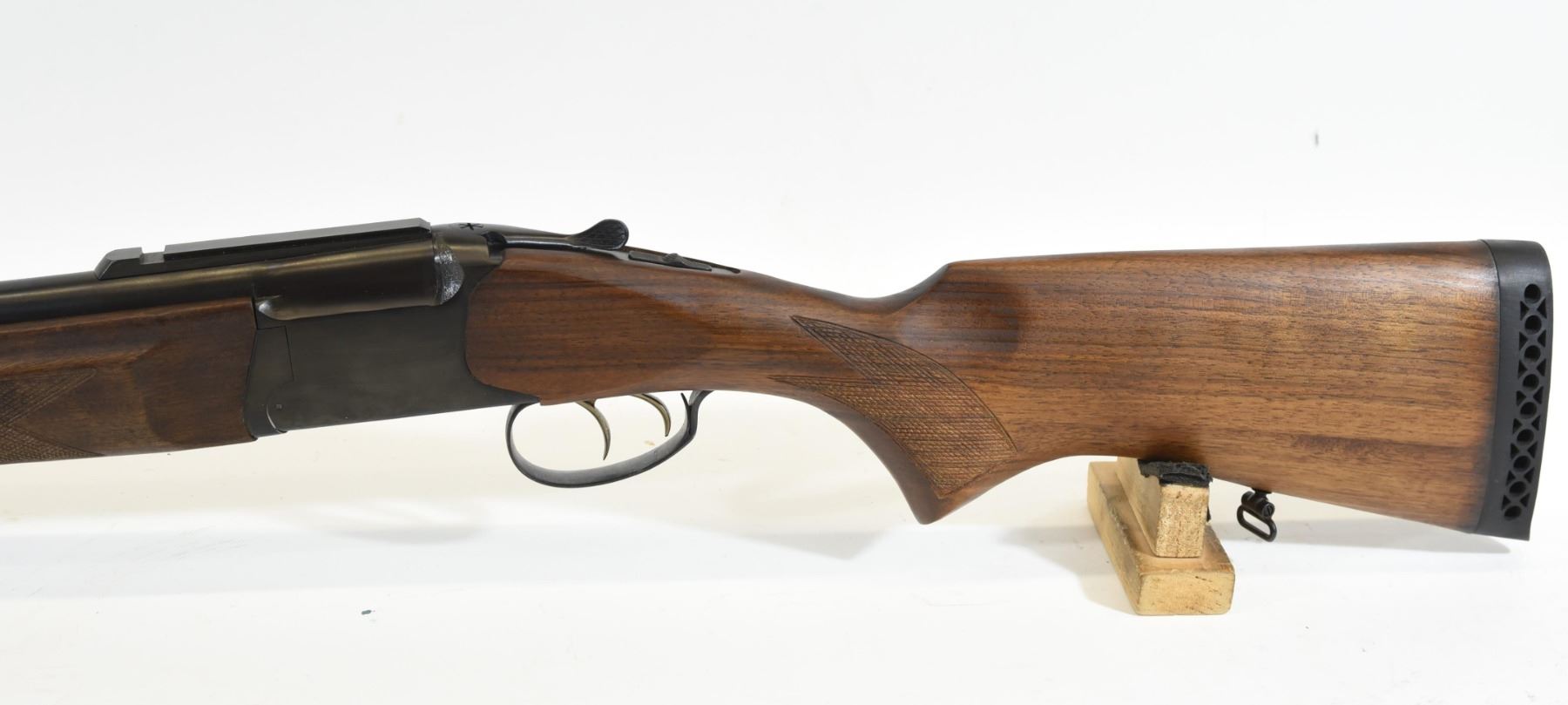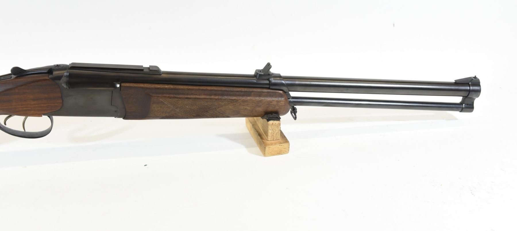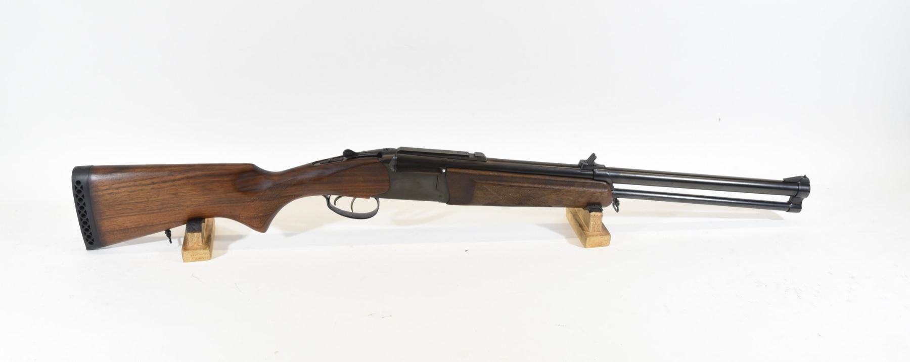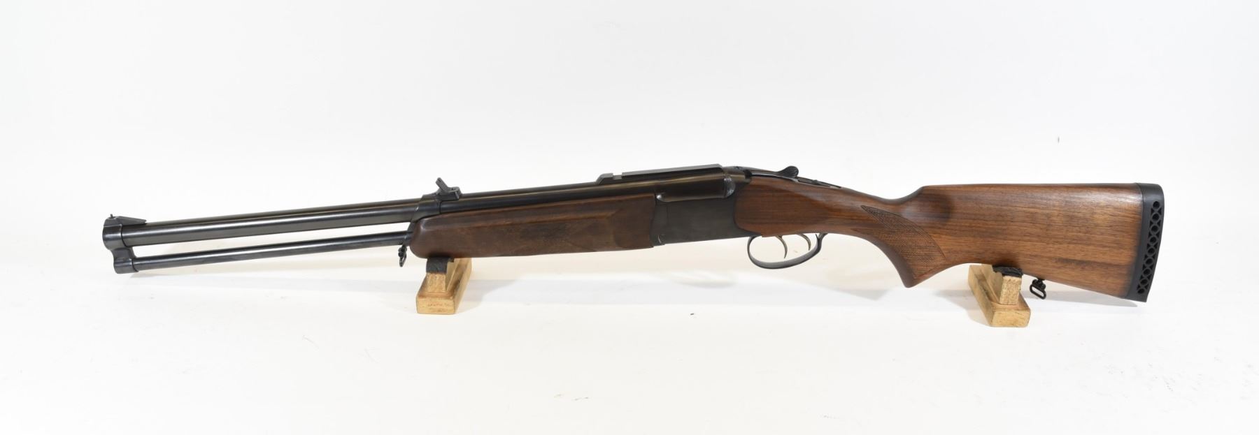 Non-restricted, 12ga/308Win, single shot over/under combo, SN 149460133. Wood stock is in good condition. Bluing is good aside from some rust on the muzzle. 12ga bore is lightly pitted throughout. 308 bore is excellent. Comes with original box and 3 chokes.