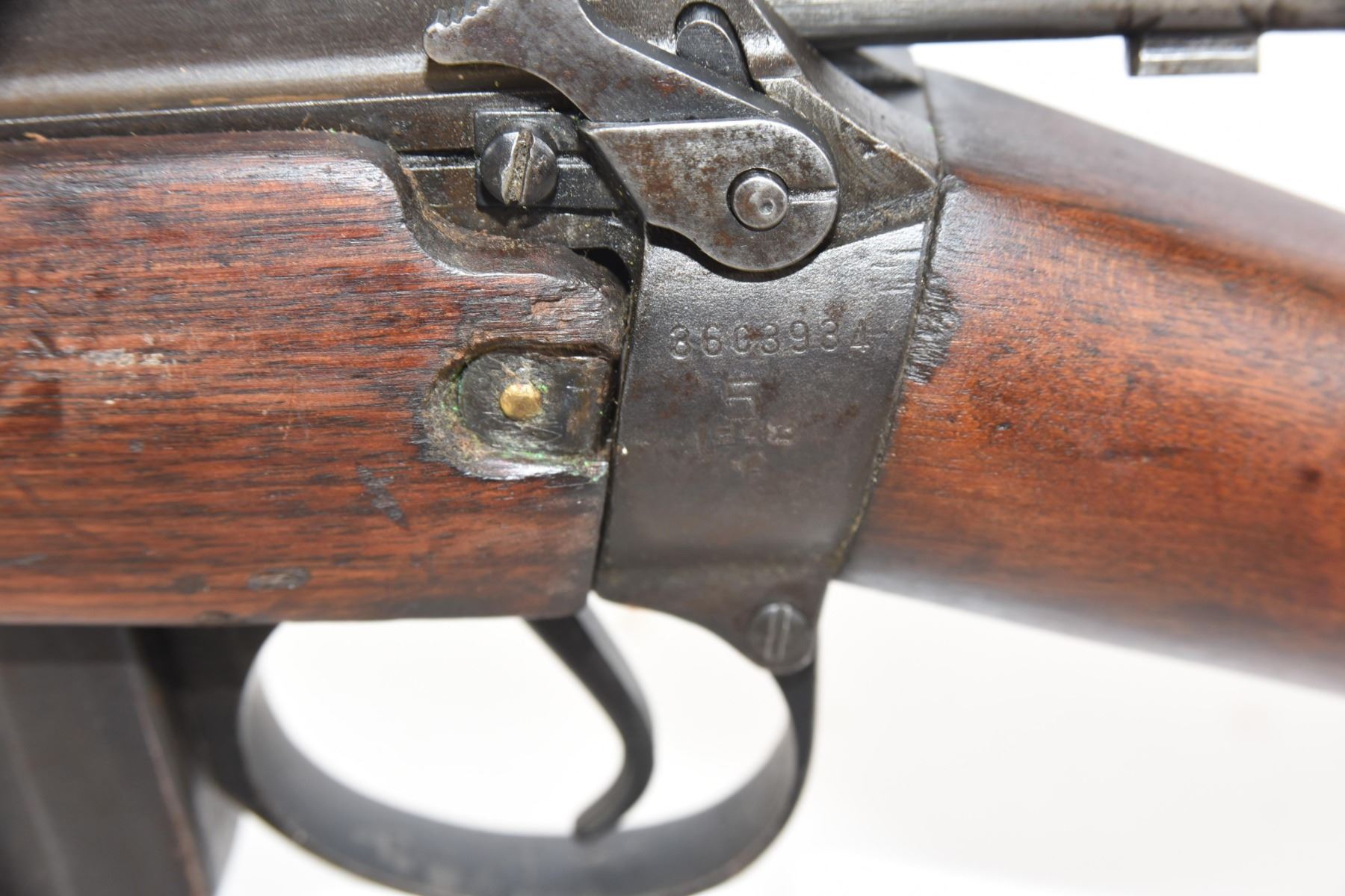 Non-restricted, 303Brit, bolt action, SN 3663934. Wood stock has many dents and scratches. Bluing going brown. Bore is pitted roughly 1/2 way down the barrel, but shiny otherwise with prominent rifling. Stamped "U.S. PROPERTY", "S, 1942".