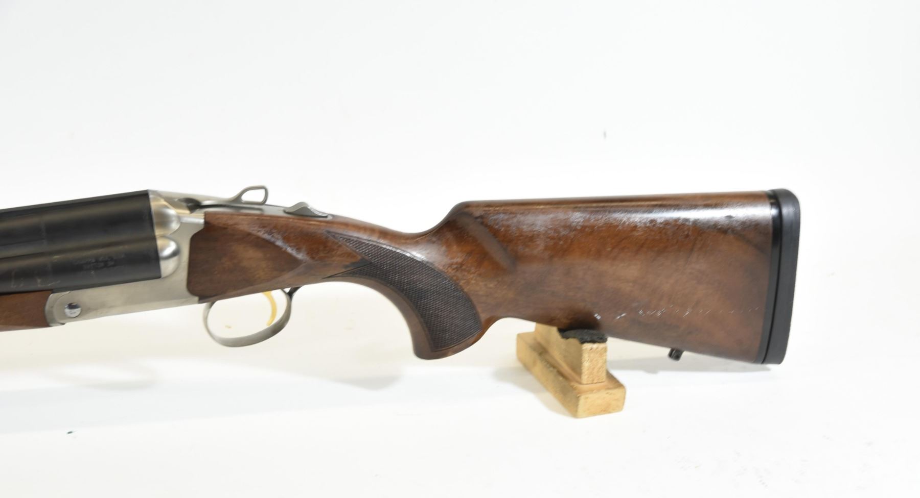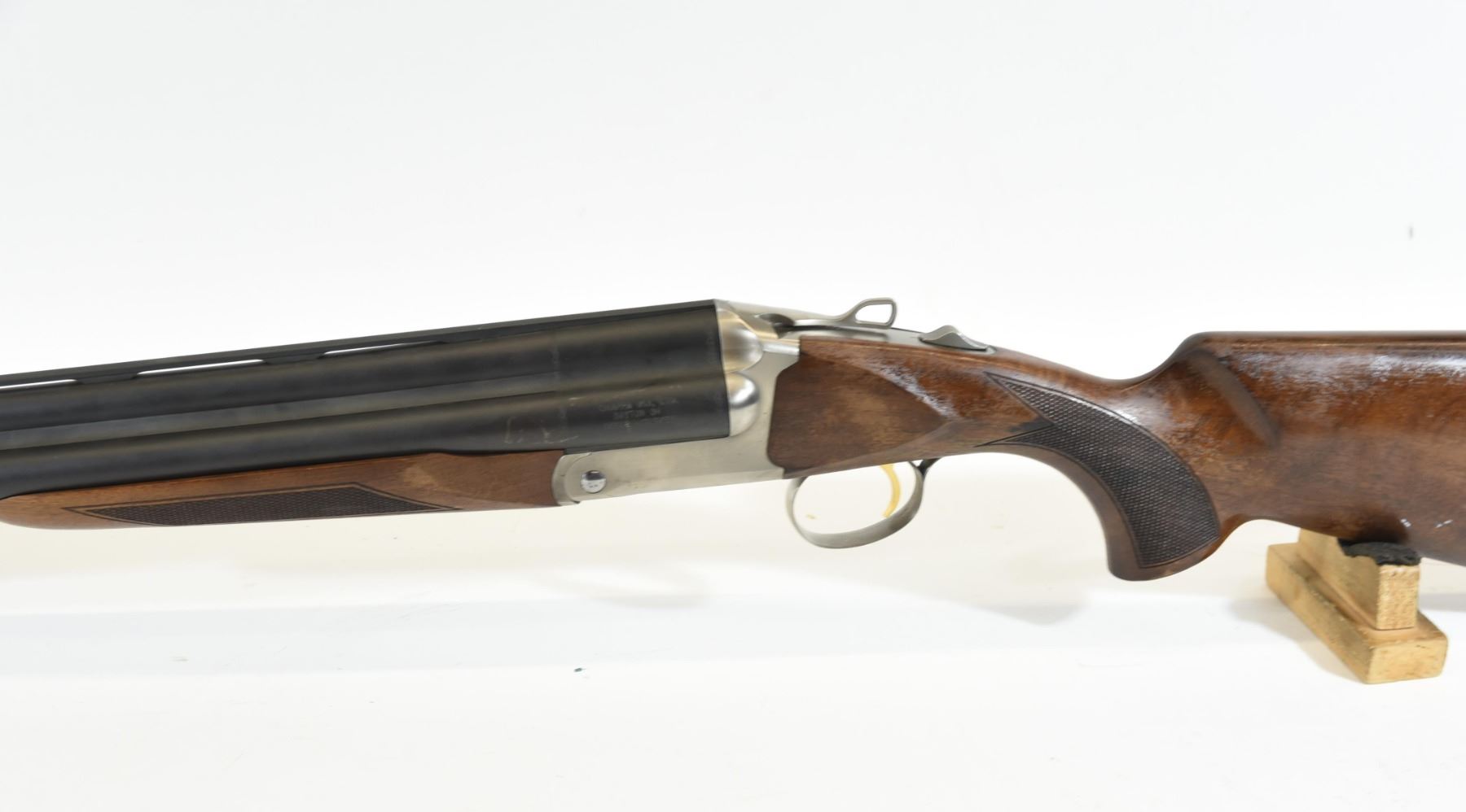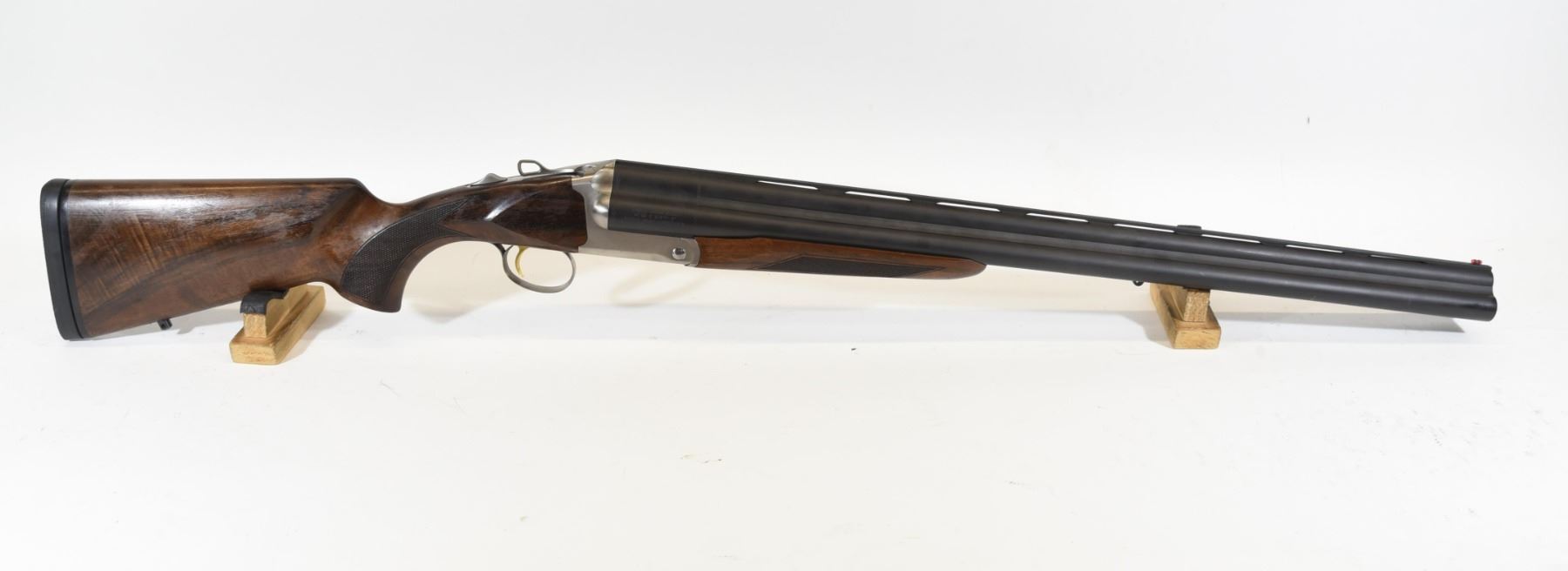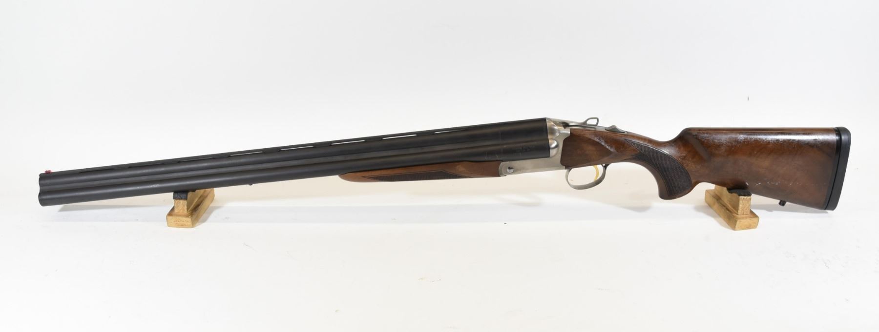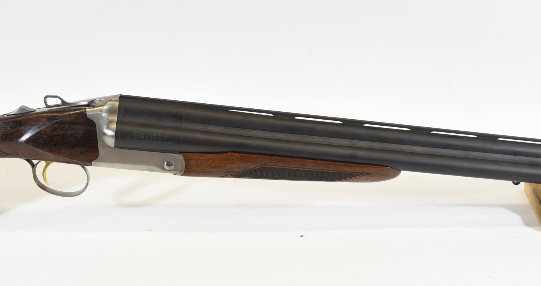 Non-restricted, 12ga 3", 28" tri barrels, SN TC5680. Wood stock has many shallow scratches and heavily fading finish. Bluing has many scratches and some patches of light surface rust. Bores are all good. Comes with case, original owner's manual, choke wrench, and 7 choke tubes.