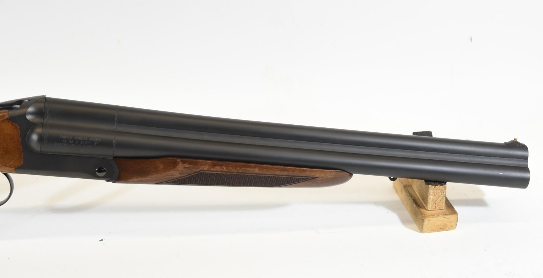 Non-restricted, 12ga 3", 18.5" tri barrel, SN TC 5692. Wood stock has many scratches and some areas of fading finish. Bluing is good aside from some rust on the muzzle. Bores are good. Comes with case, original owner's manual, choke wrench, and 7 choke tubes.