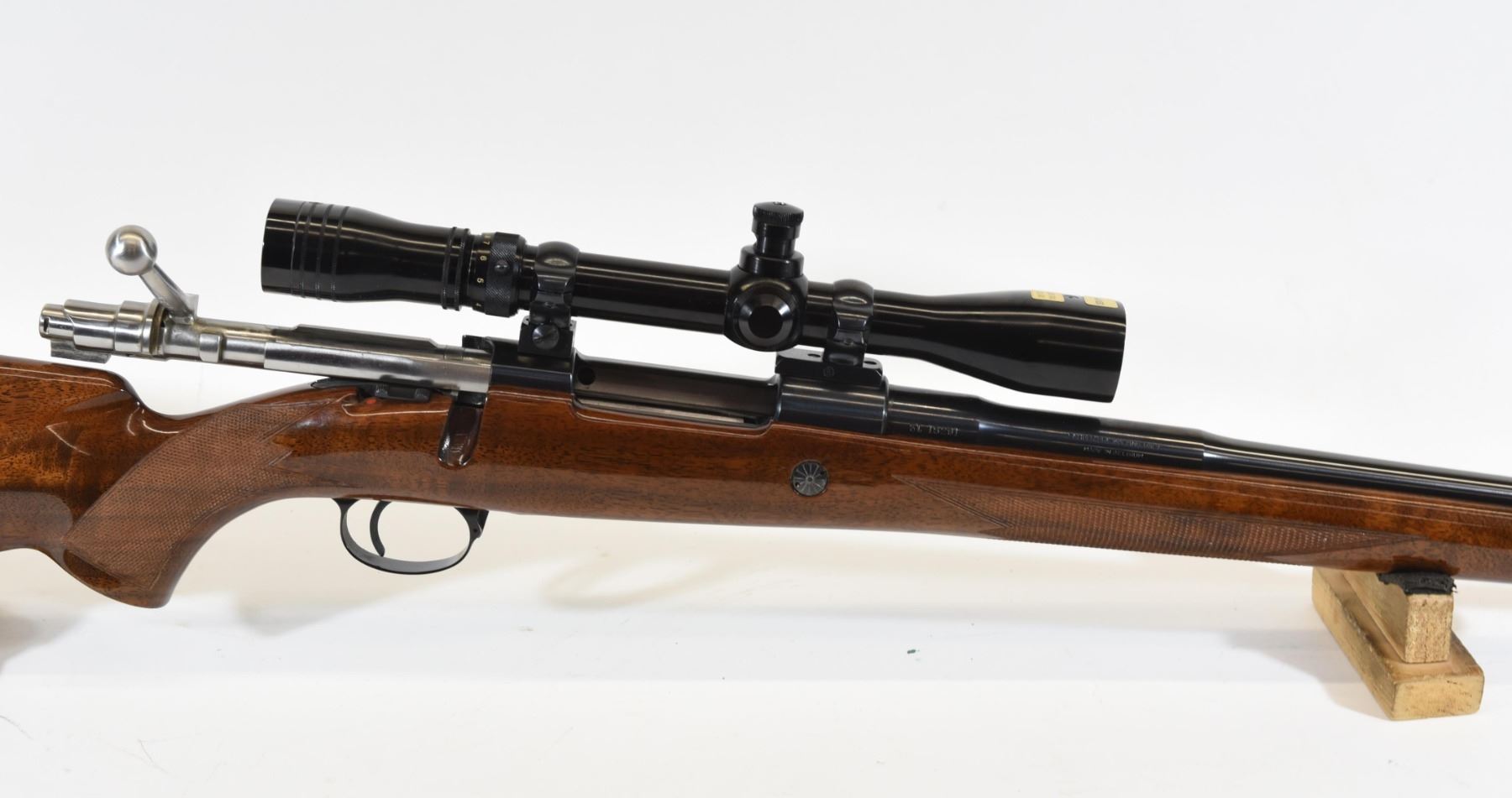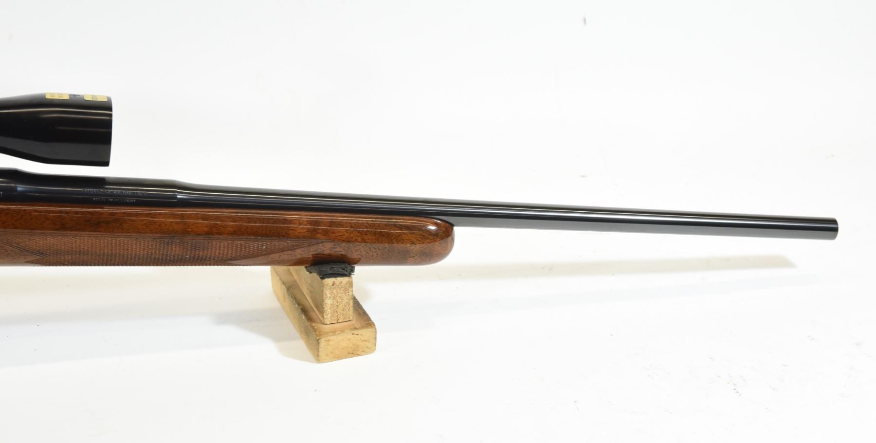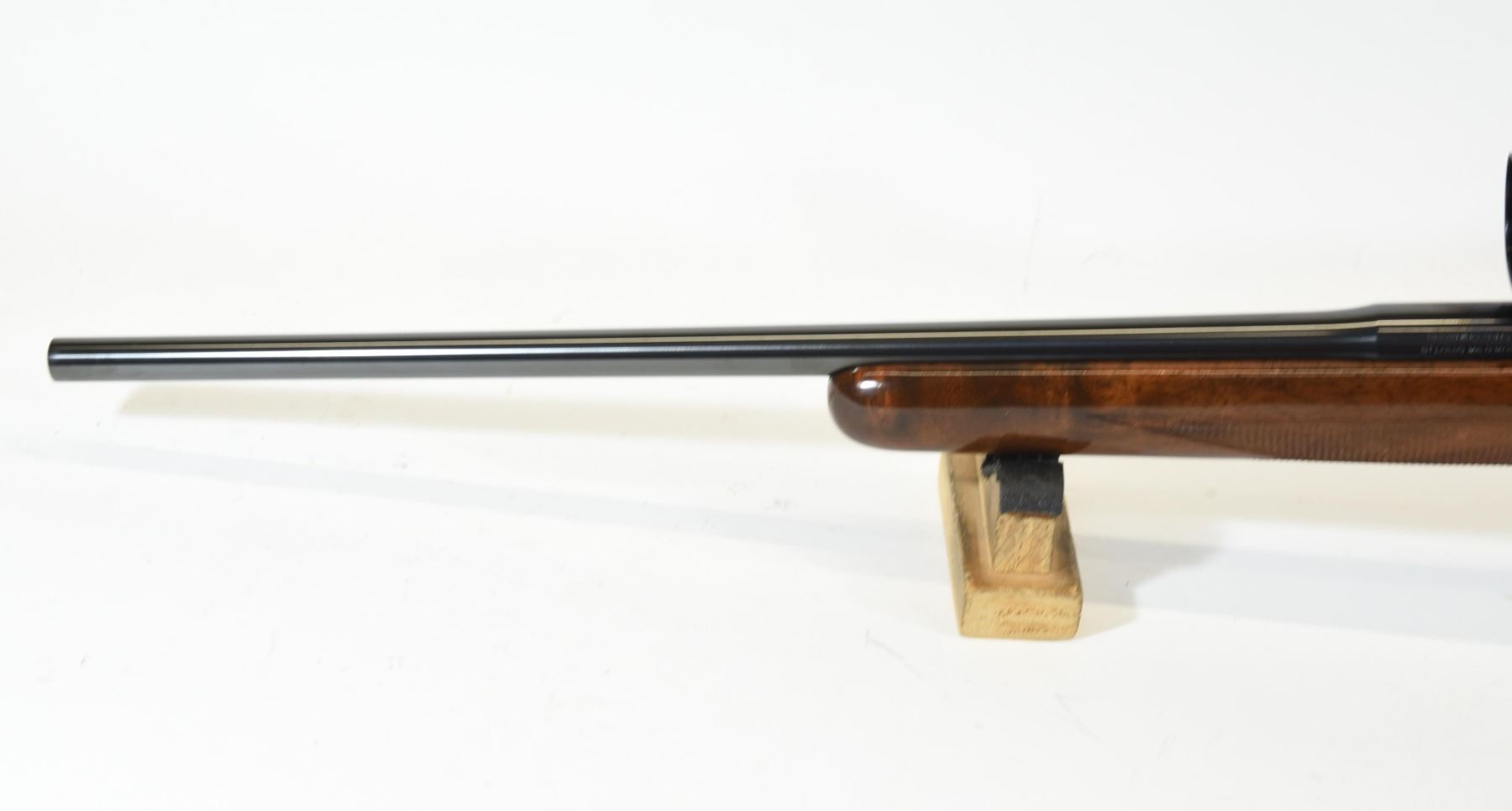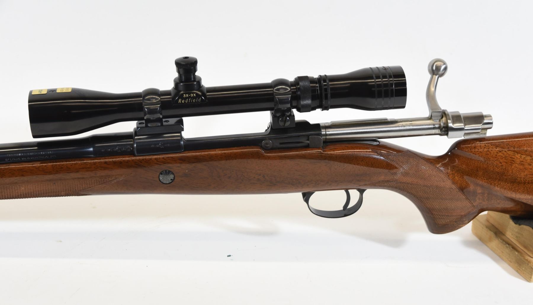Non-restricted, bolt action, 264 Win. Mag., 22" light barrel, SN 3L 18291. Wood is near excellent with a couple of light dings on the bottom of the butt stock. Bluing is very good. Bore is excellent. Includes a Redfield 4-plex 3x - 9x scope.