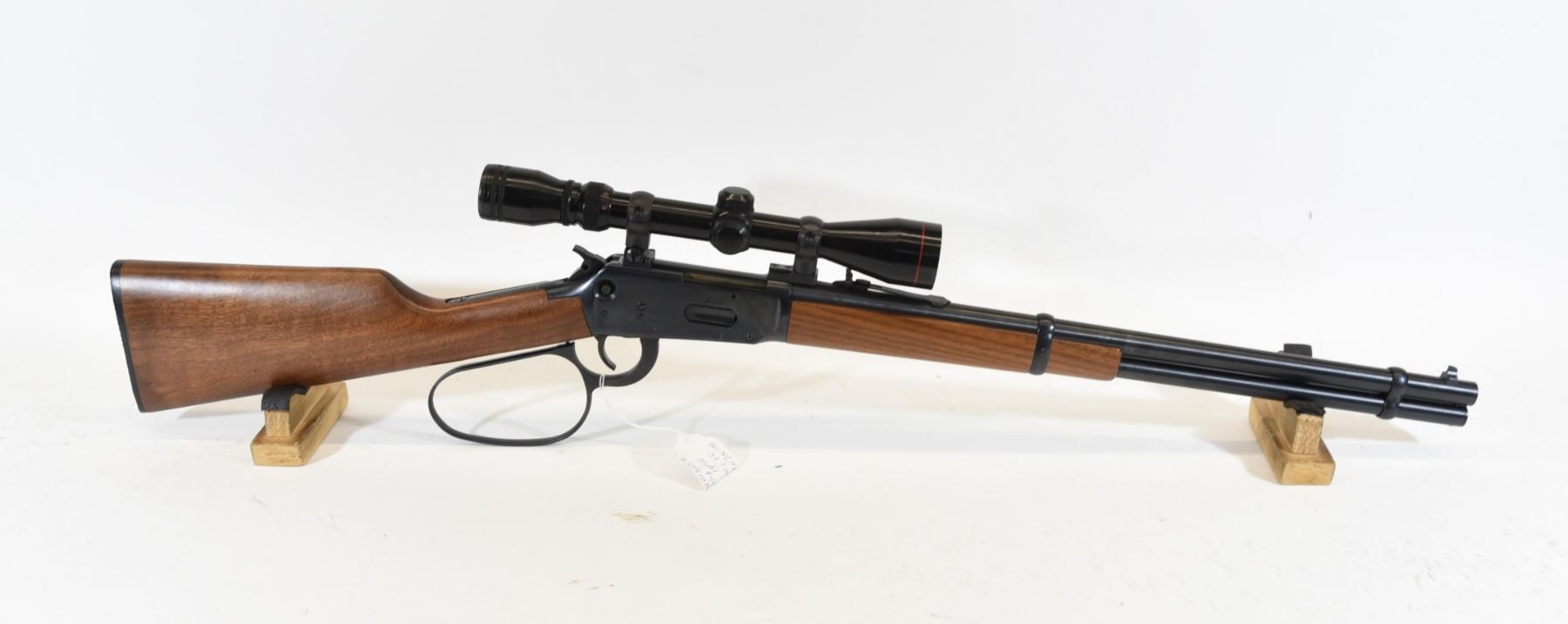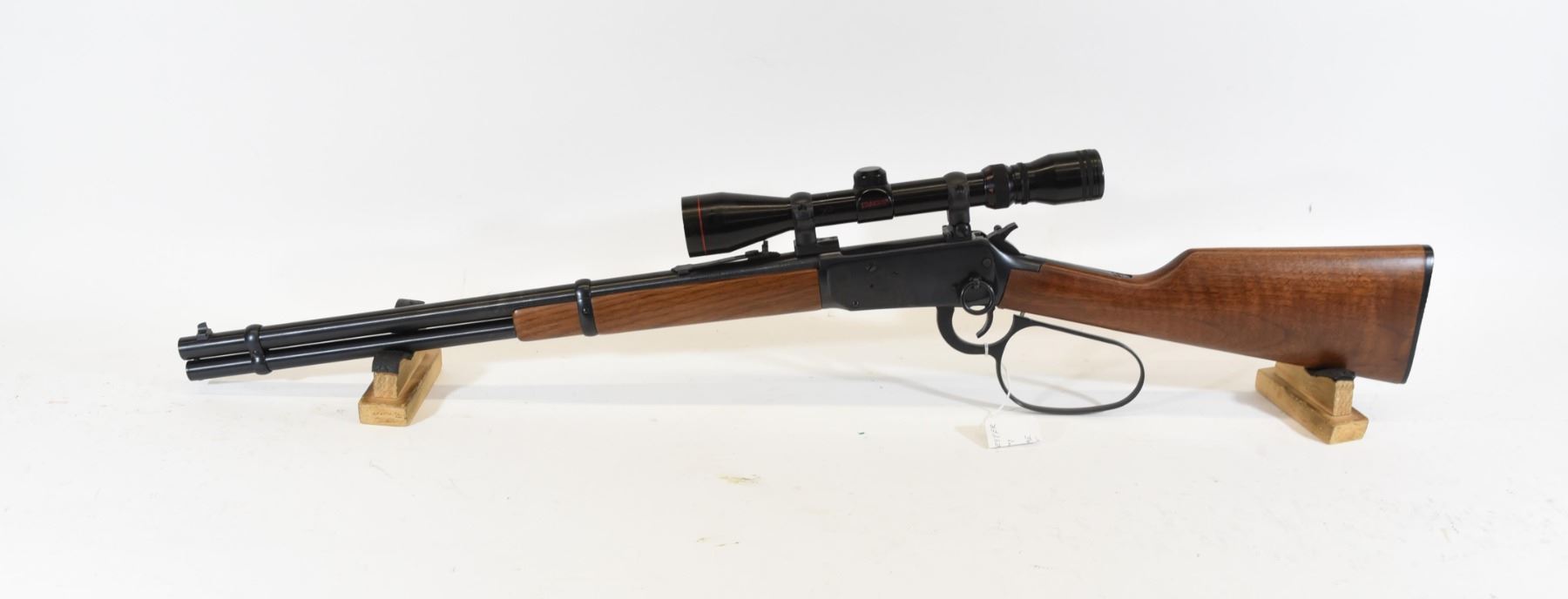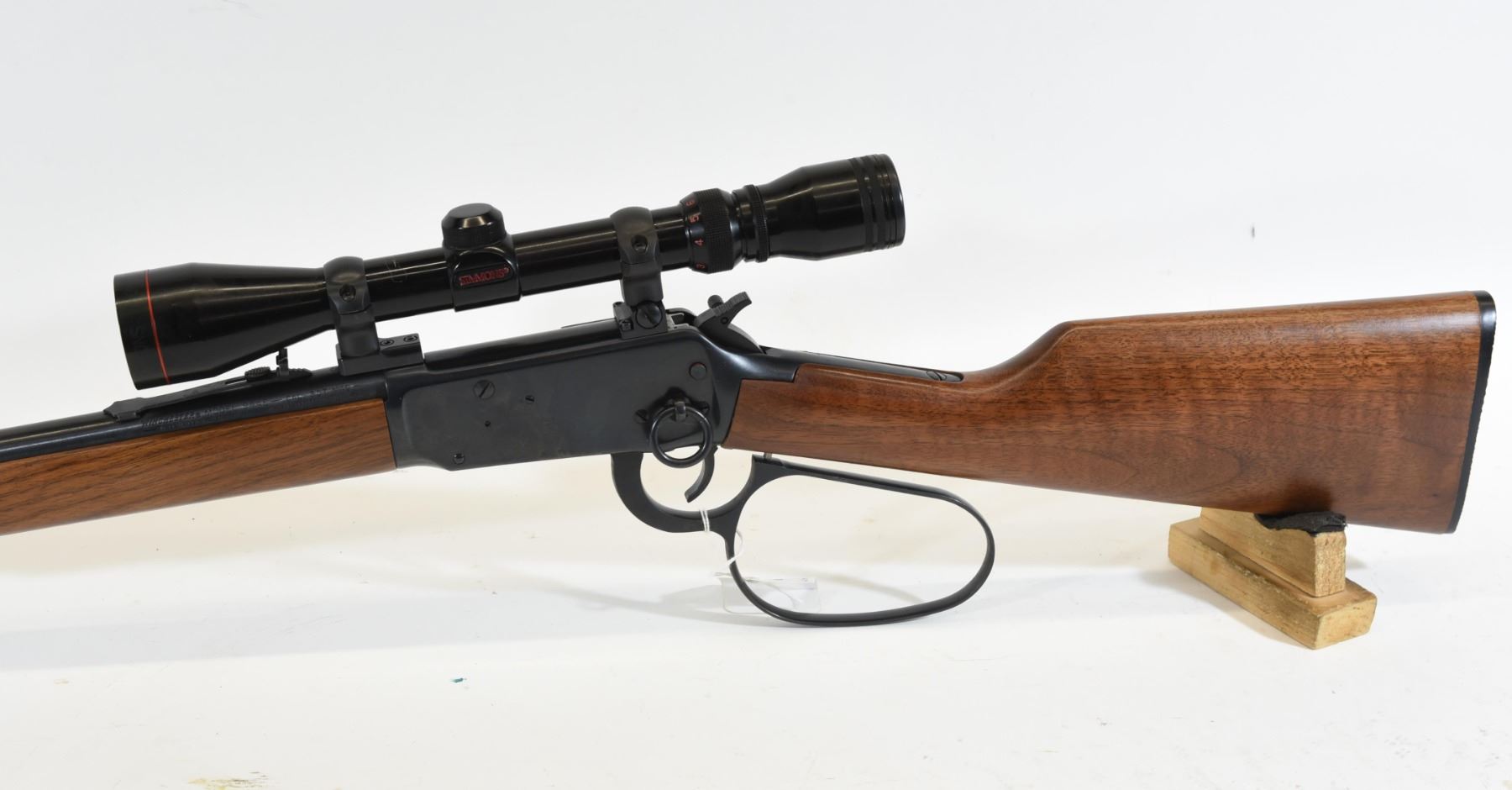 Non-restricted, 357Mag, lever action, SN 6285108. Wood stock is in good condition. Bluing is in good condition. Bore is excellent. Rifle has a Simmons Model 21029 3-9x40 scope mounted.