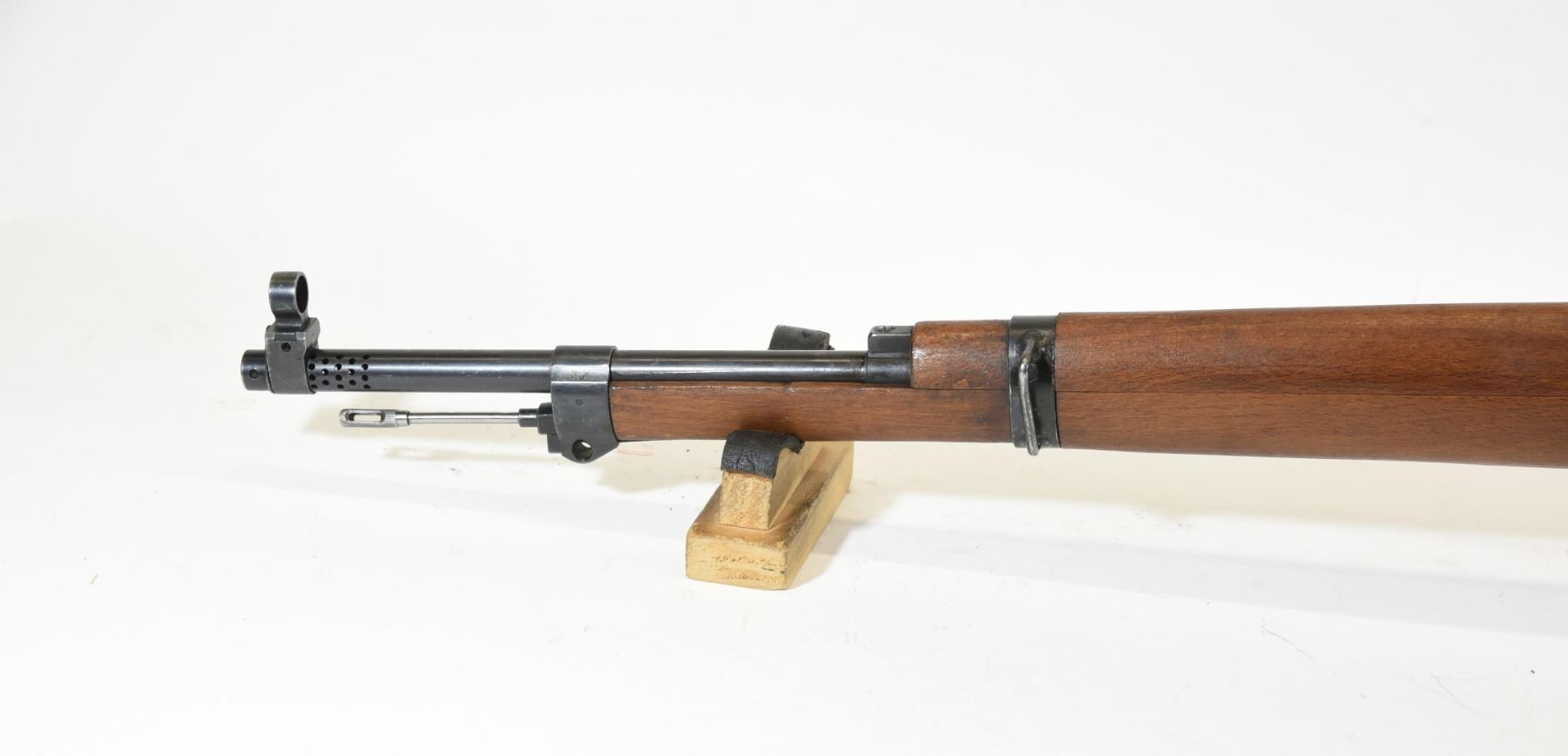 Non-restricted, 6.5x55, semi-auto, SN 28002B.Wood stock has several scratches and dents with one chip on the left side of the front sight but no cracks. Bluing is heavily scratched on the bolt cover and has some scratches on the barrel. Bore is dark, but has prominent rifling. Barrel is ported.
