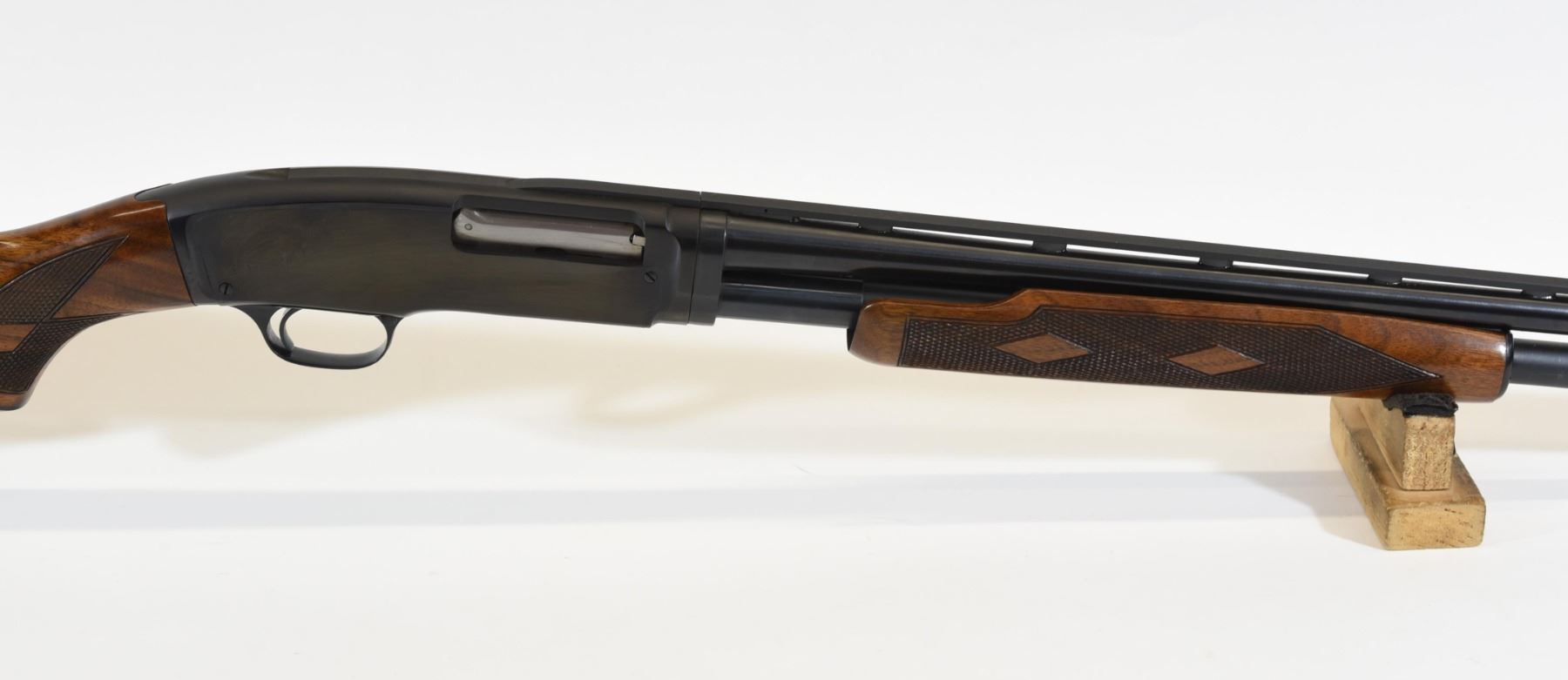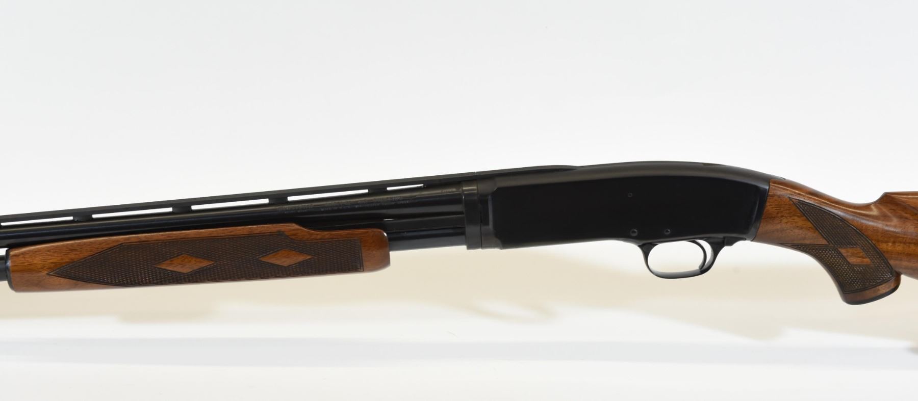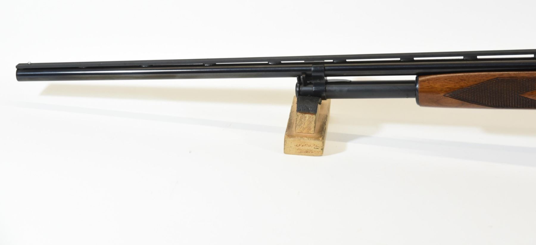Non-restricted, 410ga 3", 27.5" vent rib fixed full choke barrel, SN 116003. Double diamond wood stock is in very good condition with only a few minor marks and one light scratch in the finish of the butt stock. Bluing is in very good condition aside from several minor marks on the action. Bore is good.