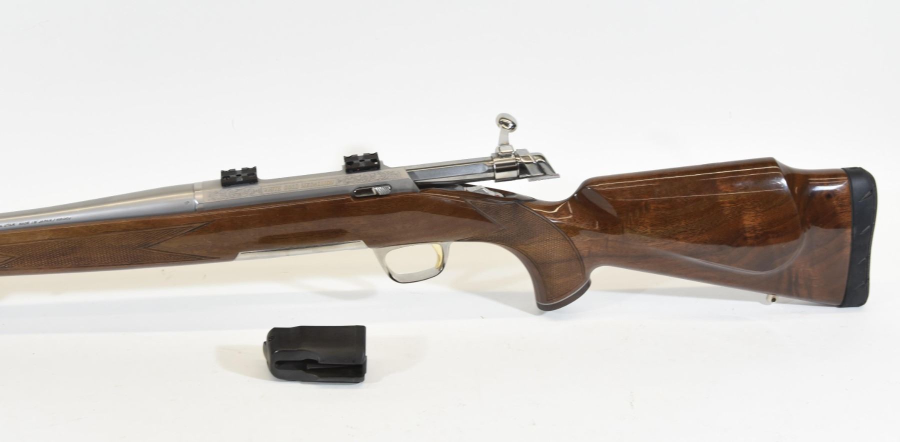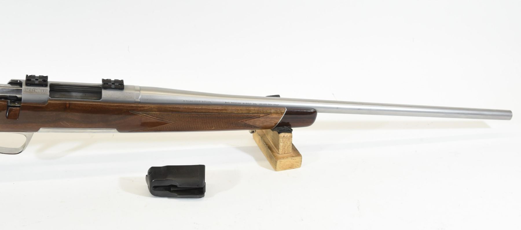 Non-restricted, 22-250Rem, bolt action, SN 07625ZW354. Wood stock is in good condition, but has several small dents and scratches. Barrel finish has many scratches. Bore is excellent. Rifle comes with original box.