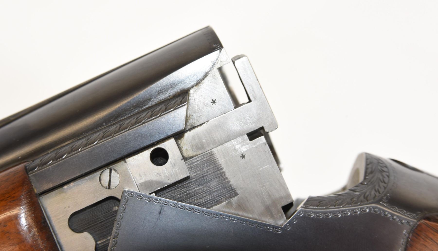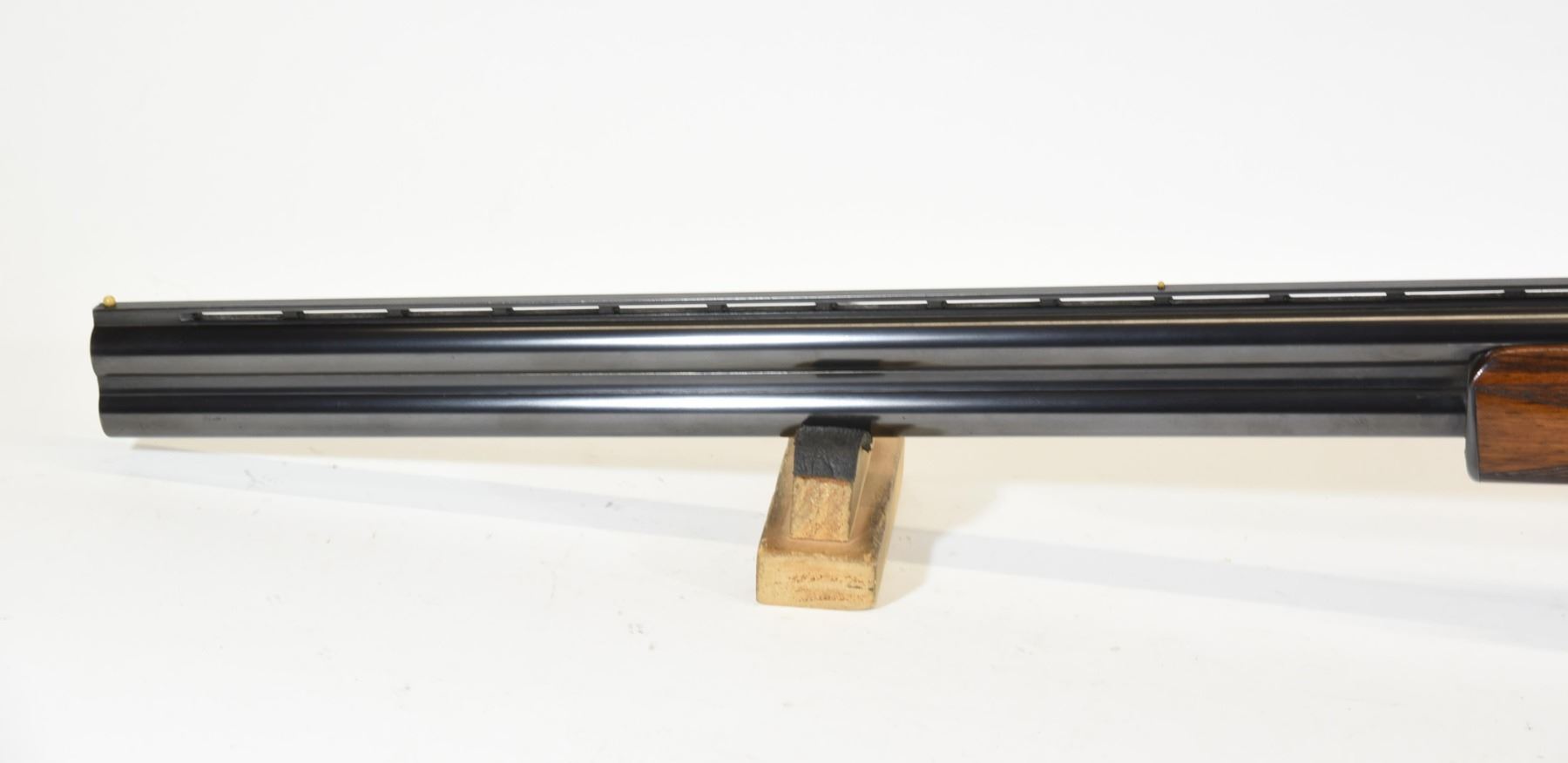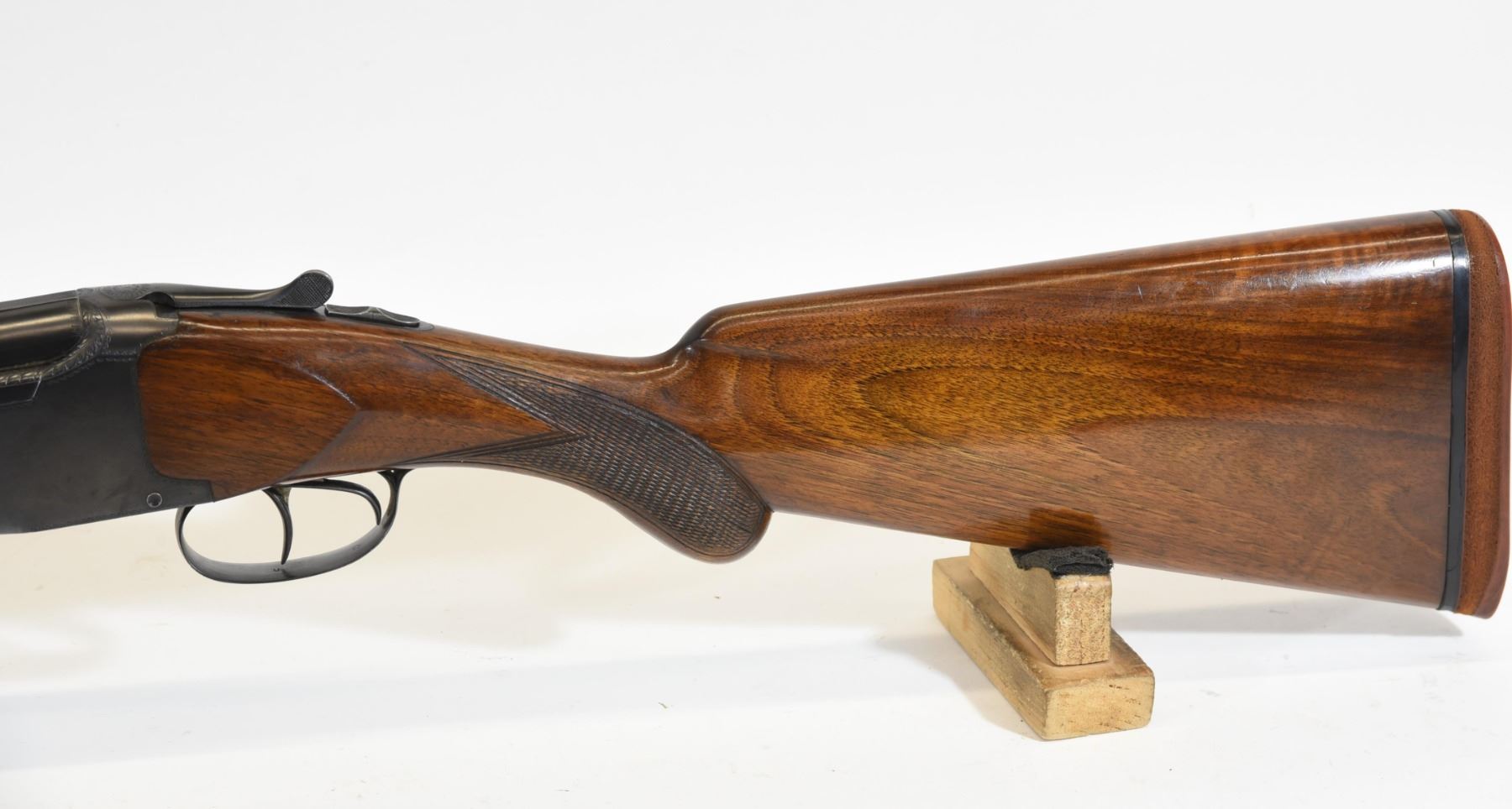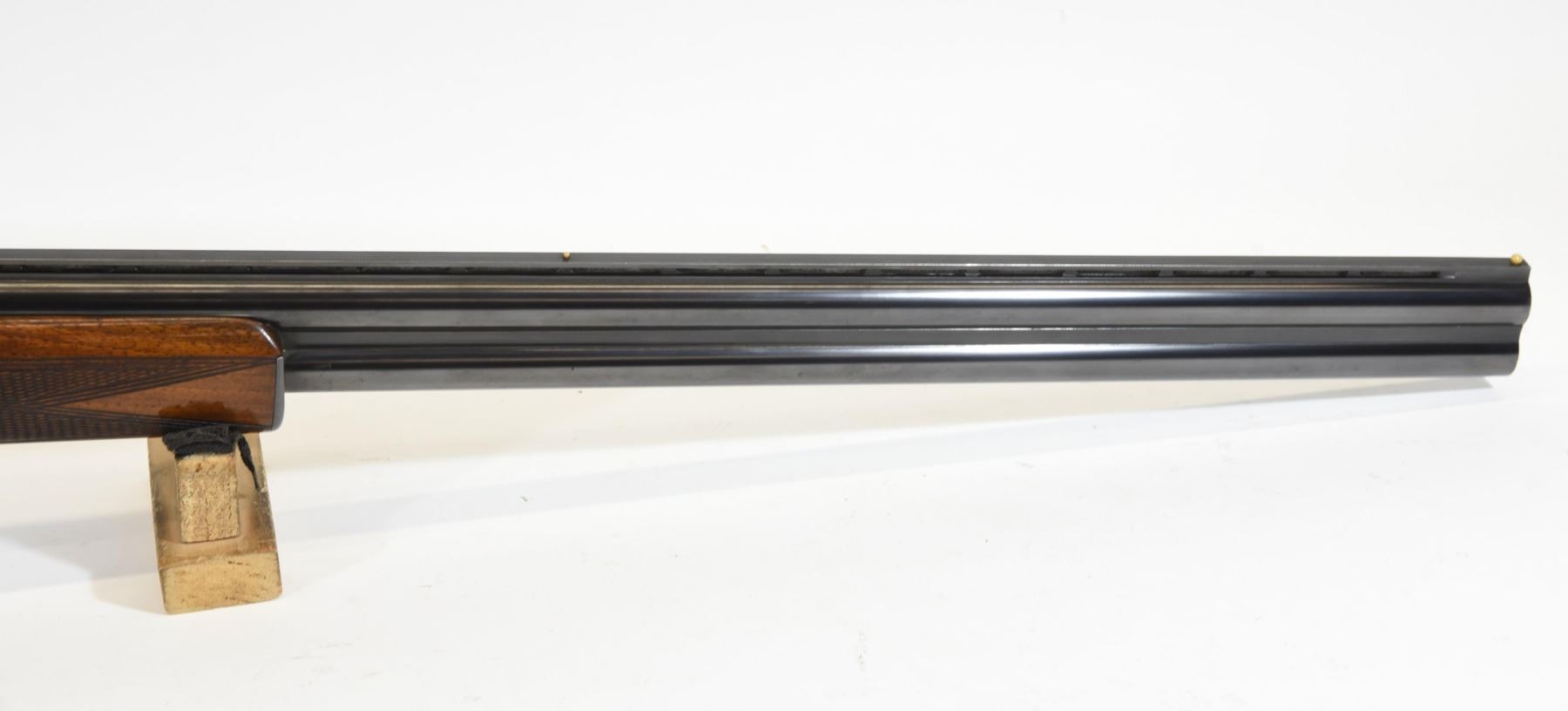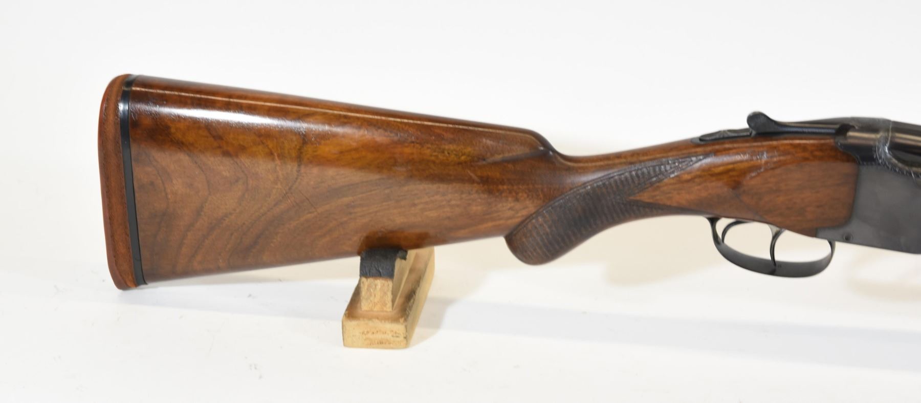 Non-restricted, 12ga, Side x Side, 30" fixed full over full choke barrels, SN 1027. Wood stock has several dents and scratches, but is in very good condition considering age. Bluing is good. Bores are both good. Gun has real ivory front and rear sight beads.