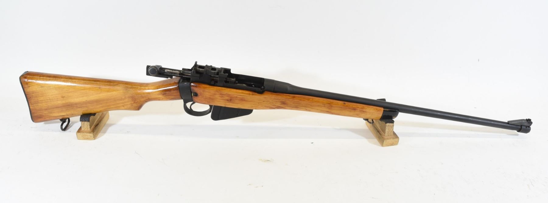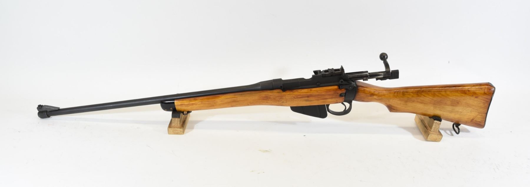 Non-restricted, bolt action, 303 British, 24" barrel, SN 11330. Wood is good with a few light marks. Bluing is good. Bore is good. Has one magazine.